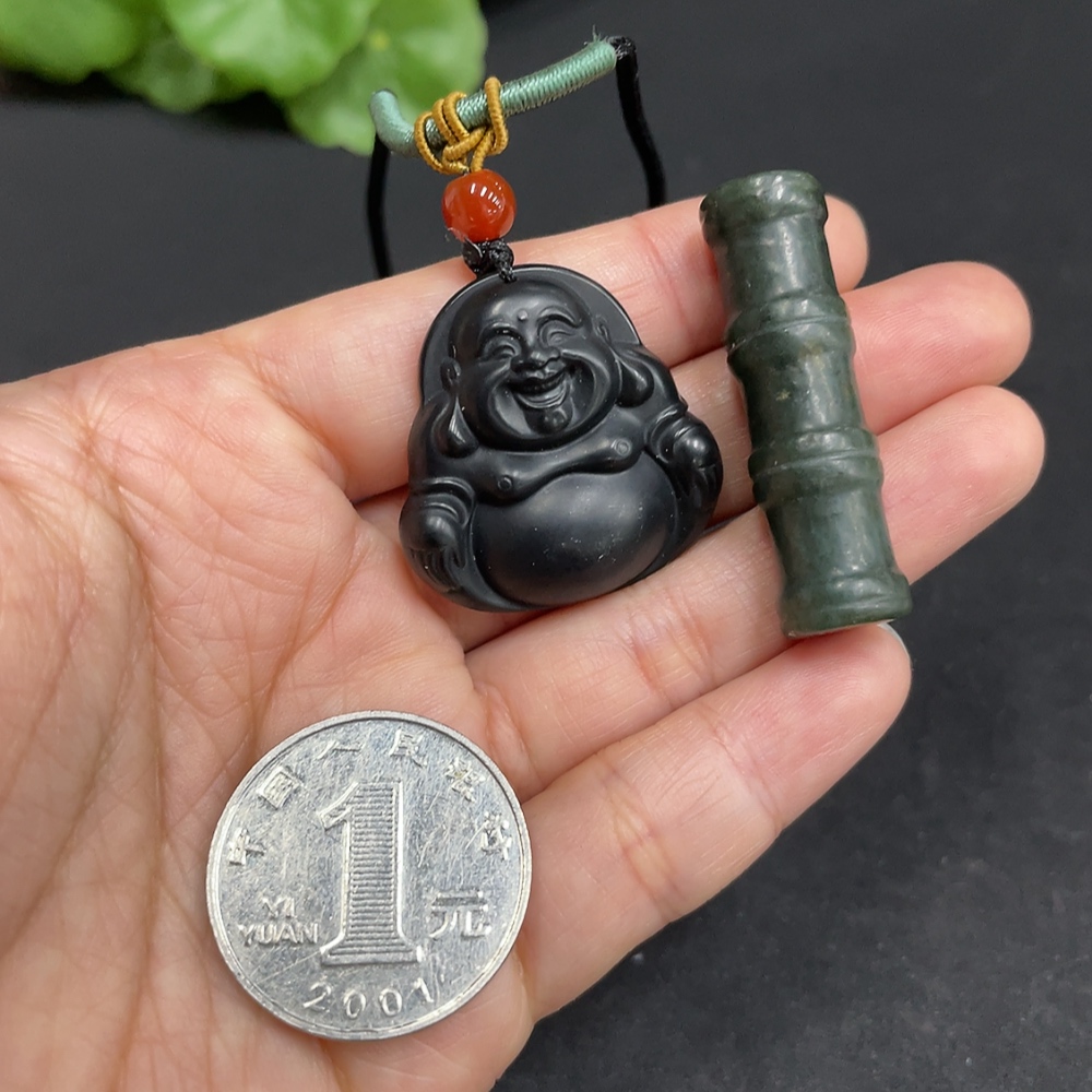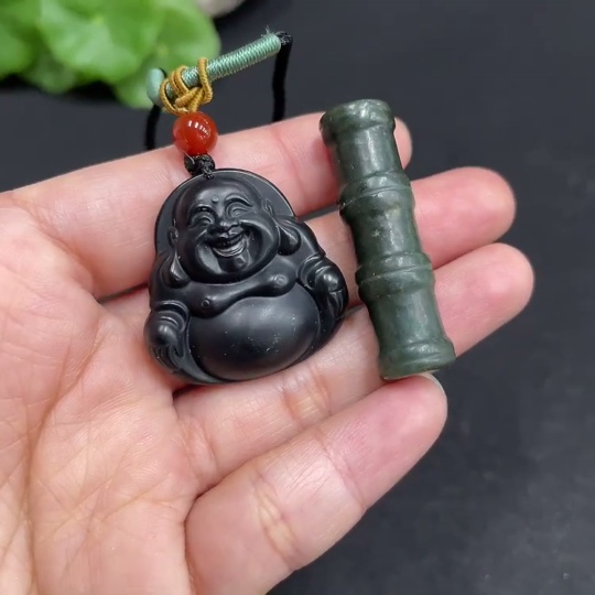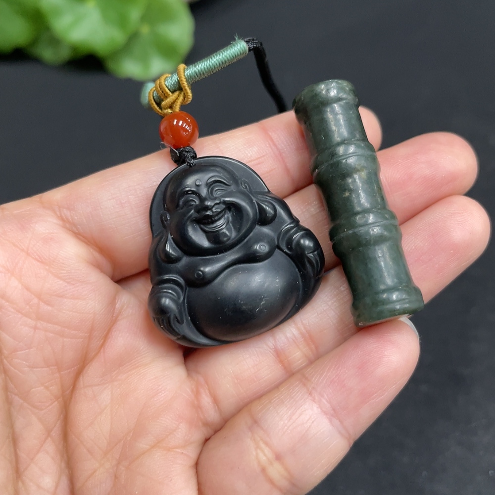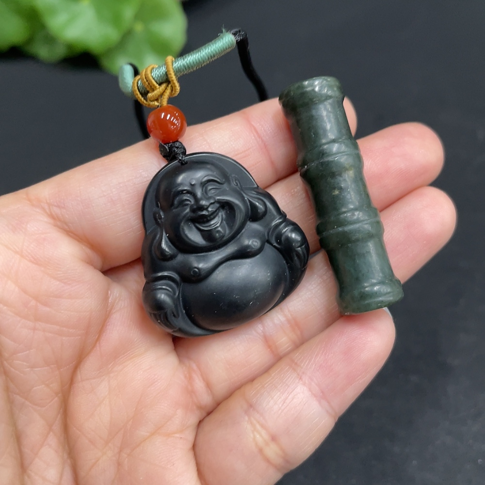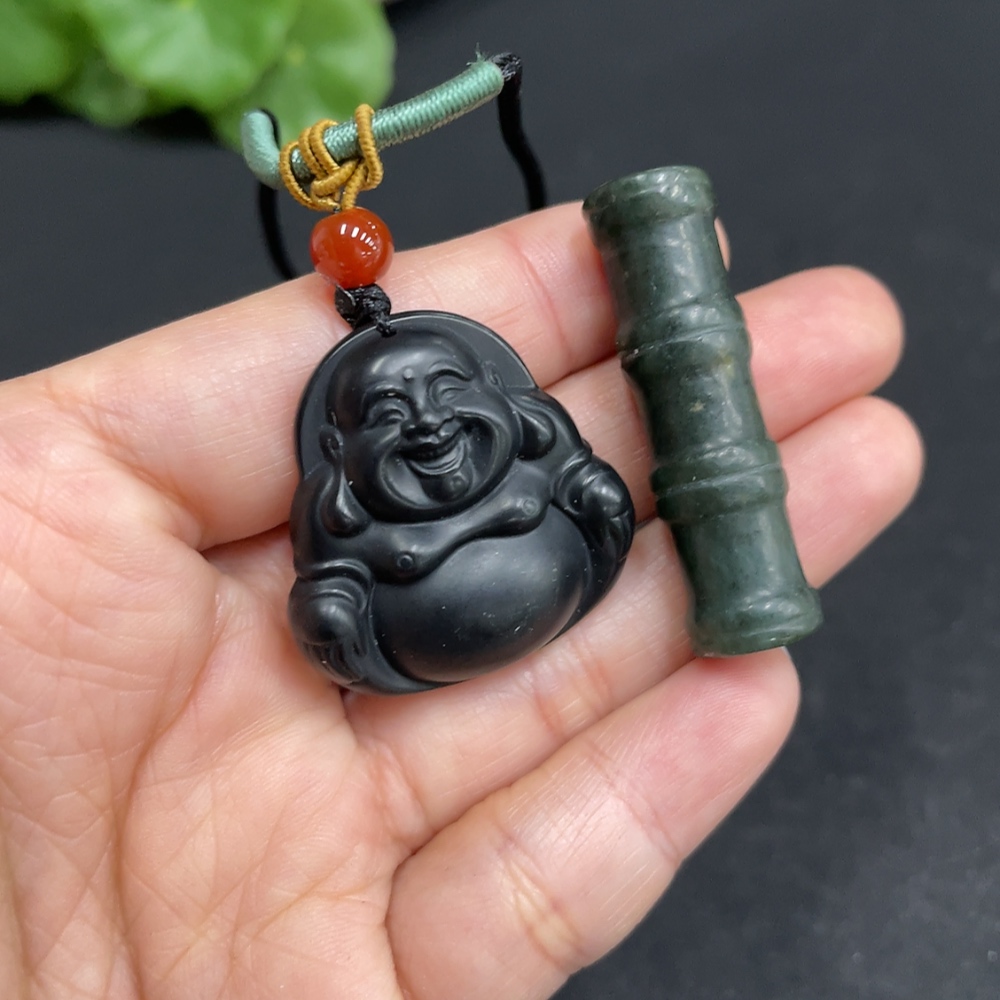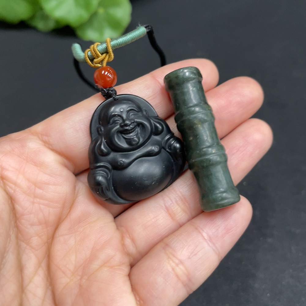 Hetian Jade Pendant - Buddha and Bamboo Joint