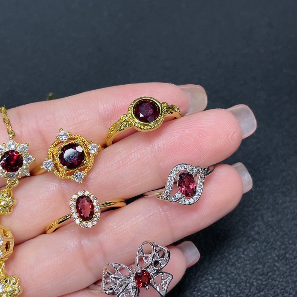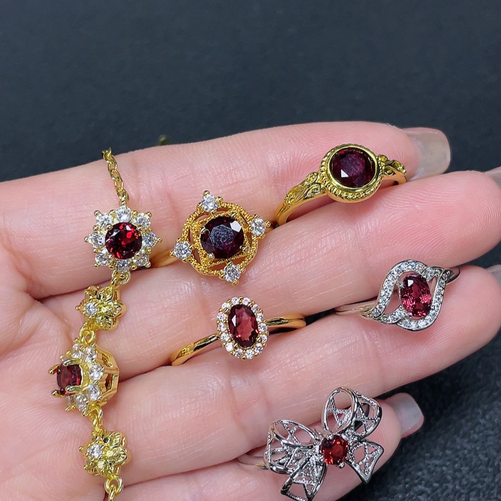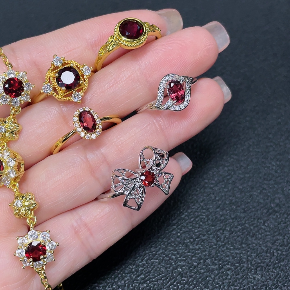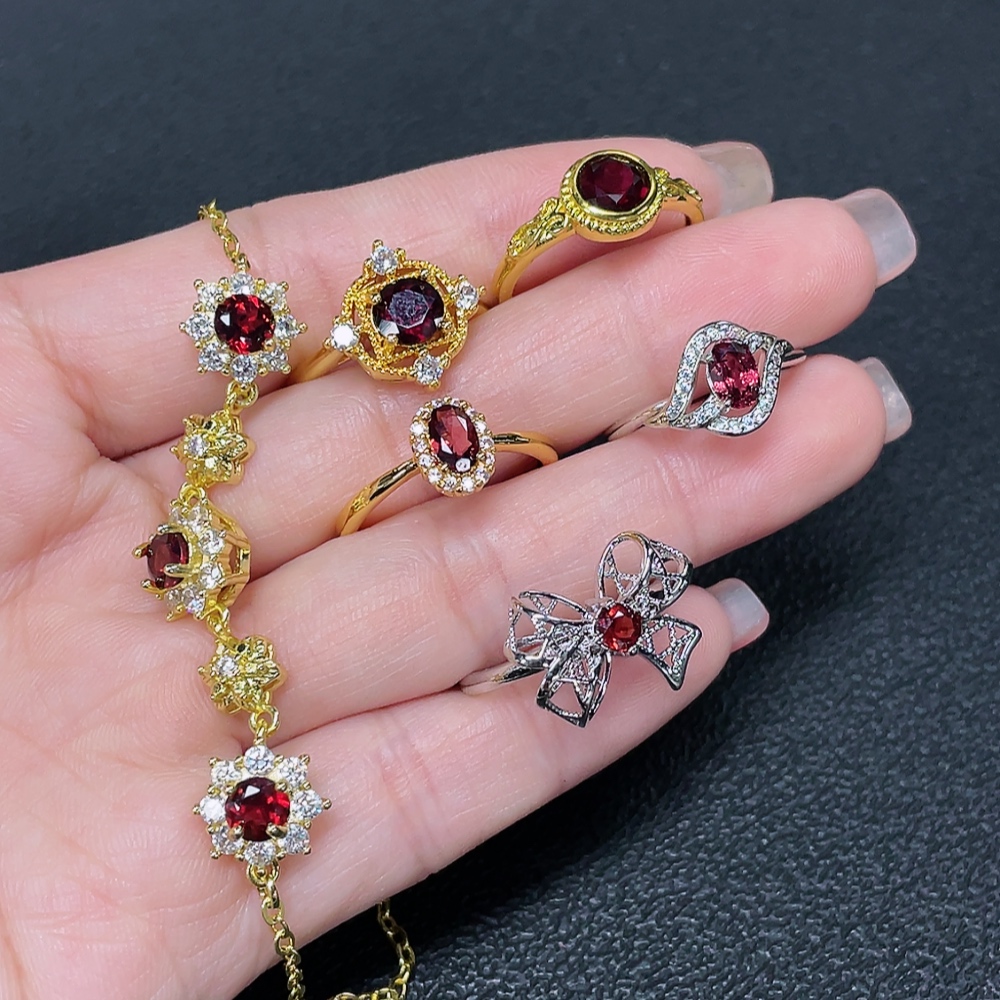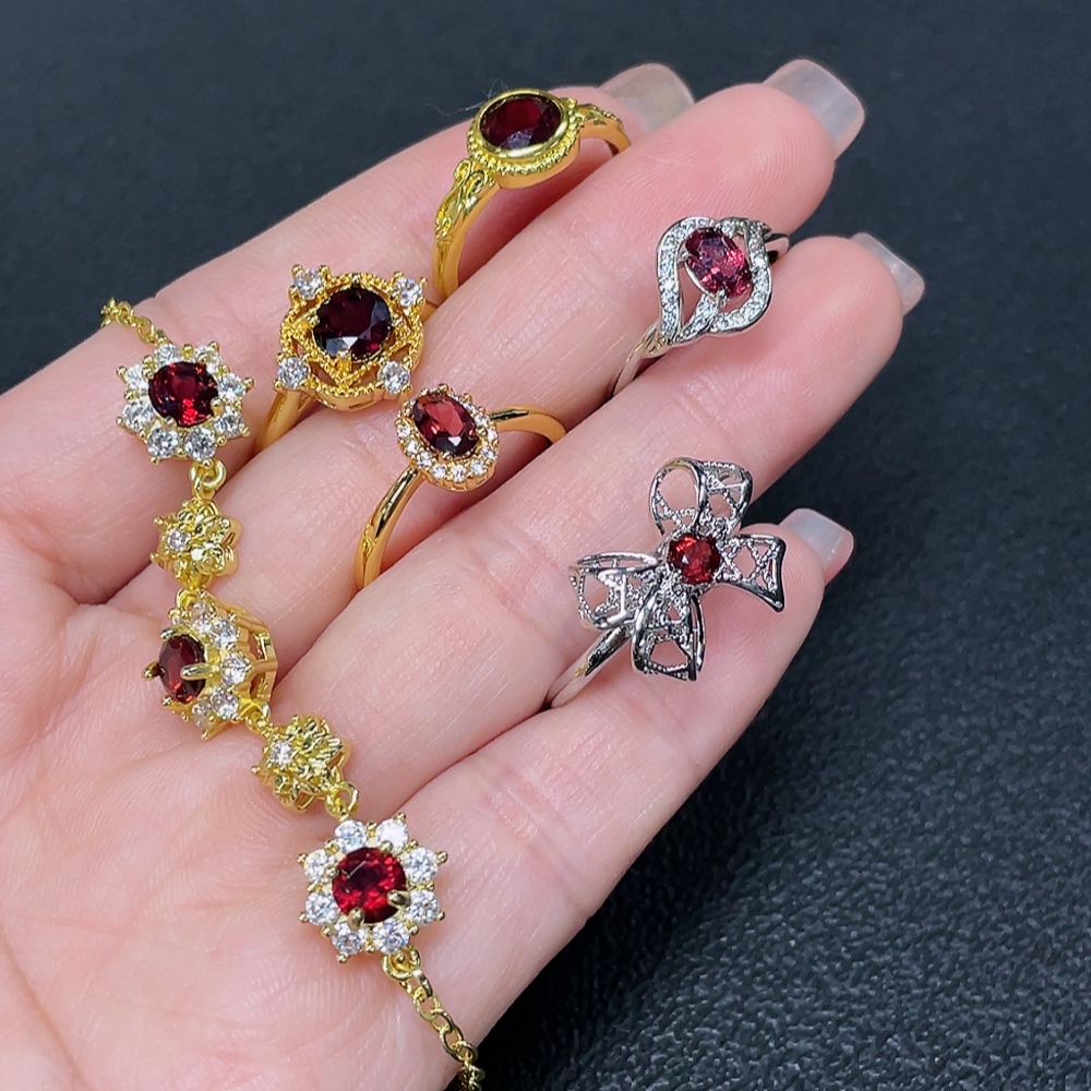 Garnet Ring + Bracelet Non-Gold Adjustable Total Weight Approx. 15.05g Sell as a Lot