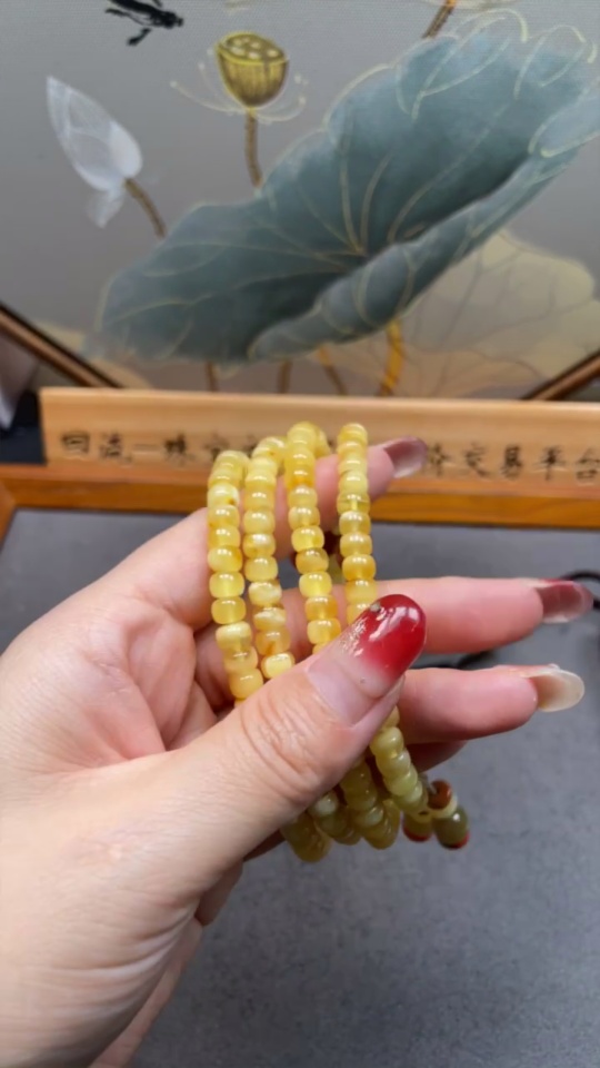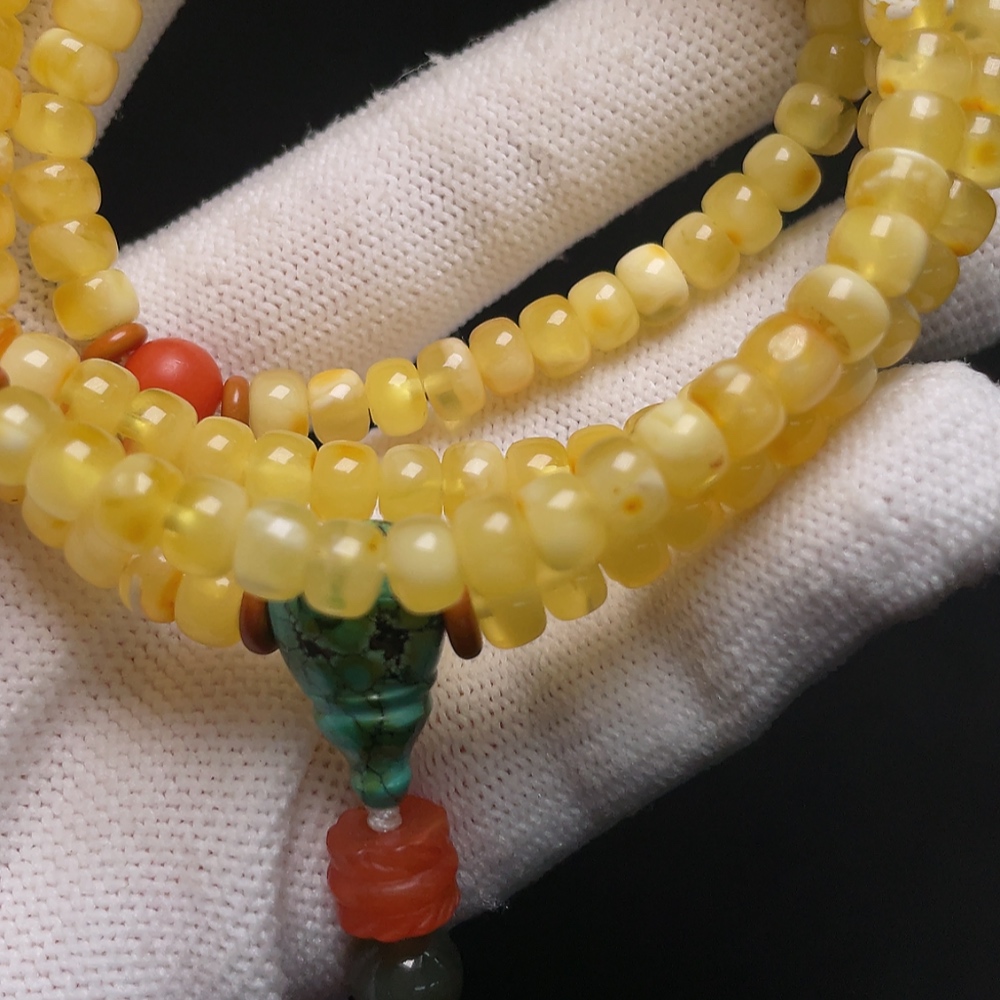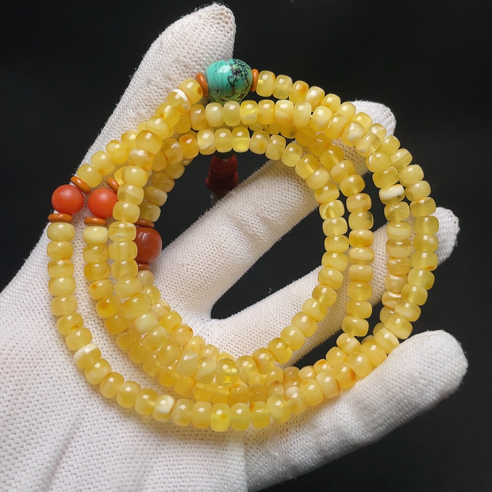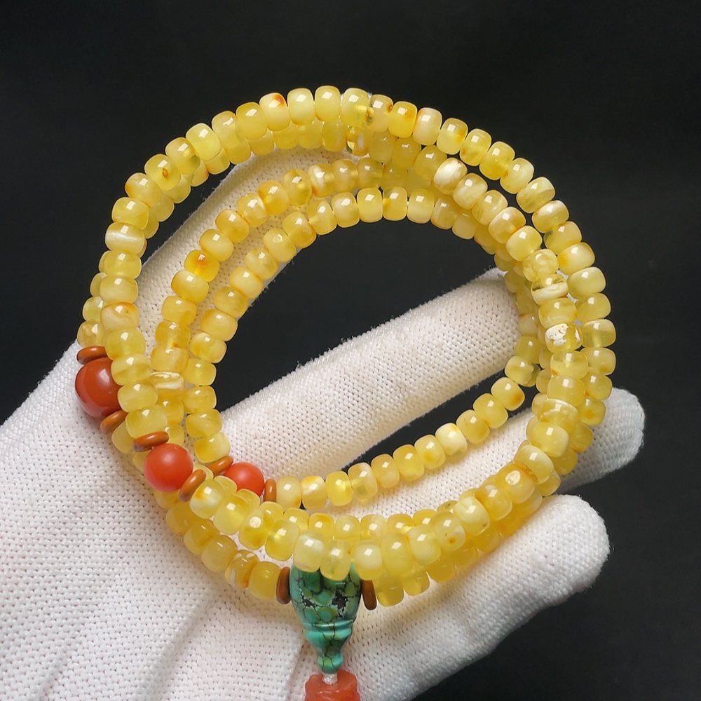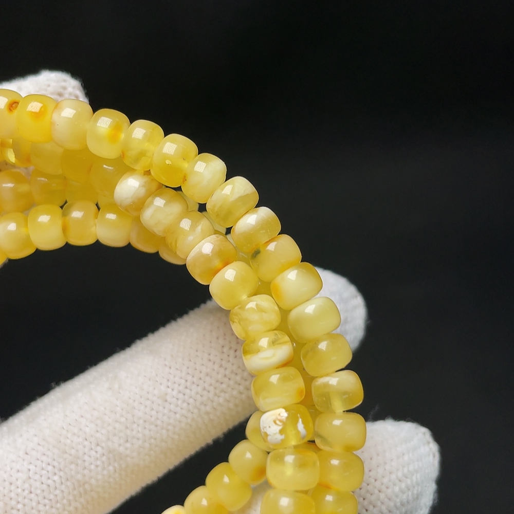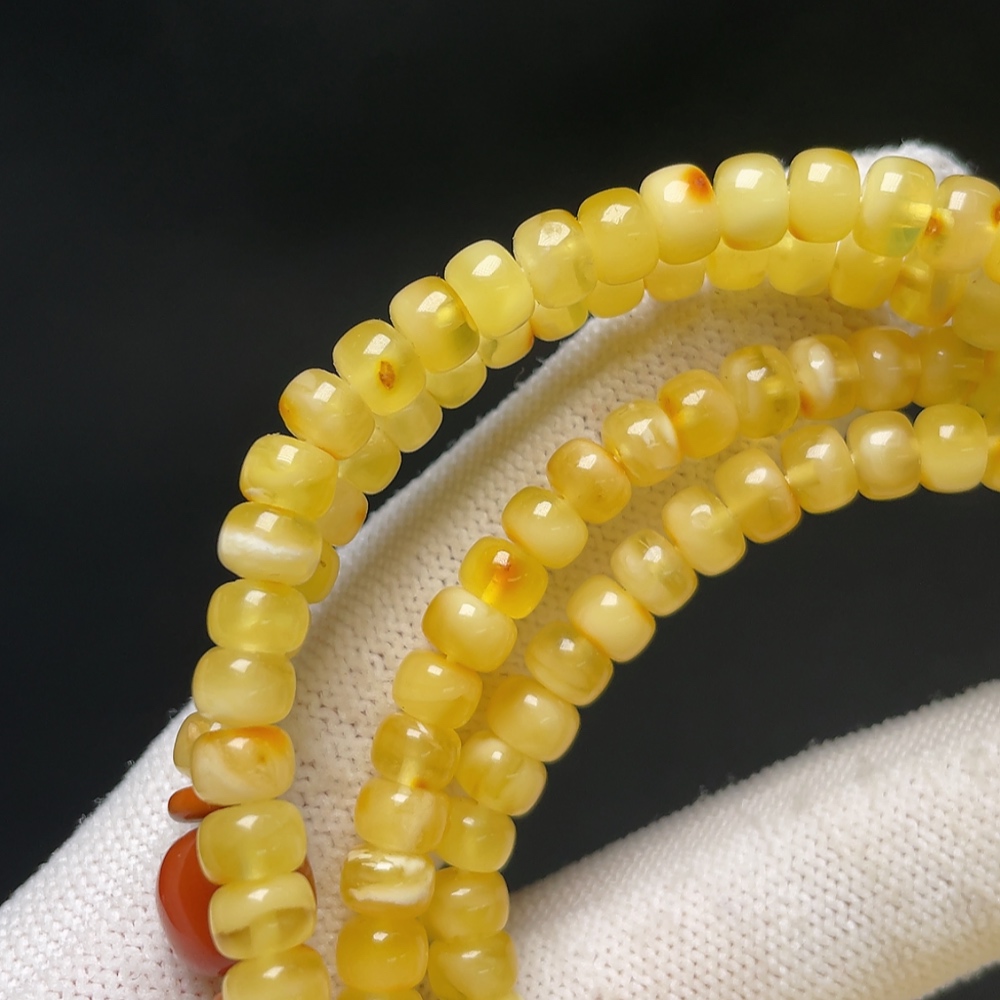 Amber Beeswax Bead Bracelet with Southern Red Agate and Hetian Jade (non-natural accent stones), total weight approx. 33.24g, bead size approx. 5.7mm