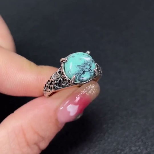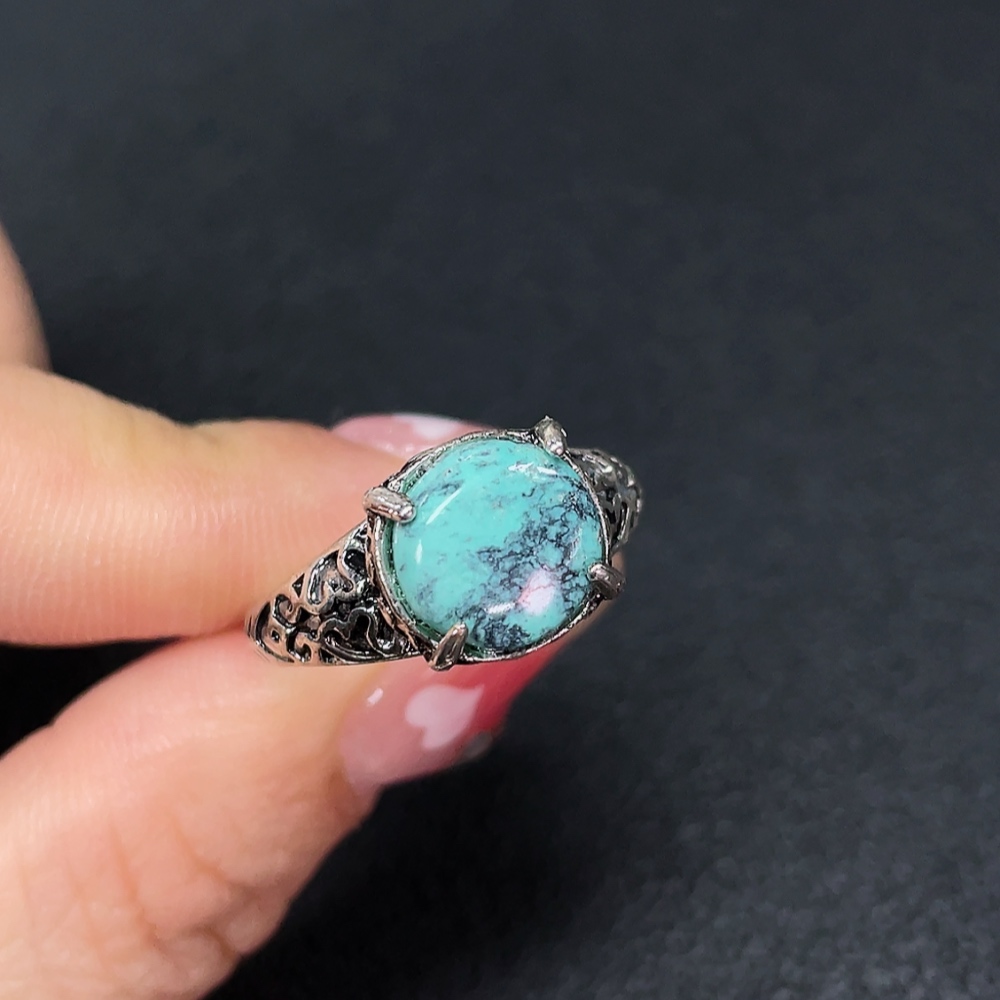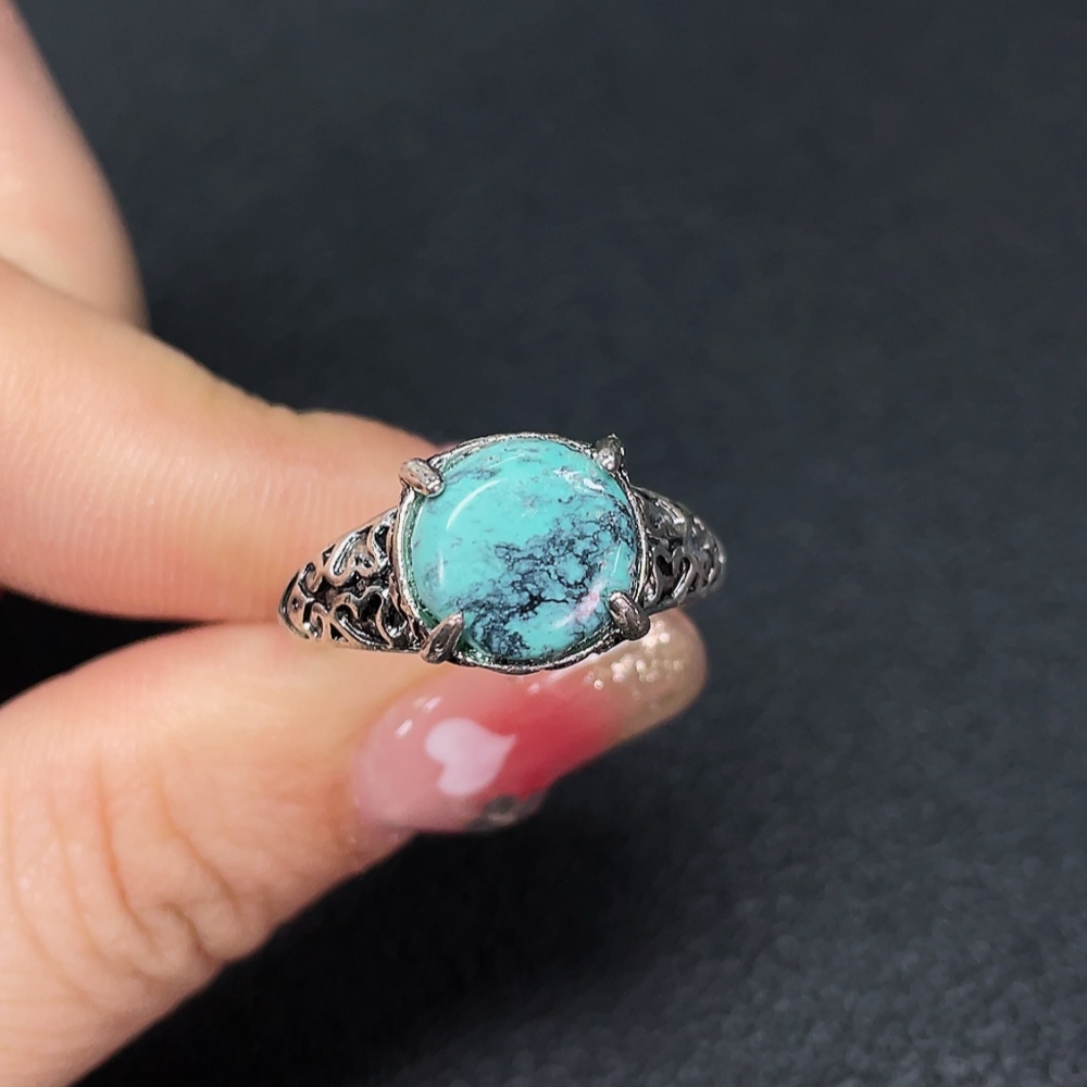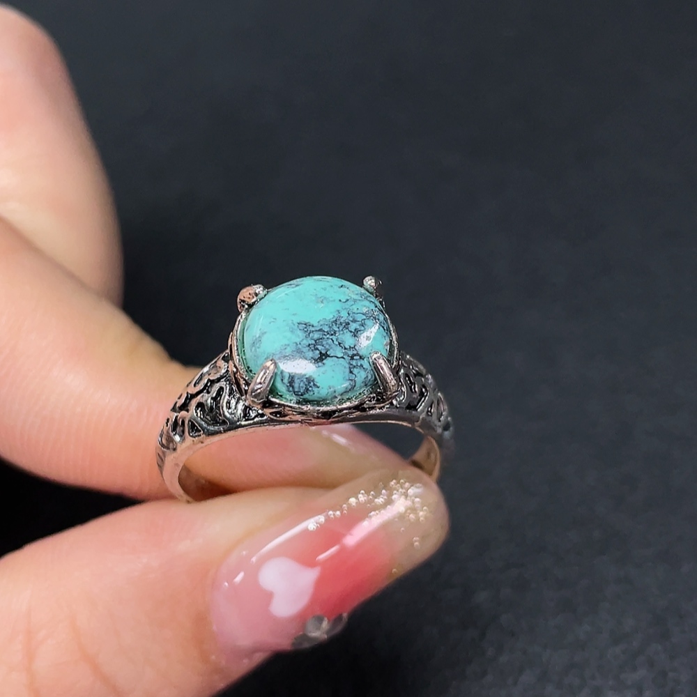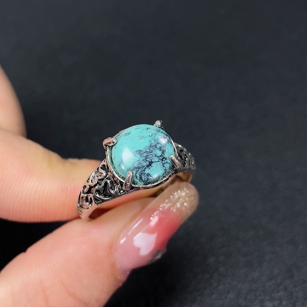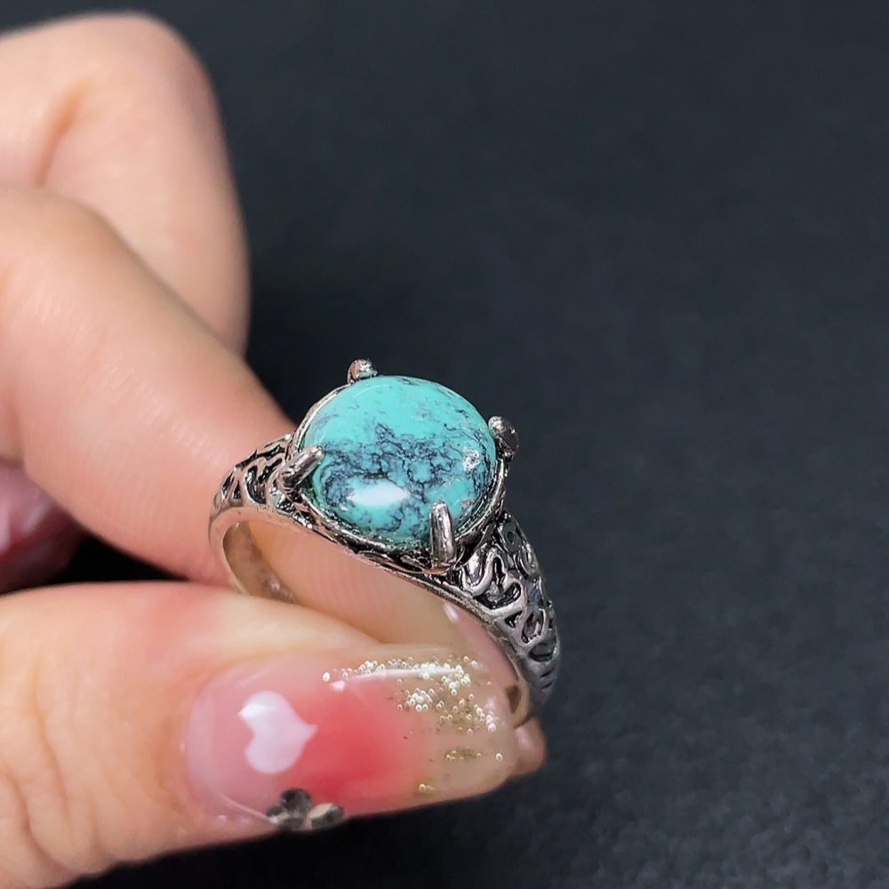 Turquoise Ring, Color Origin Undetermined, Contains Other Mineral Components, Total Weight Approximately 4.85g, Contains Trace Elements