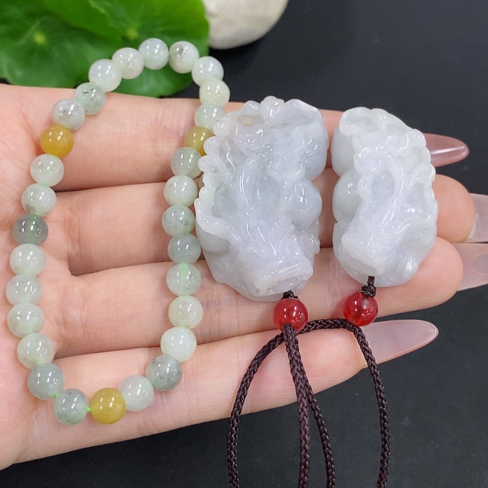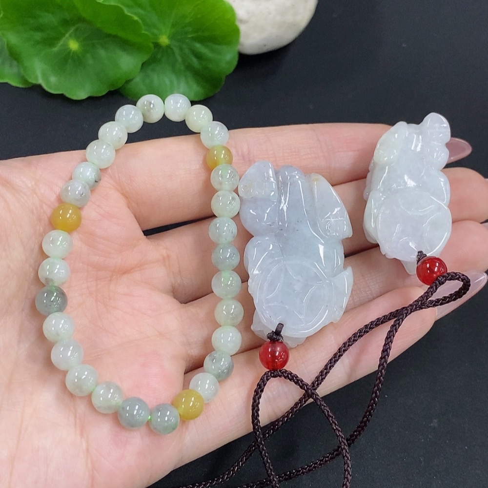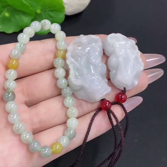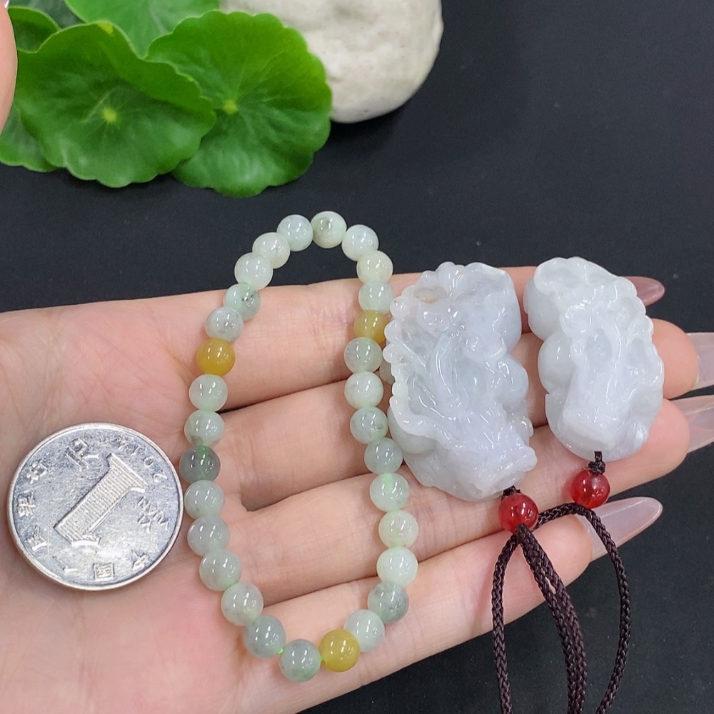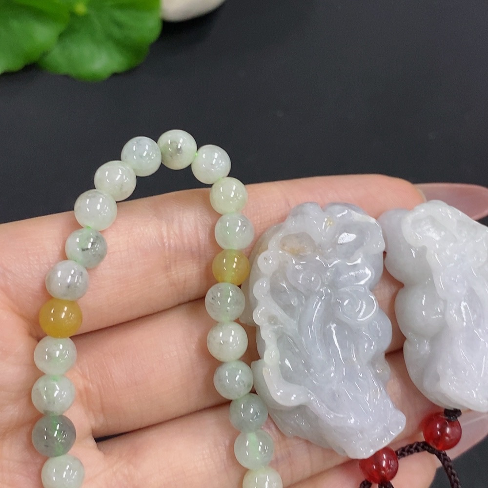 Jadeite Pendant + Bracelet Sell as a Lot with Non-Jadeite Beads and Non-Jadeite Yellow Beads