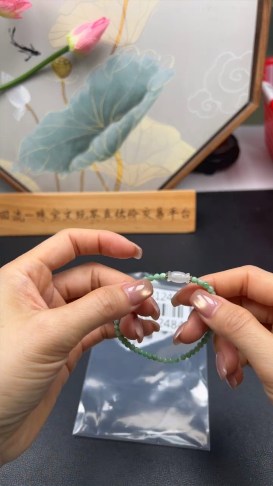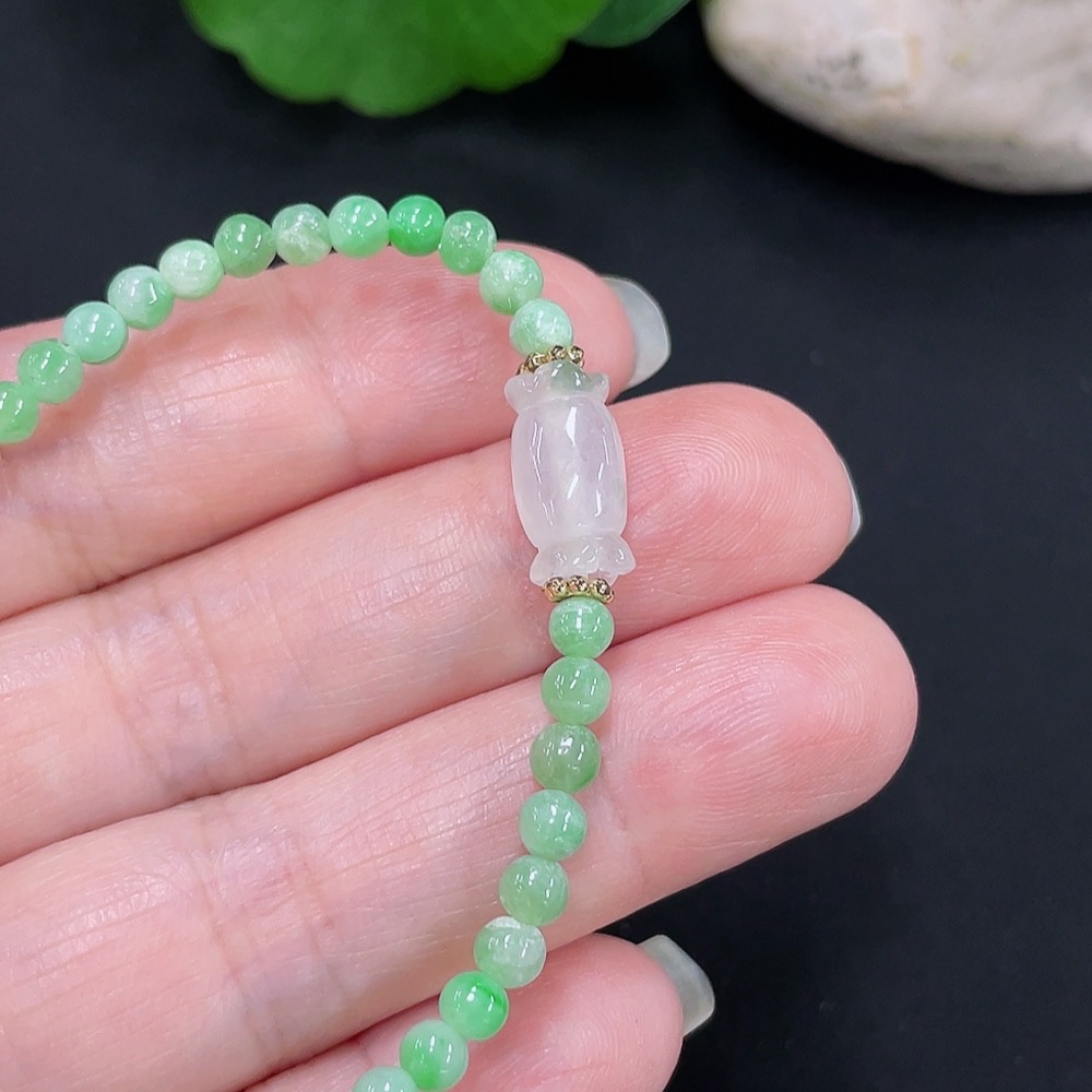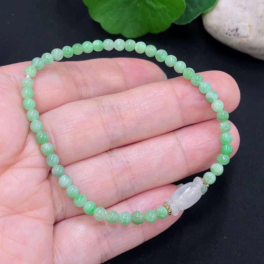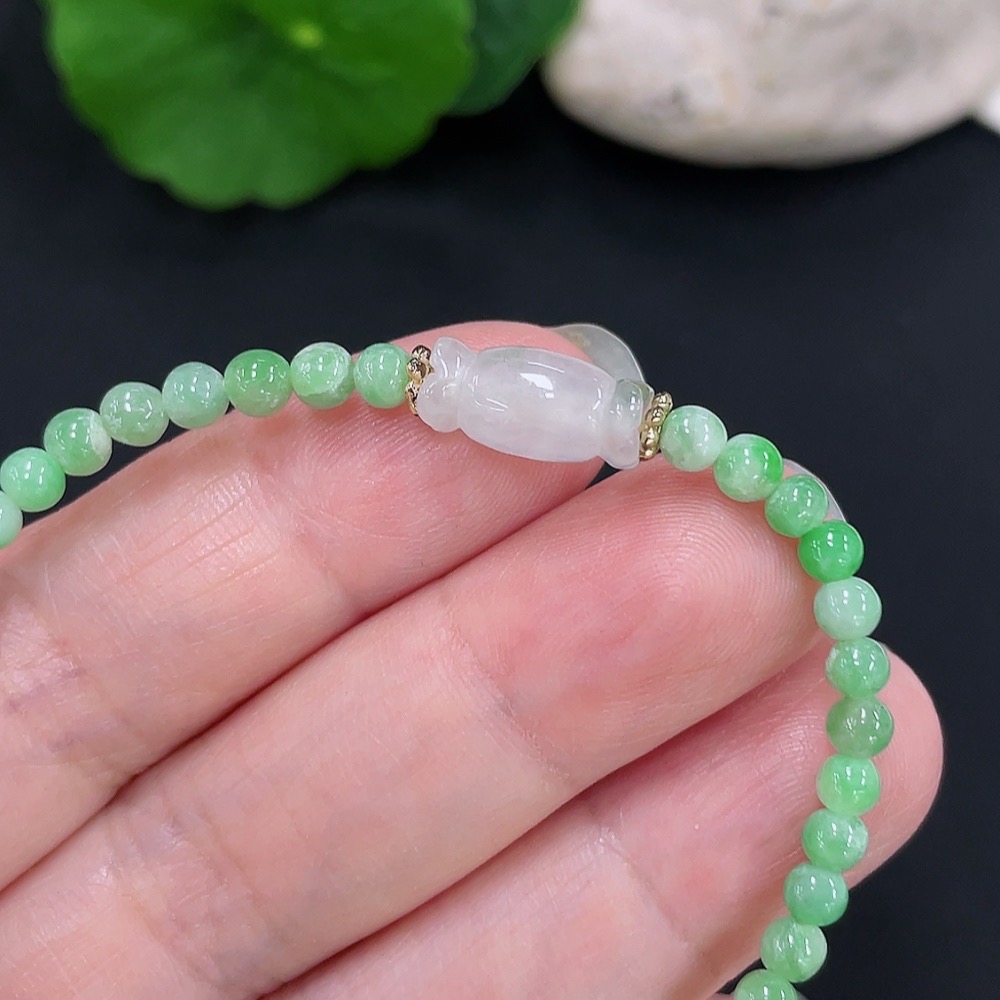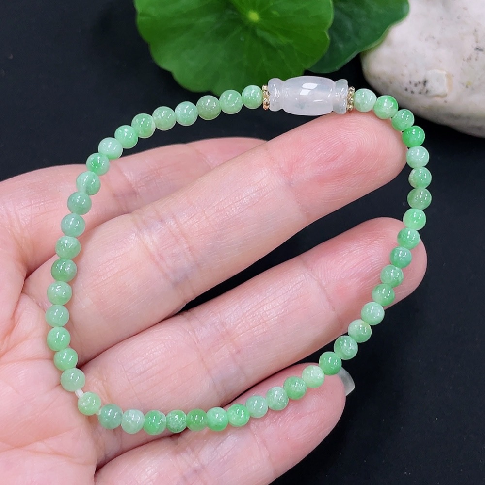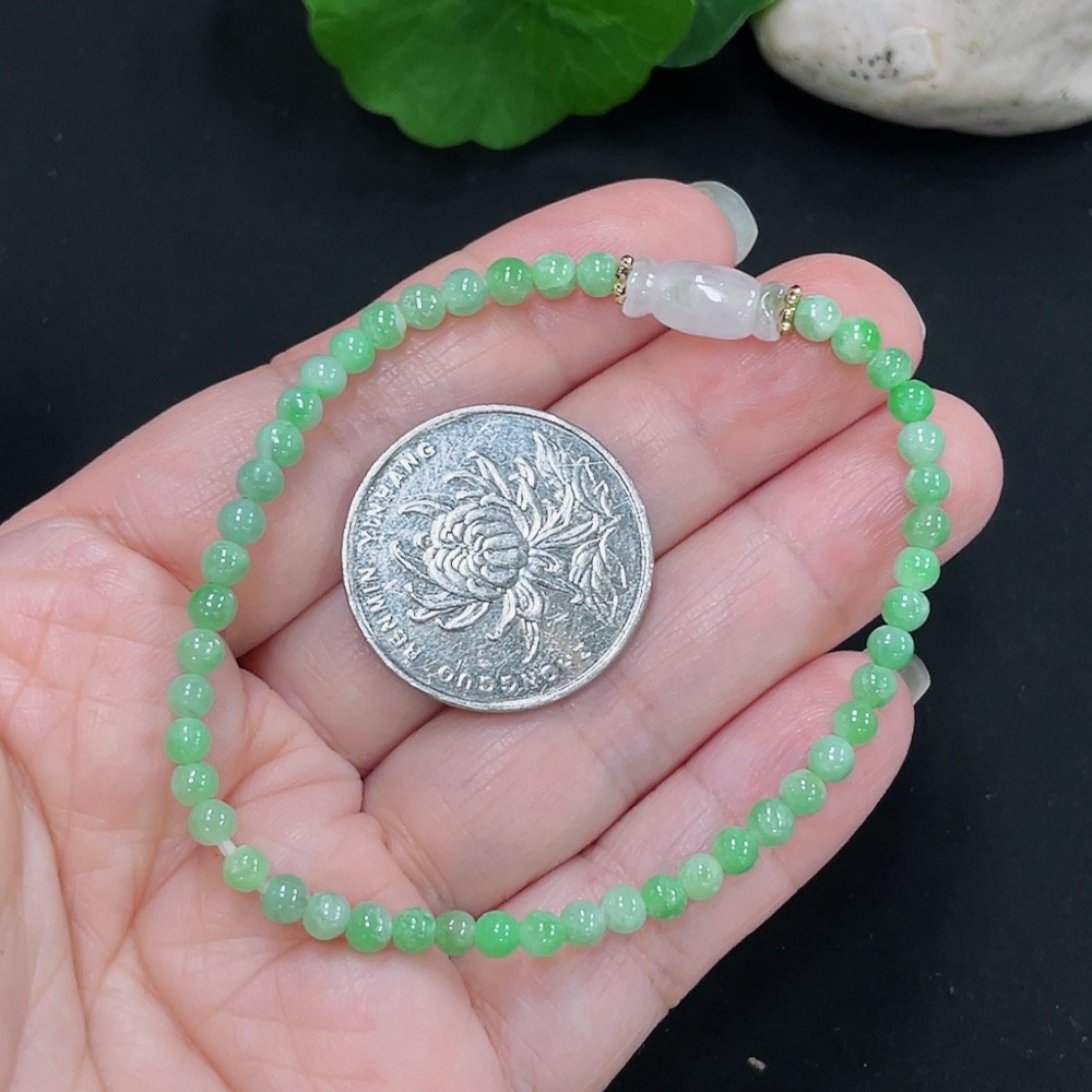 Jadeite bracelet, approximately 3.7mm beads, total weight about 4.7g (non-gold inlaid)