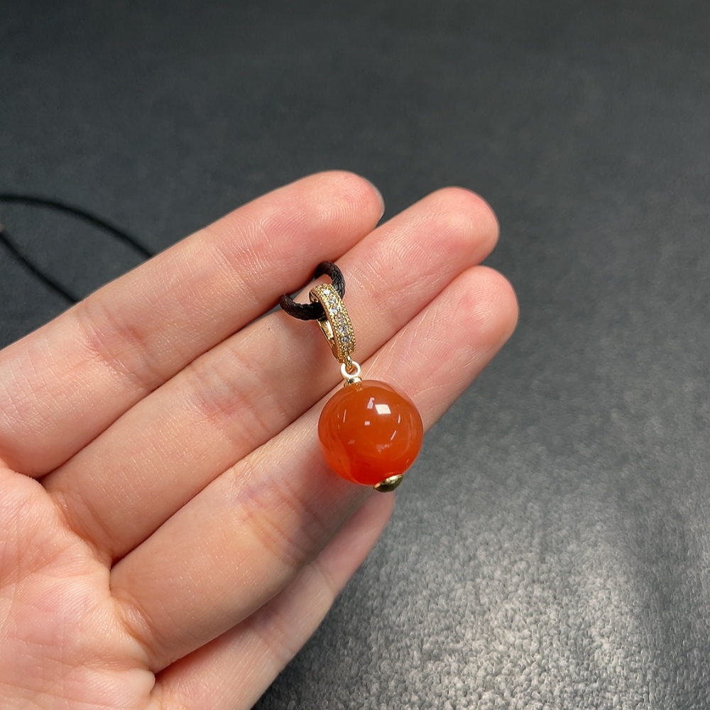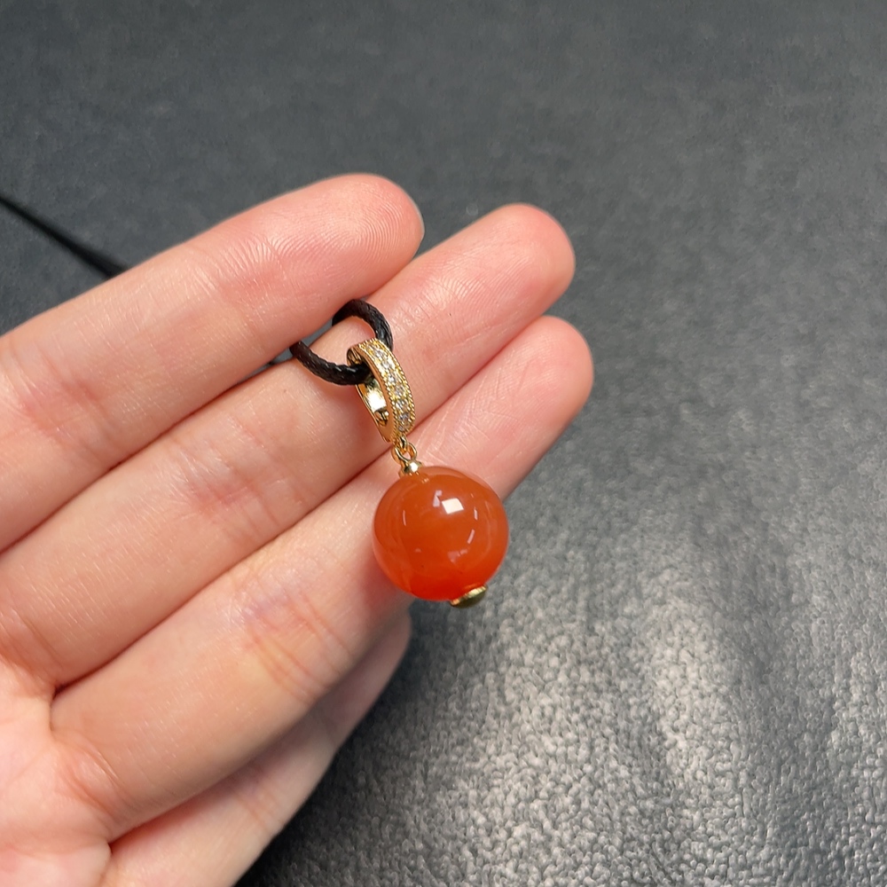 Red Agate Pendant Non-Gold Visible Organic Matter Total Weight Approx. 5.43g Including Cord Size About 13mm