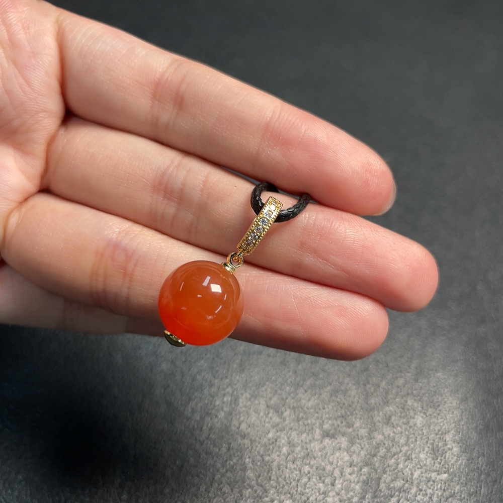 Trezaar - Red Agate Pendant Non-Gold Visible Organic Matter Total Weight Approx. 5.43g Including Cord Size About 13mm