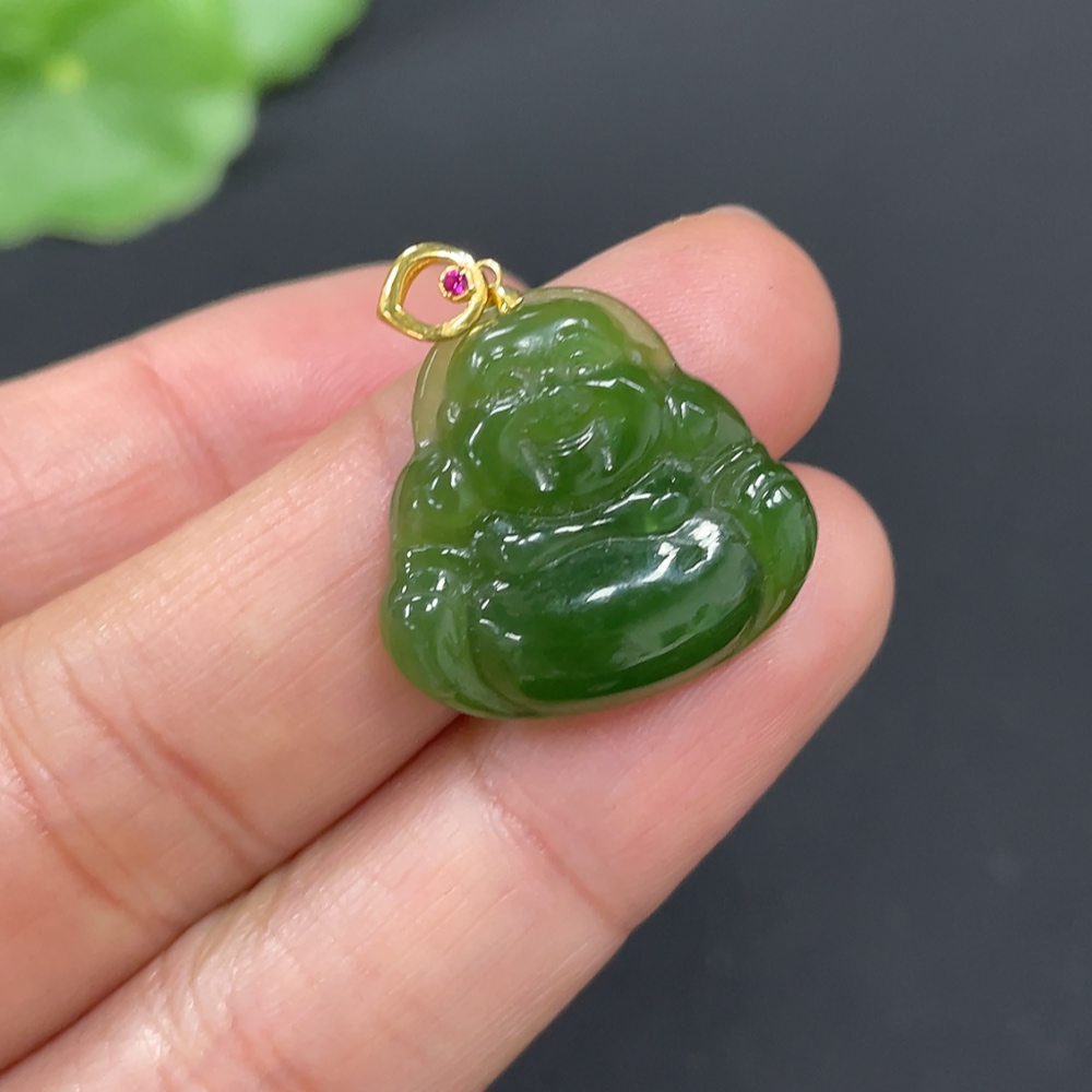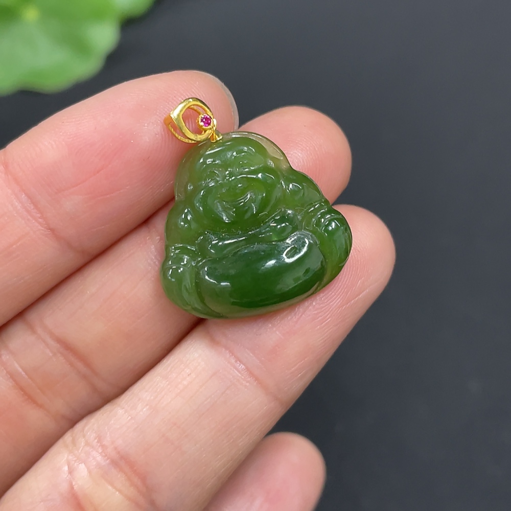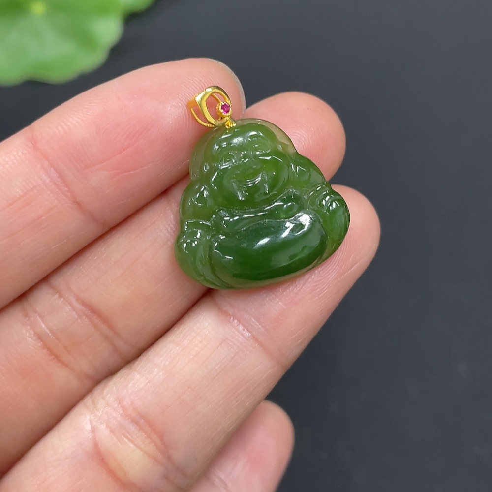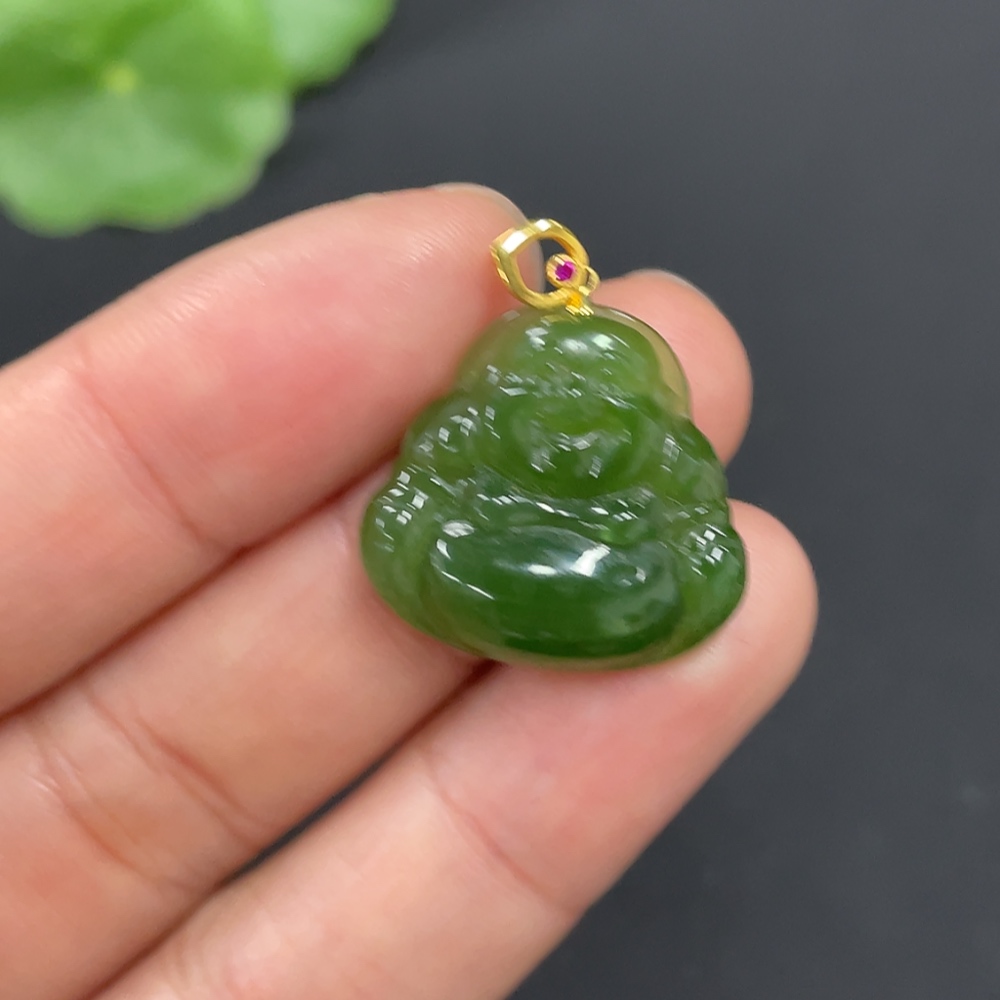 Hetian Jade Pendant, Buddha, 18K Gold Clasp, Total Weight Approx. 2.3g