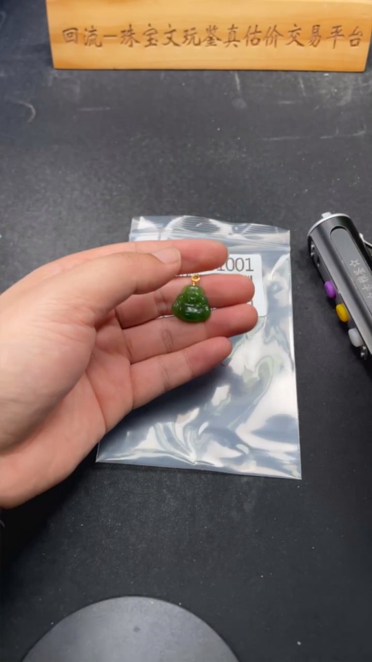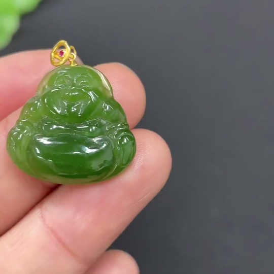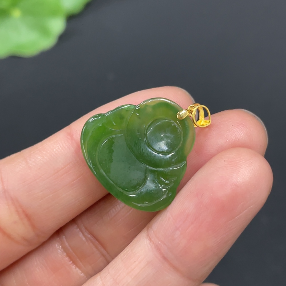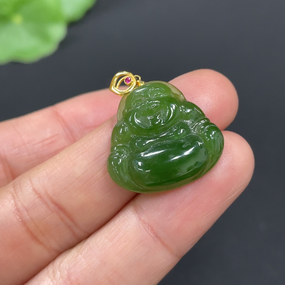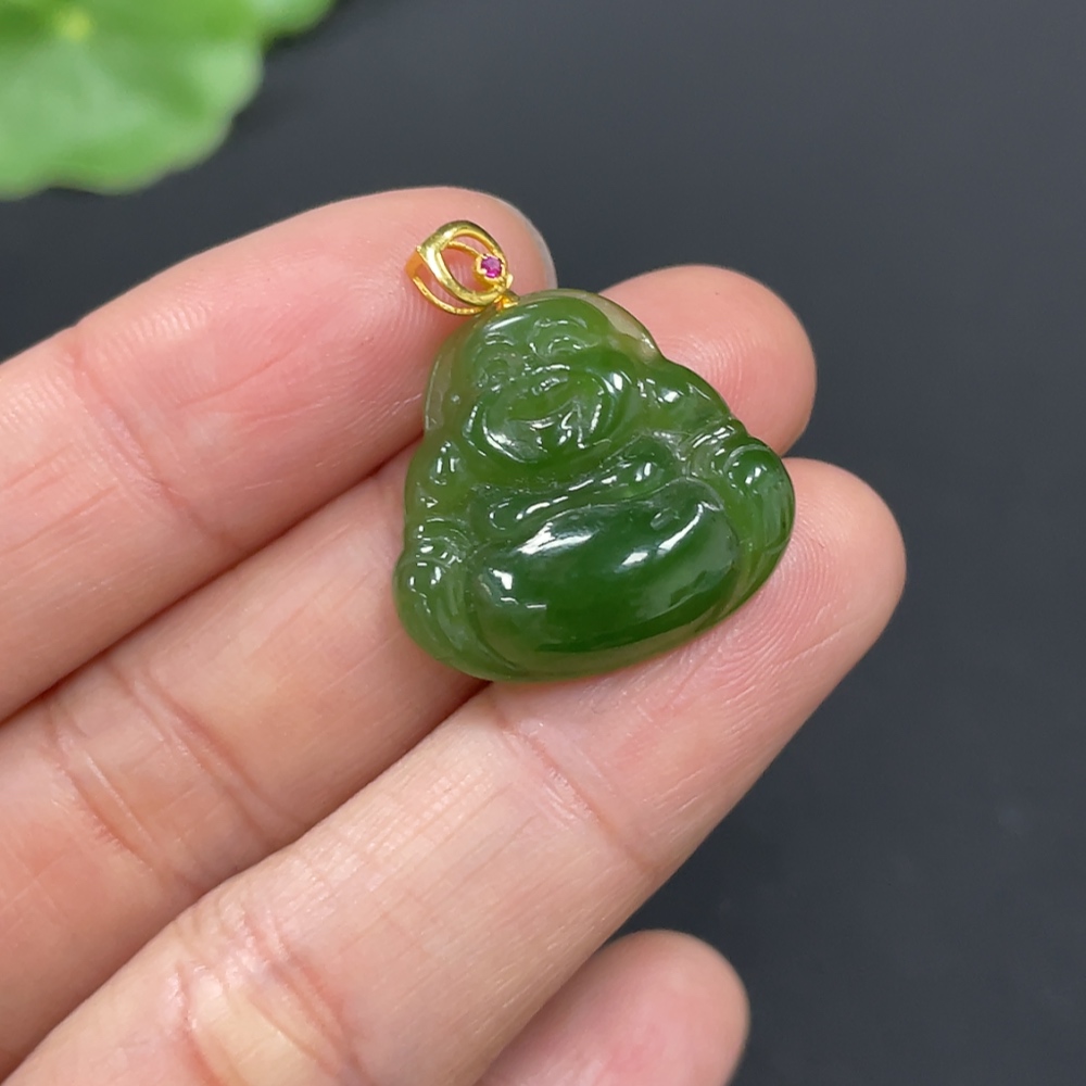 Hetian Jade Pendant, Buddha, 18K Gold Clasp, Total Weight Approx. 2.3g