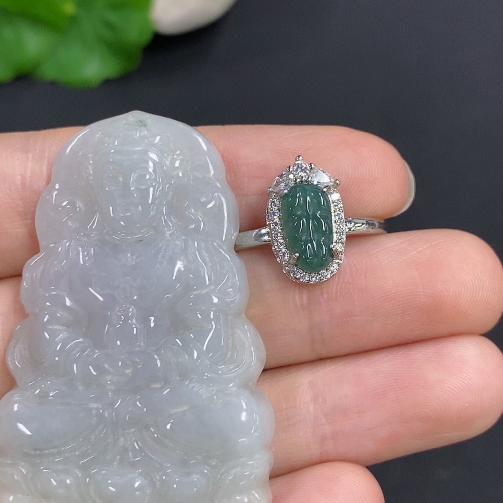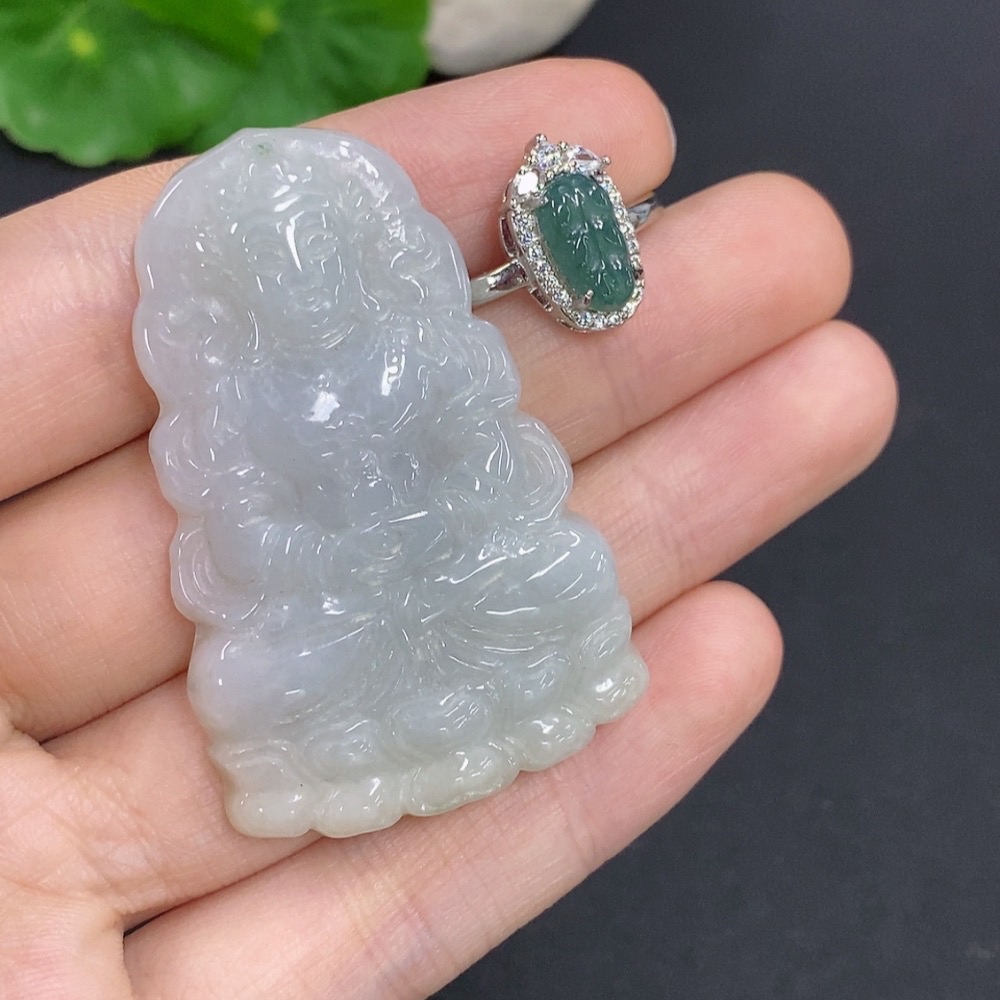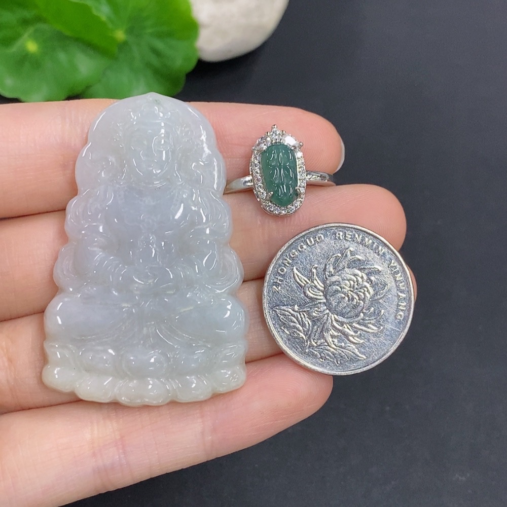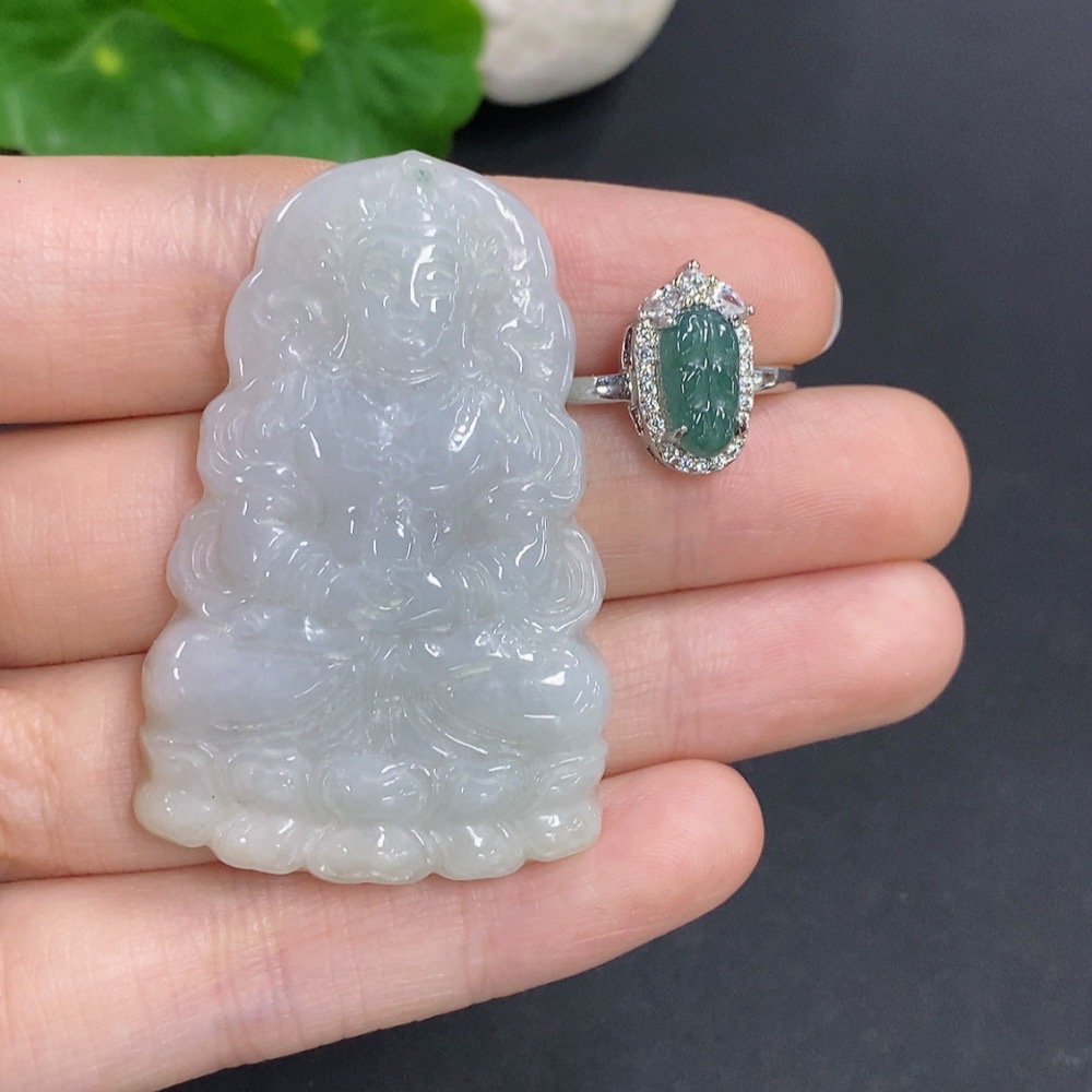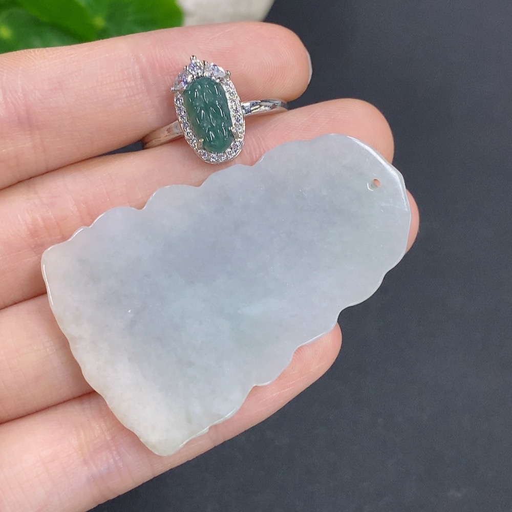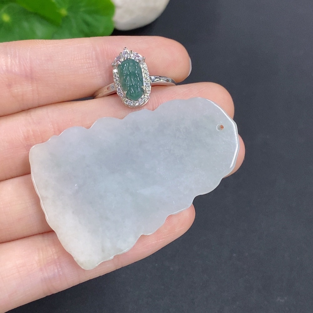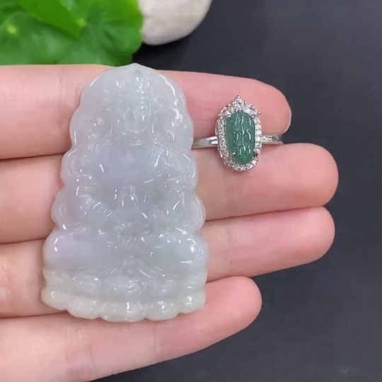 Jadeite Pendant and Ring Sell as a Lot Size Adjustable Non-Gold Inlaid