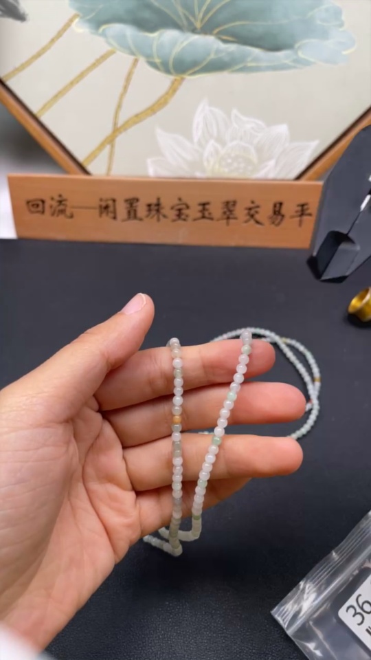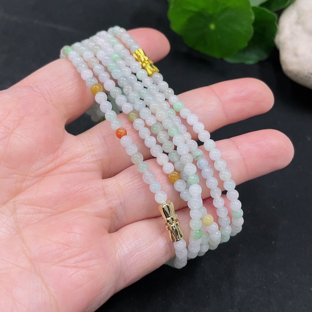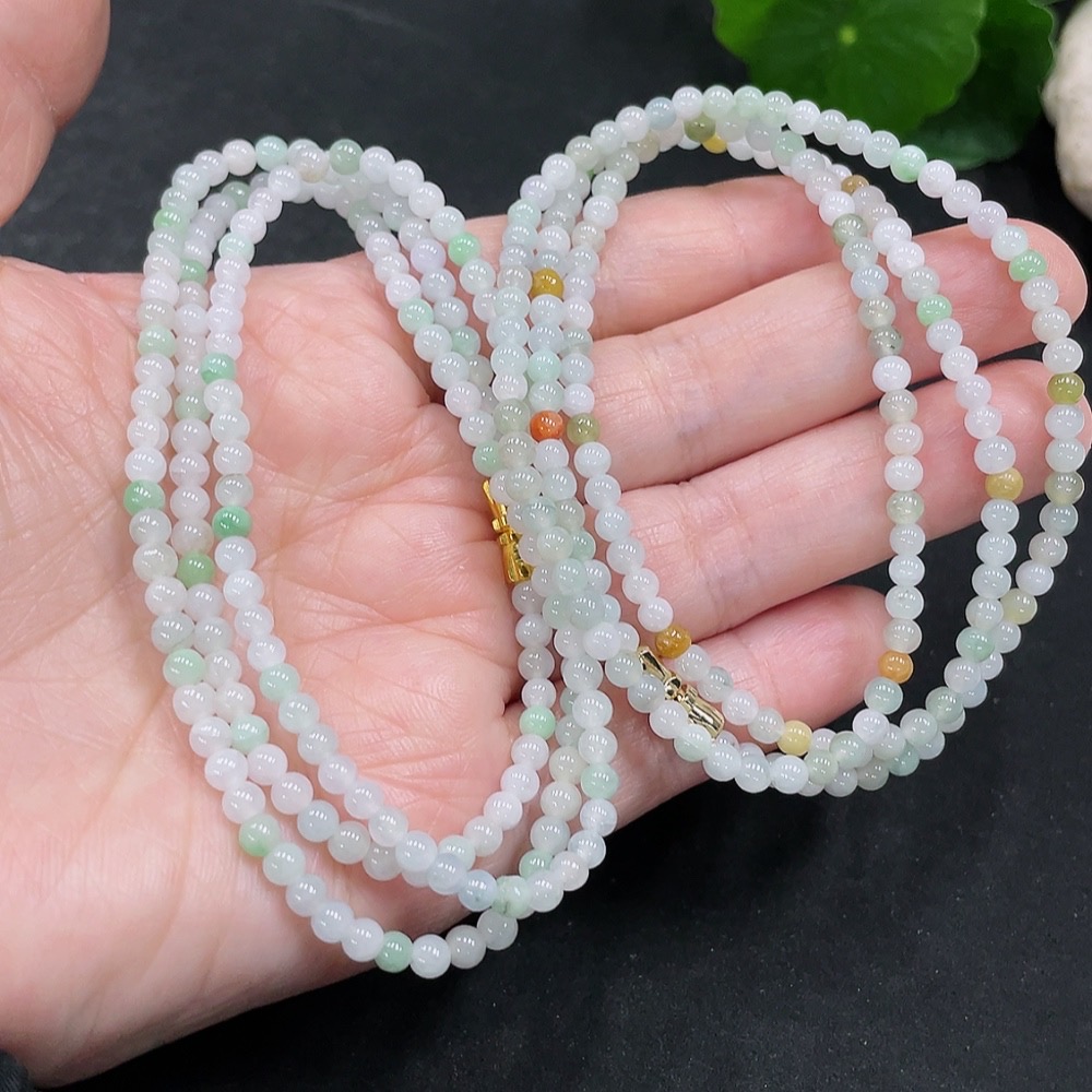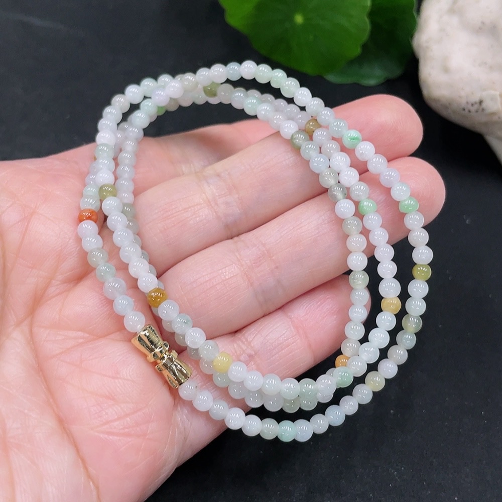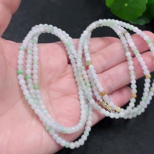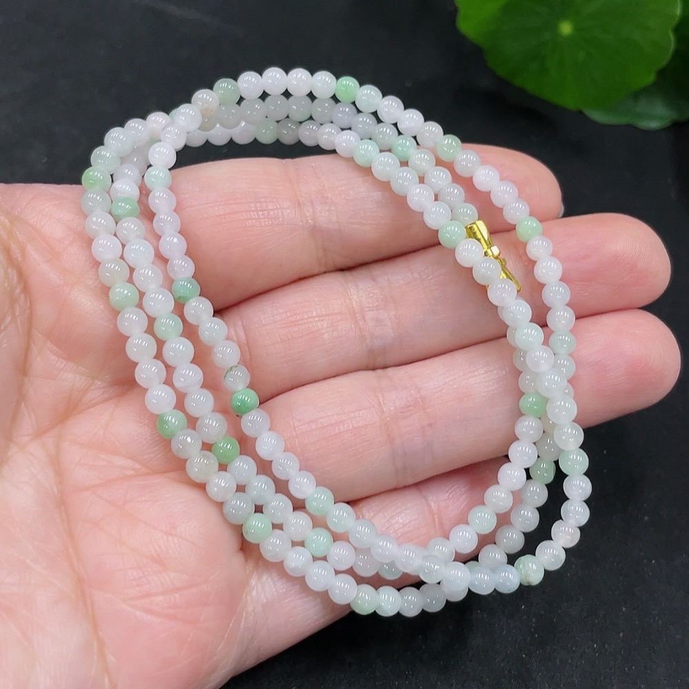 Jadeite Bead Necklace Non-Gold Inlaid Total Weight Approx. 27.33g