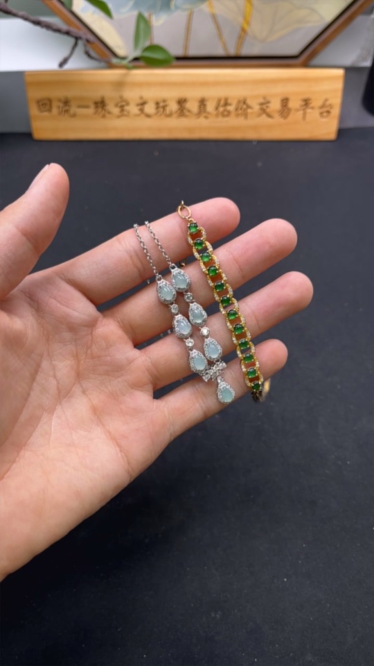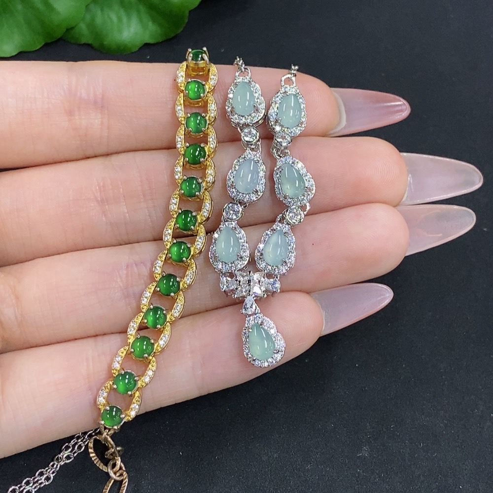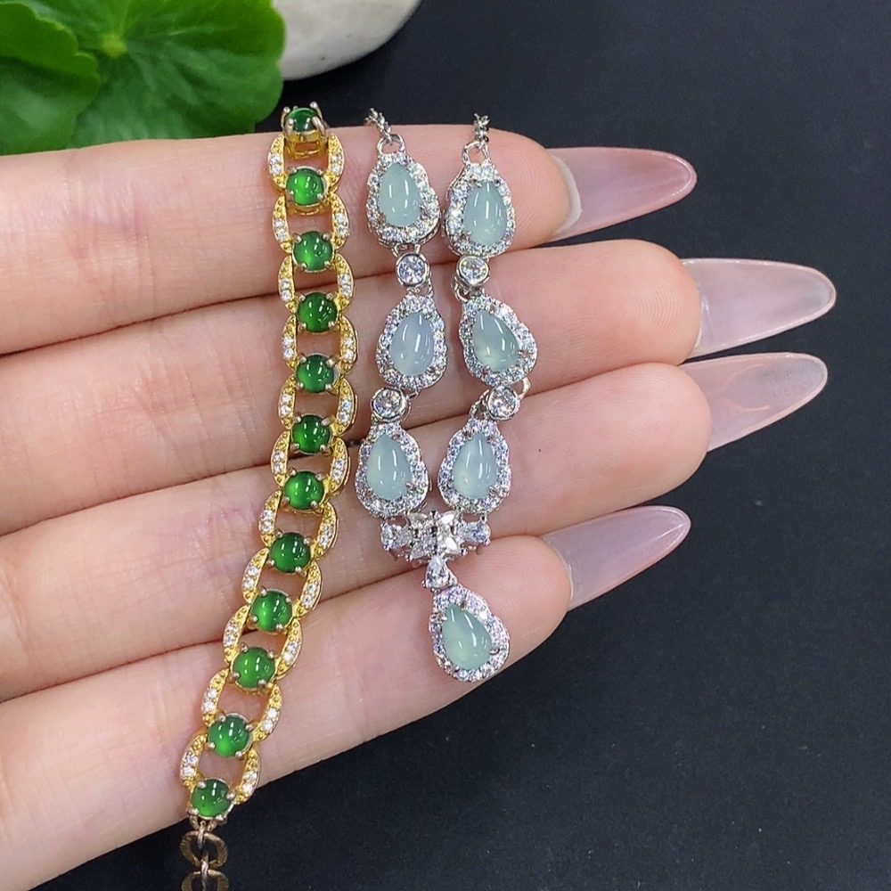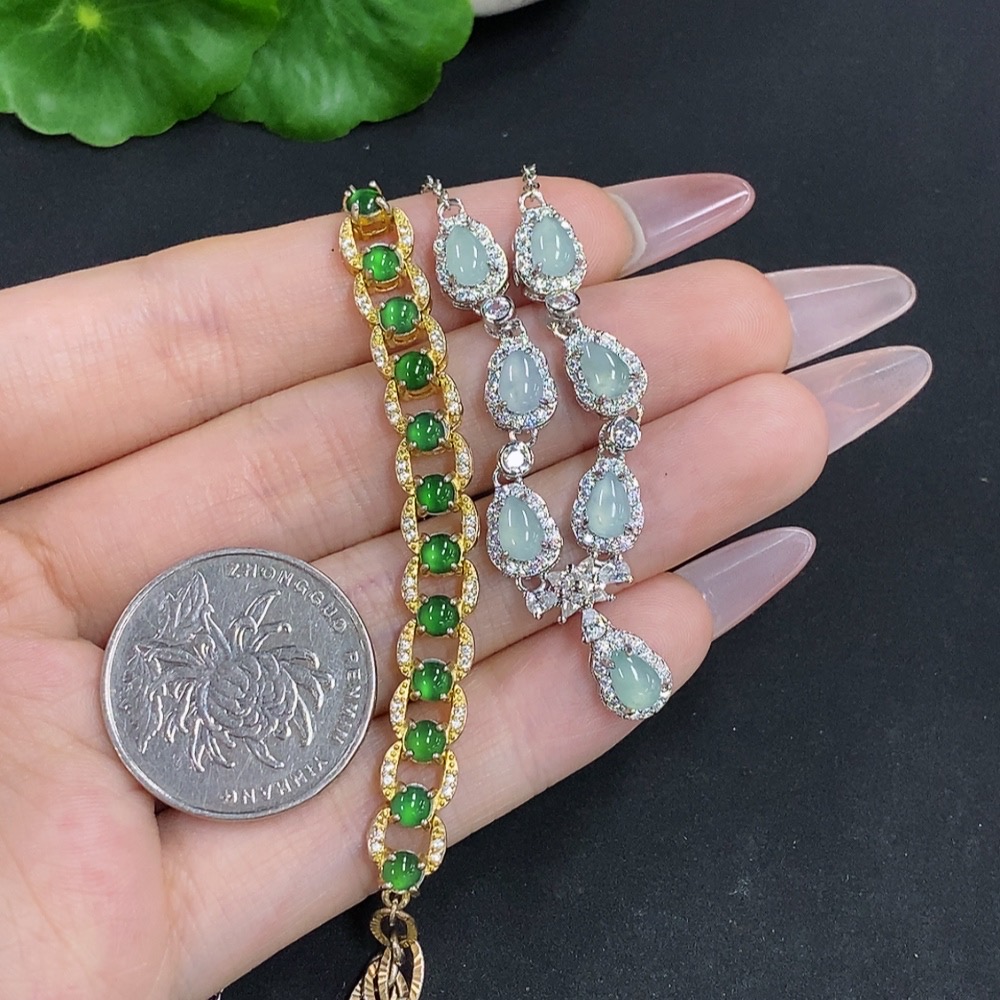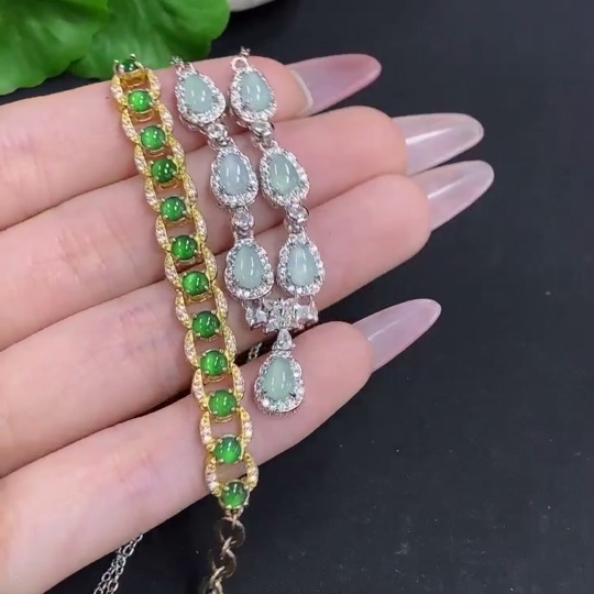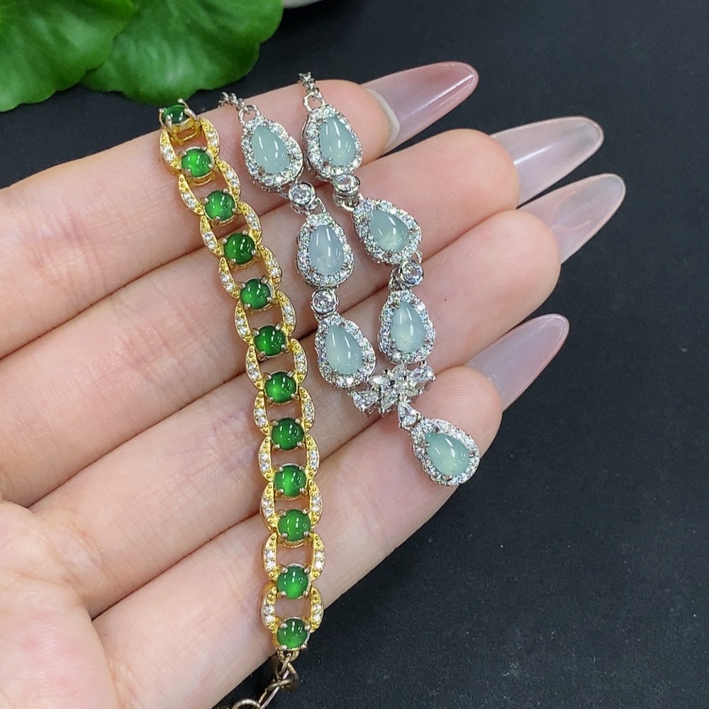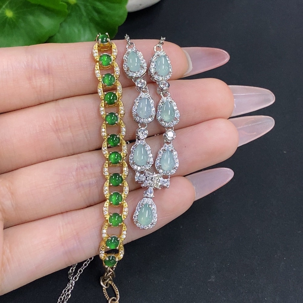 Jadeite Inlaid Bracelet/Pendant Sell as a Lot Non-Gold Inlaid