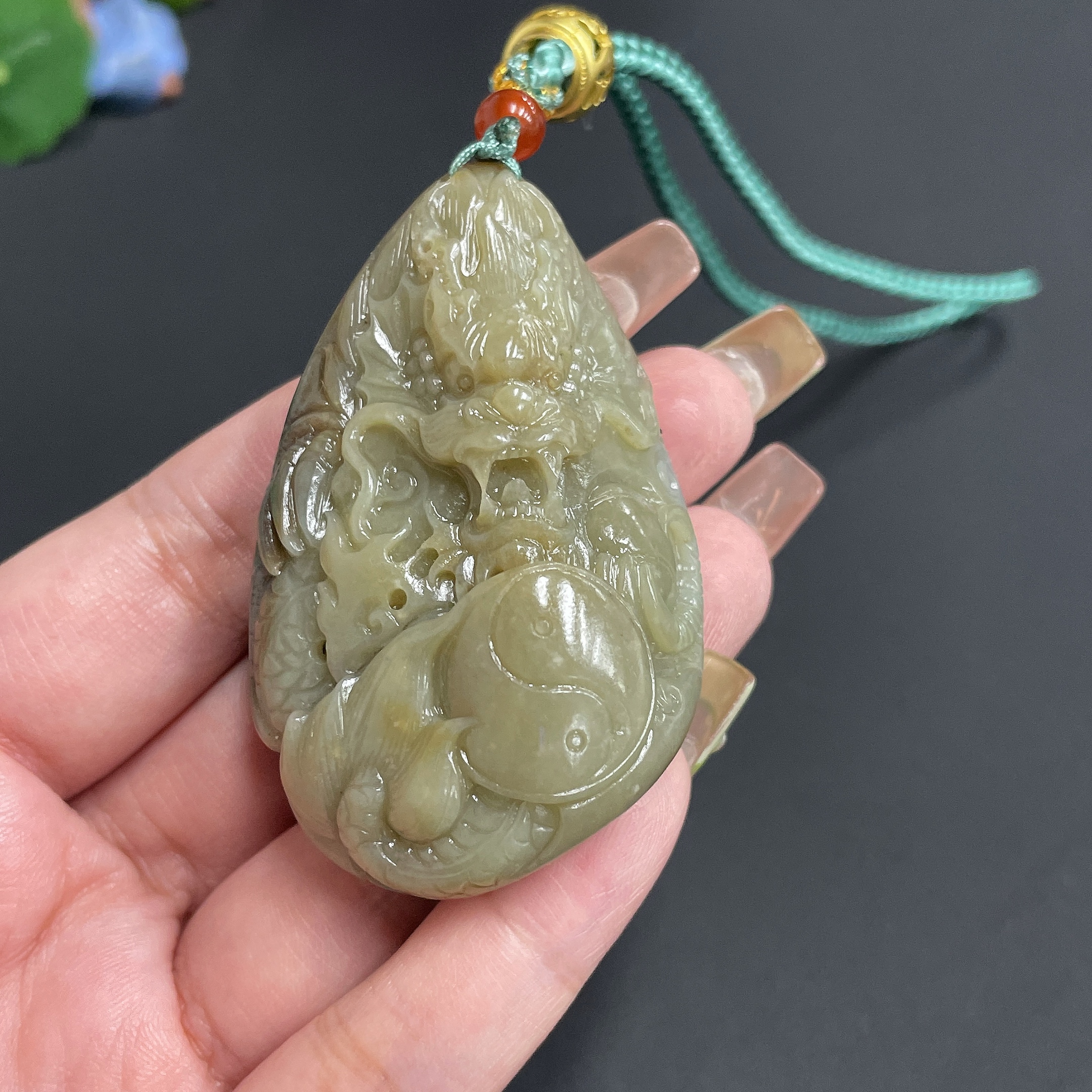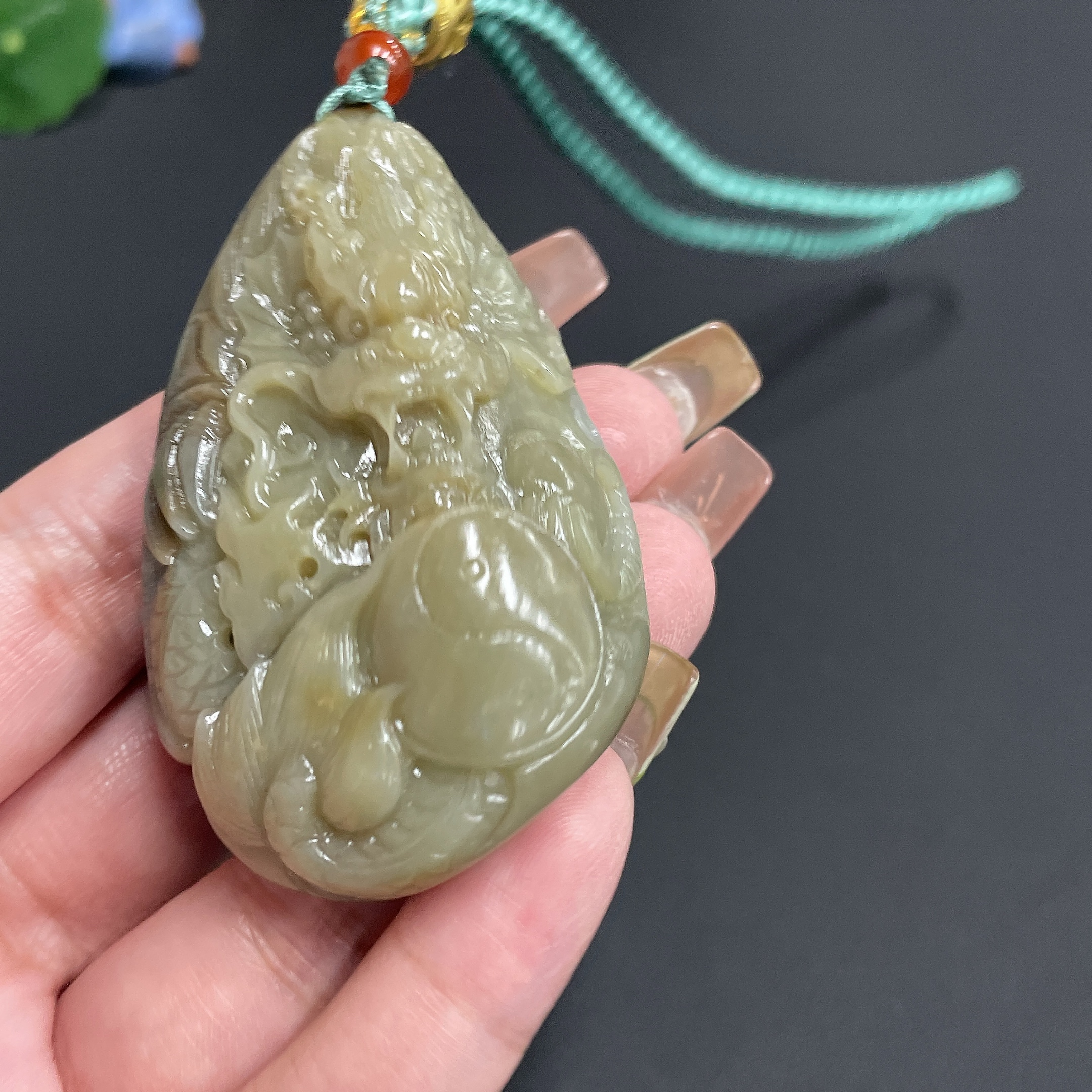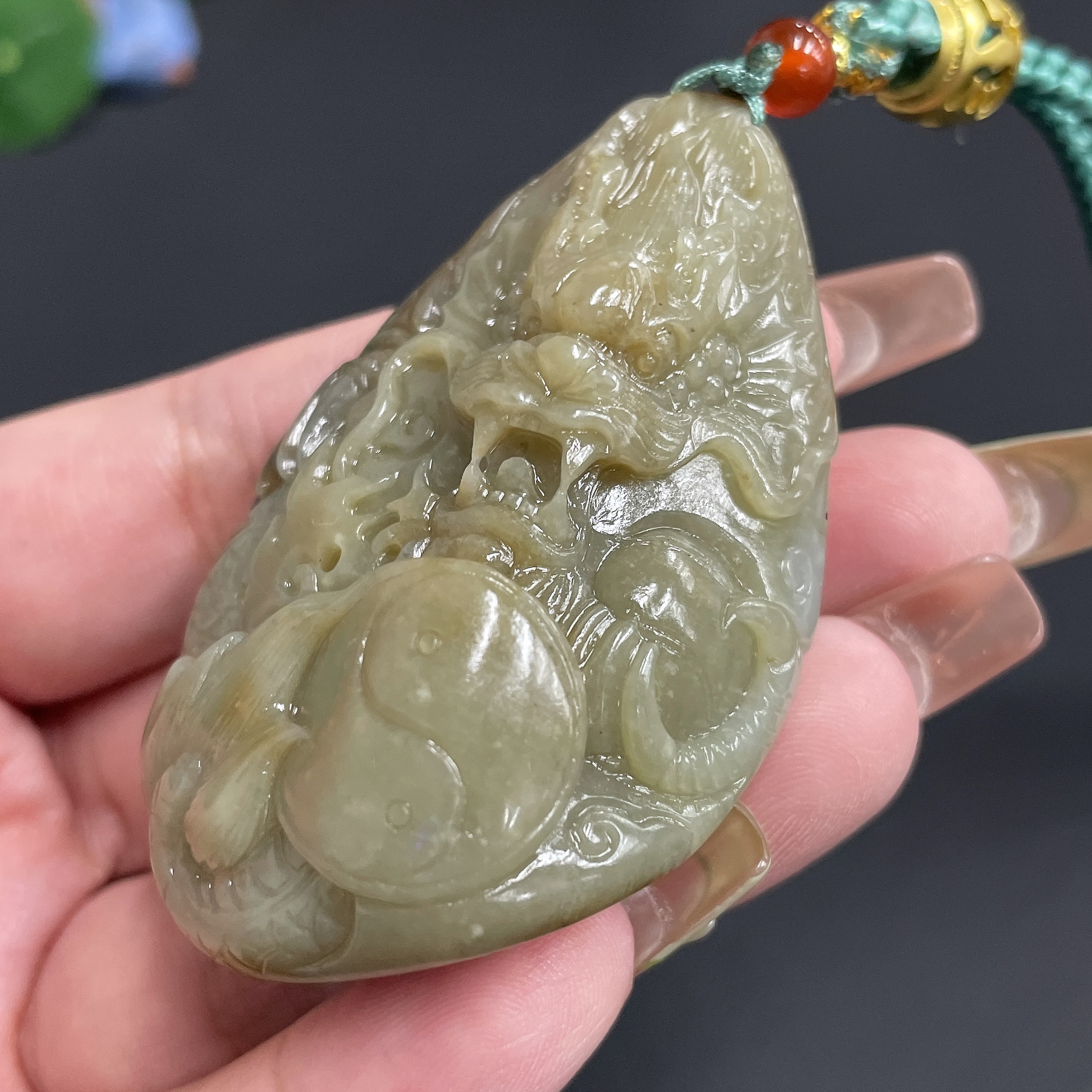 Hetian Jade Handheld Carving 'Dragon Roaming the World' with Cord, Total Weight 77.66g