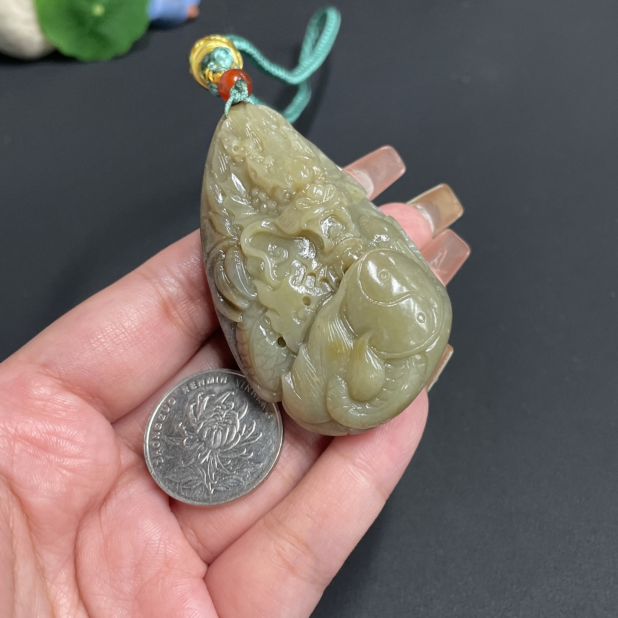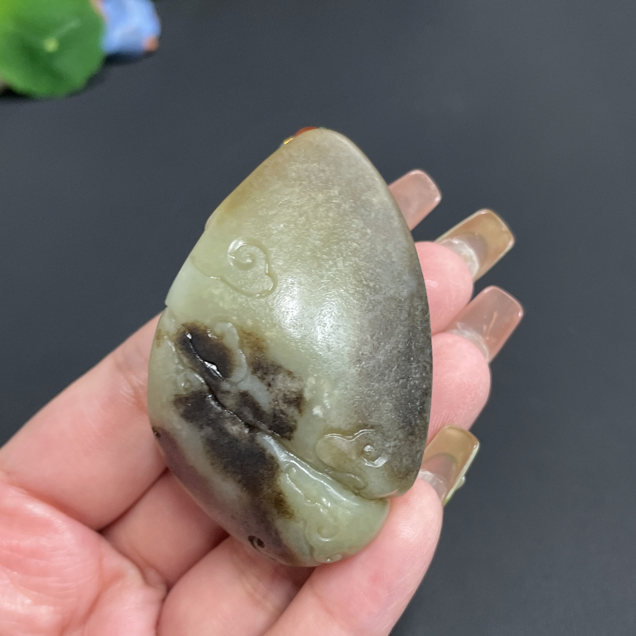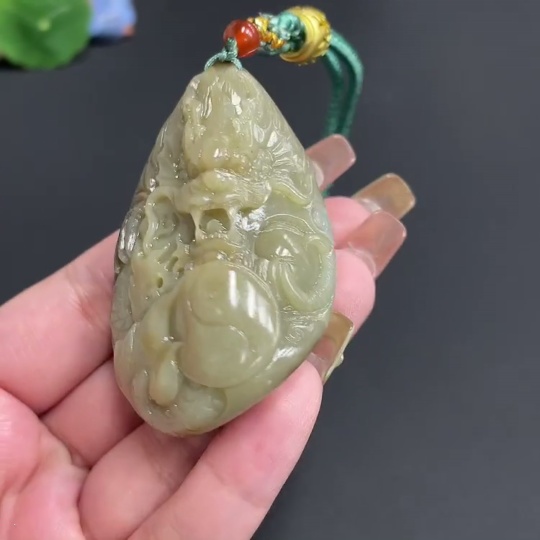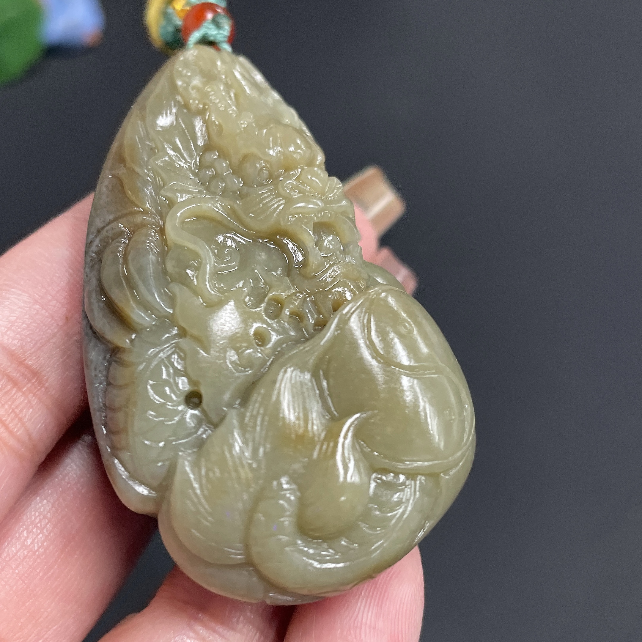 Hetian Jade Handheld Carving 'Dragon Roaming the World' with Cord, Total Weight 77.66g