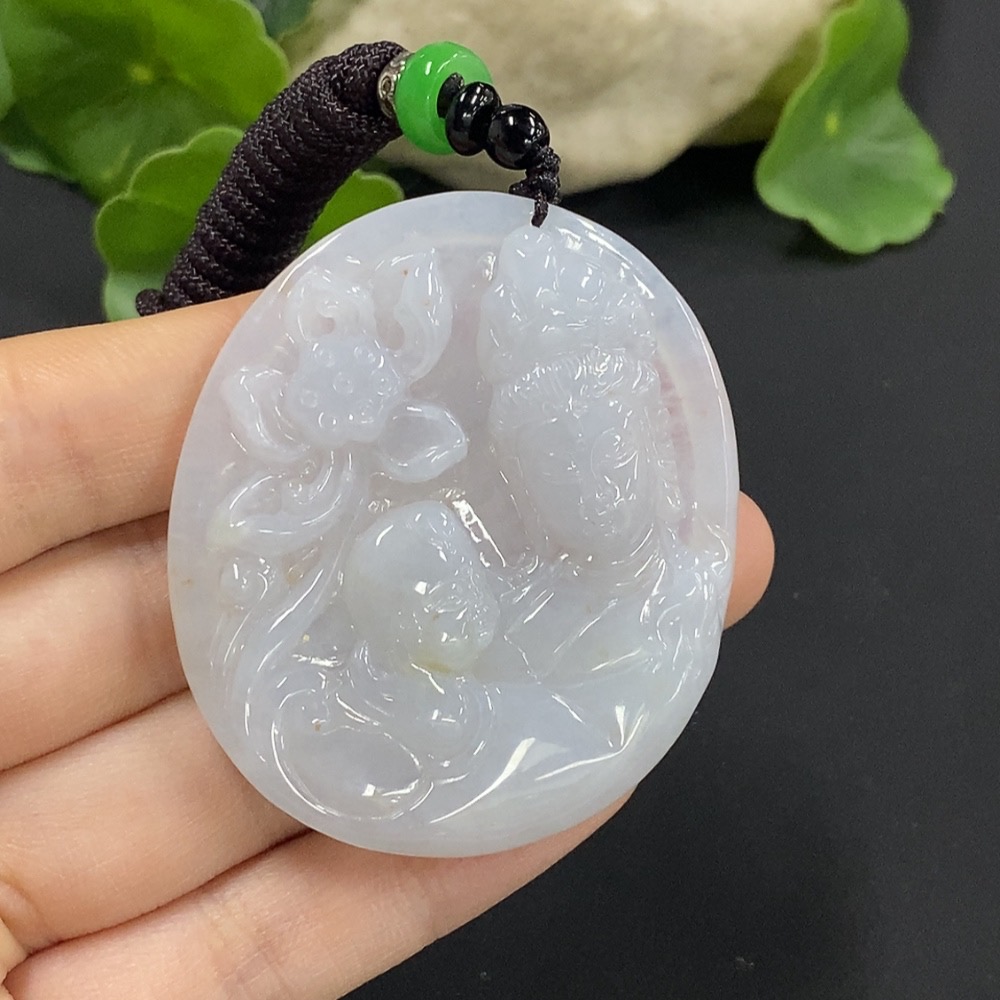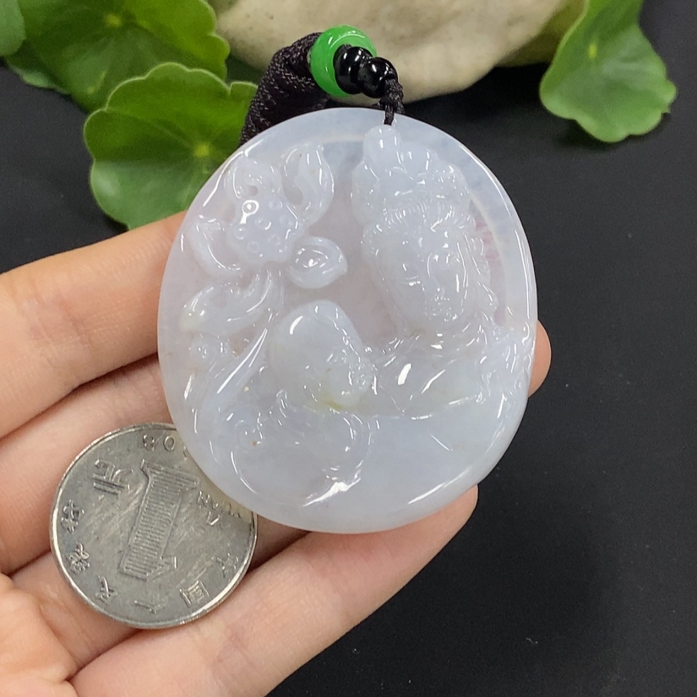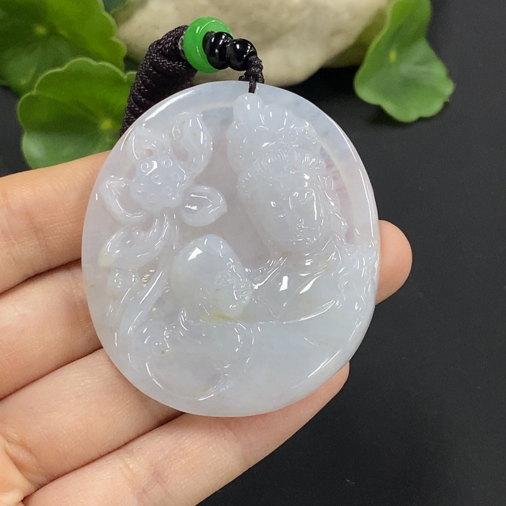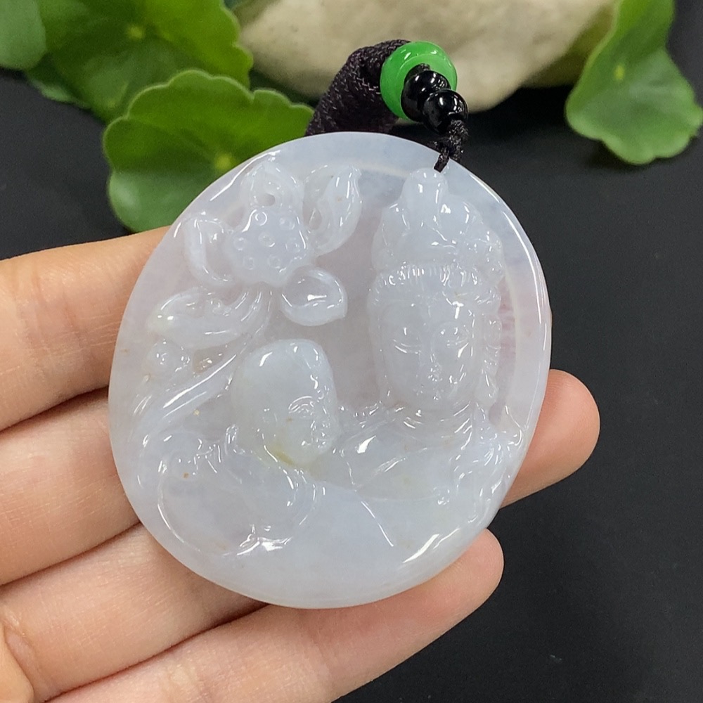 Jadeite Guanyin Pendant with Non-A Grade Beads, Total Weight Approximately 31.3g