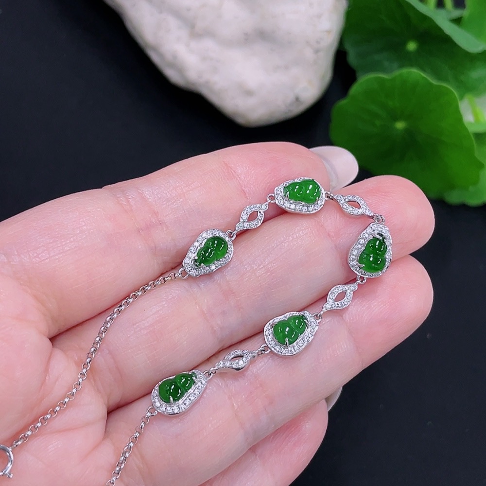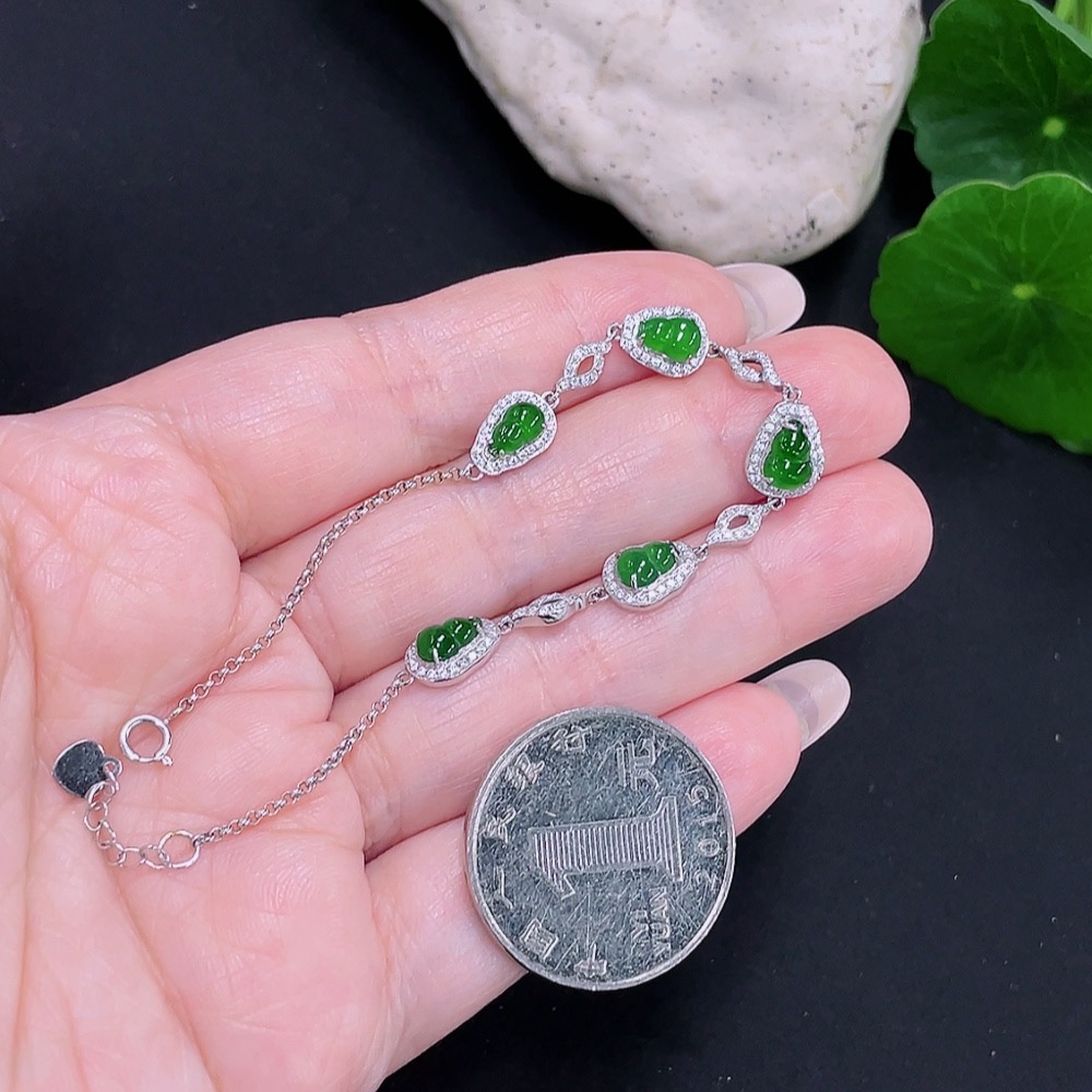 Jadeite Inlaid Bracelet 18K Gold Total Weight Approx. 2.9g (Non-Diamond)