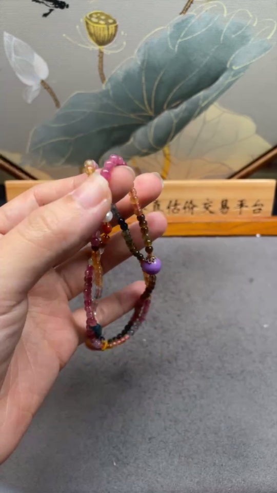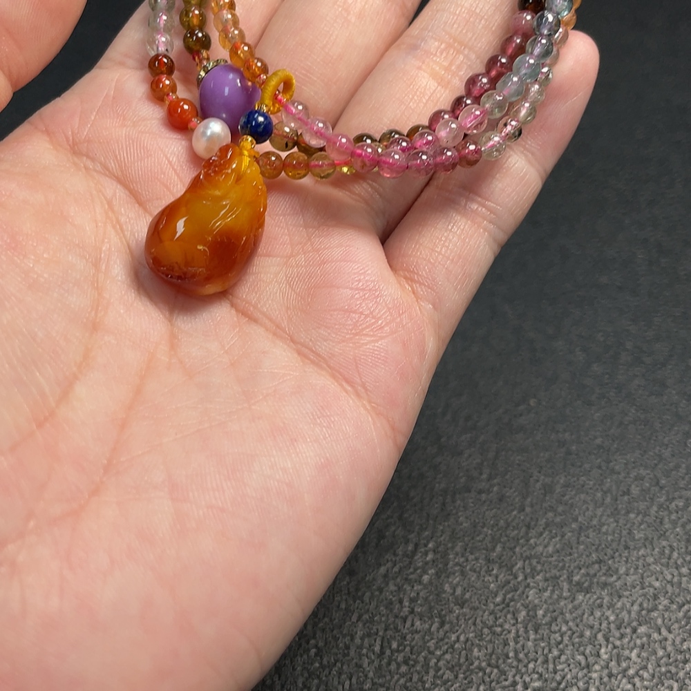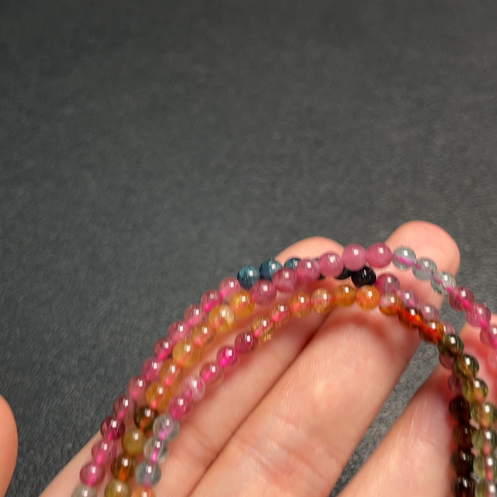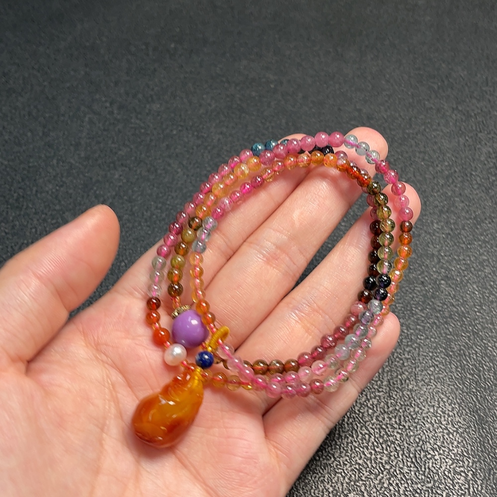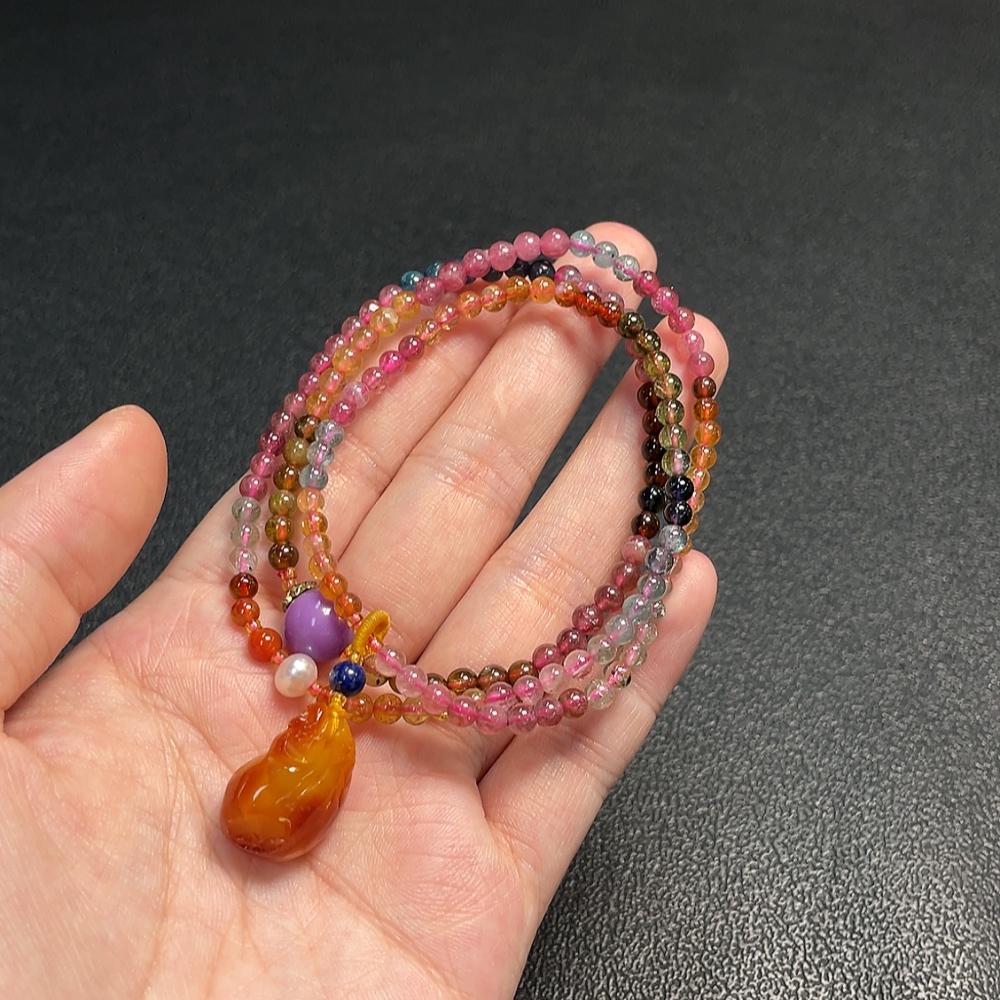 Tourmaline bead bracelet with amber, coated with colorless film, visible organic matter, non-natural/non-metal accent stones, total weight approx. 15.51g, bead size ~3.7mm