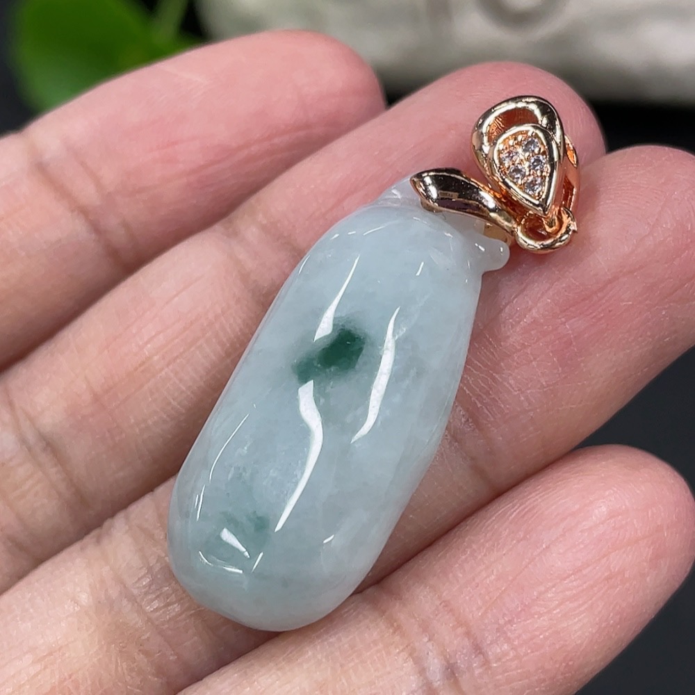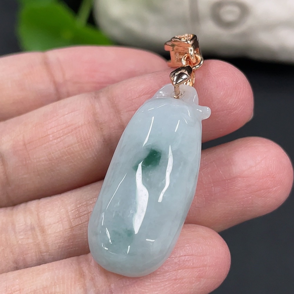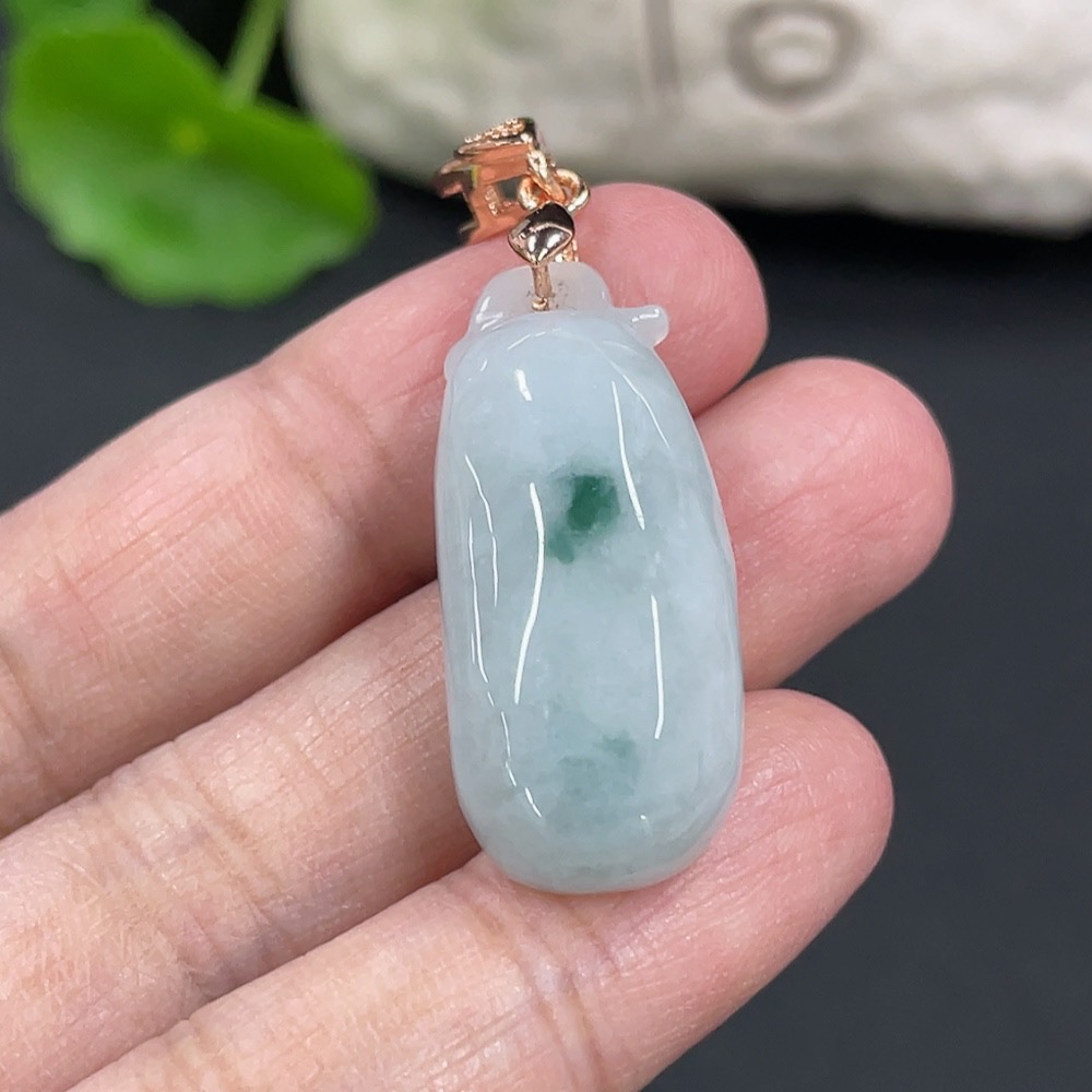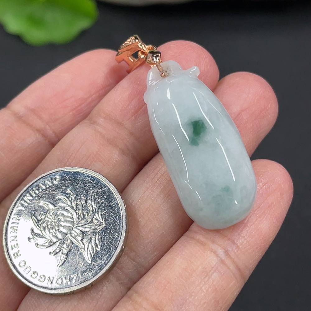 Jadeite Auspicious Gourd Pendant Total weight approx. 6.3g Non-gold clasp