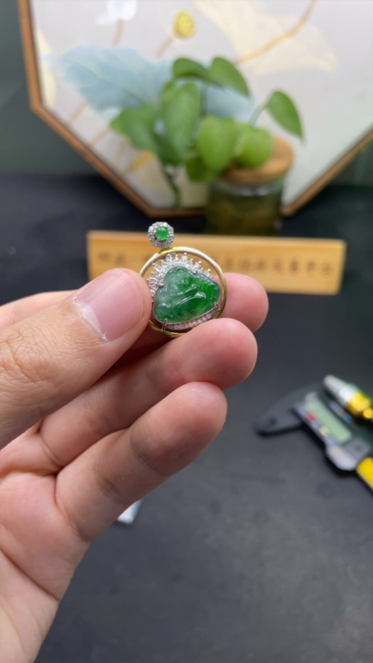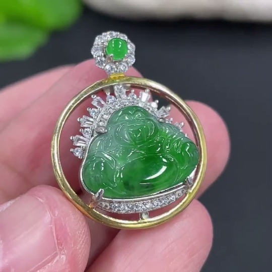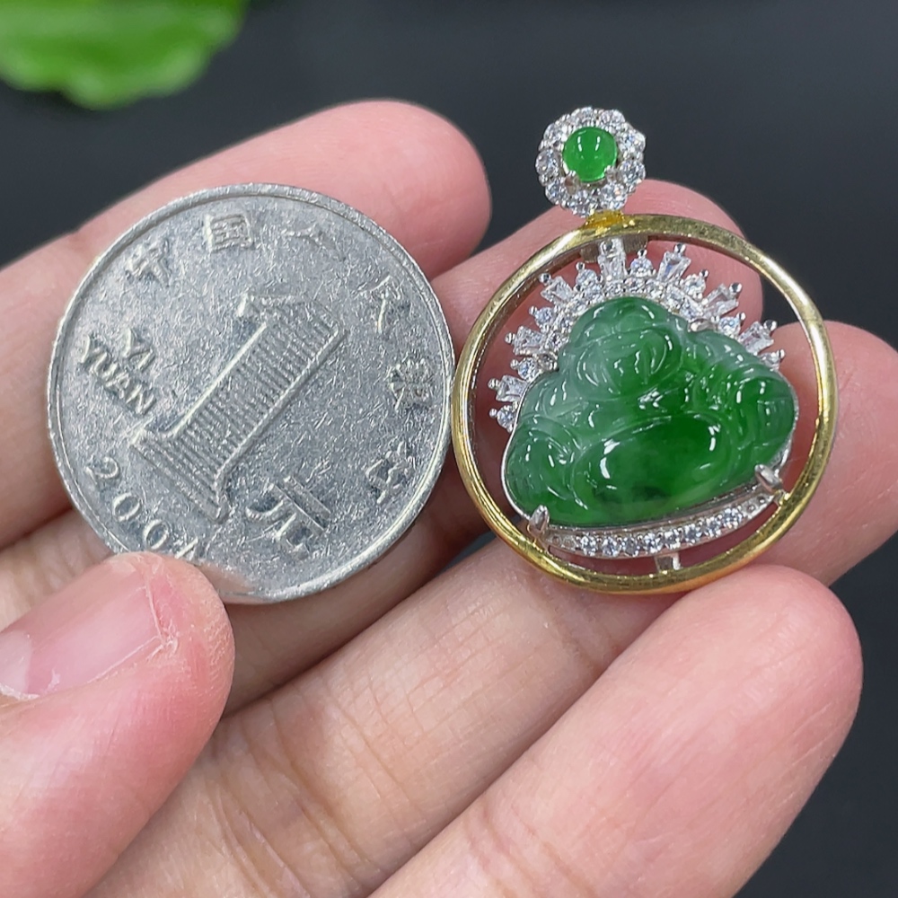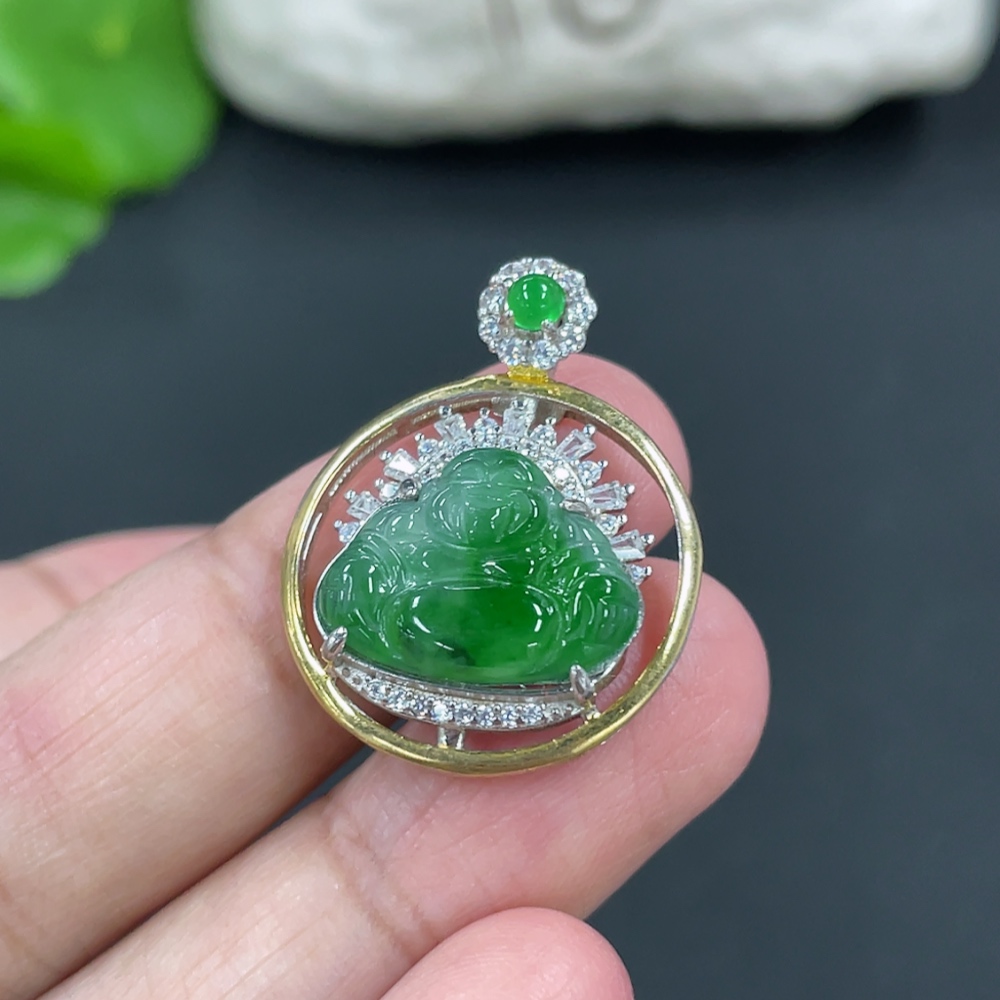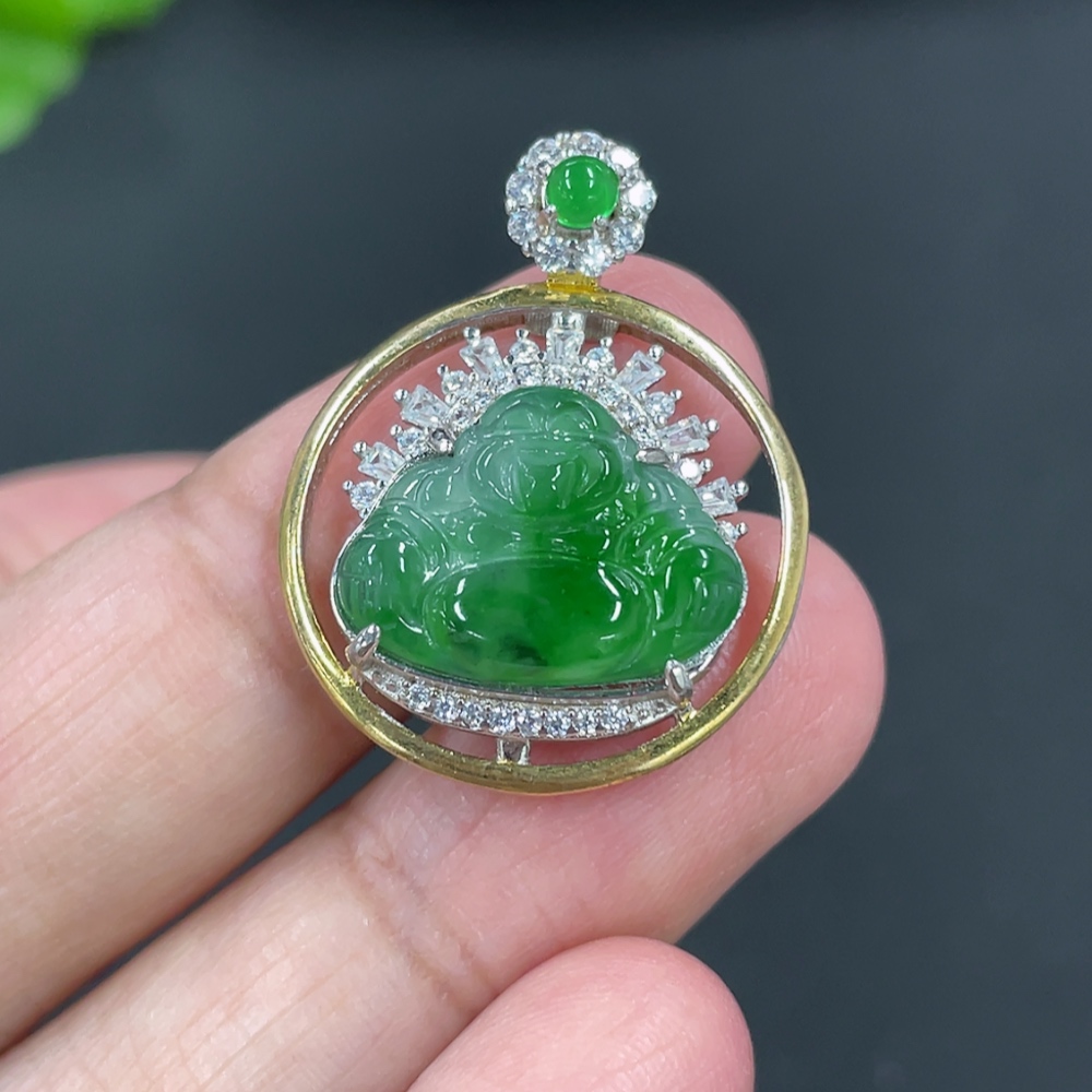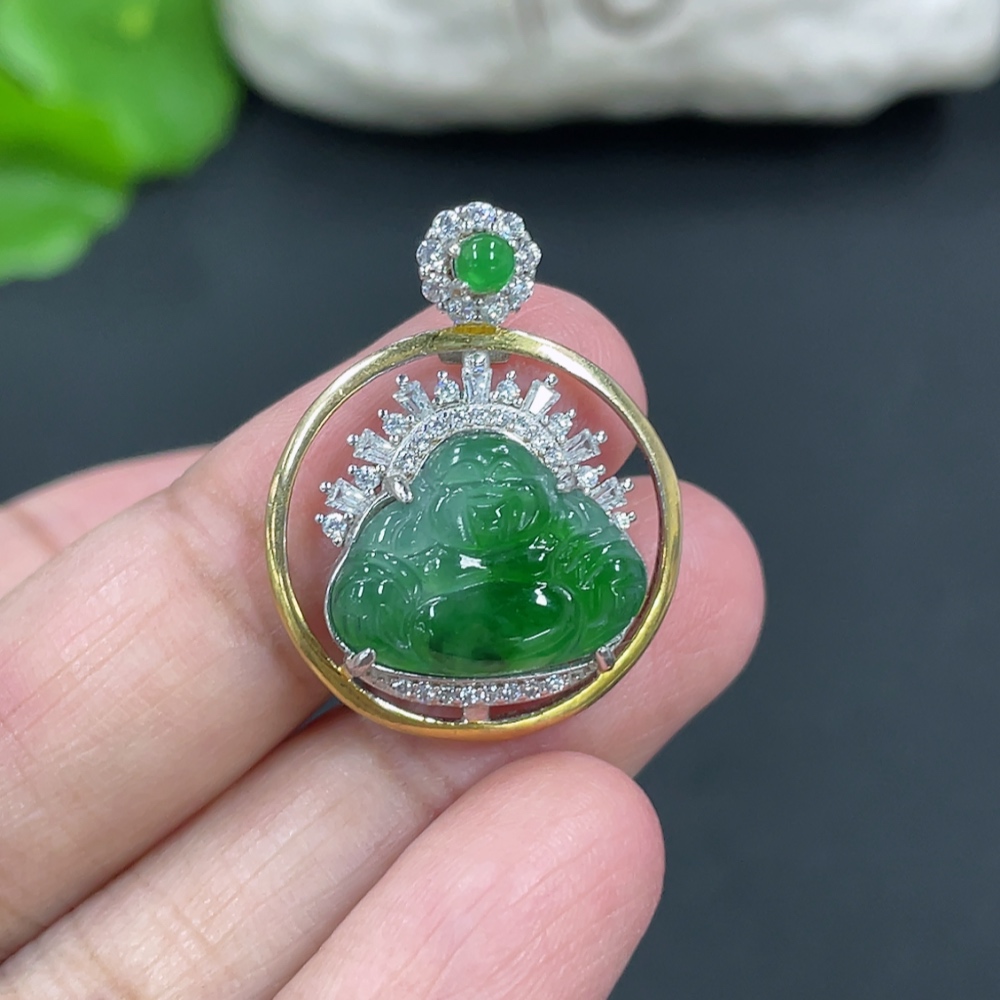 Jadeite Buddha Inlaid Pendant Non-Gold Inlaid Total Weight Approx. 3.12g With Non-Grade A Stones