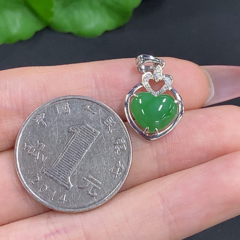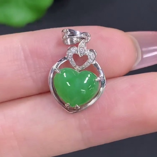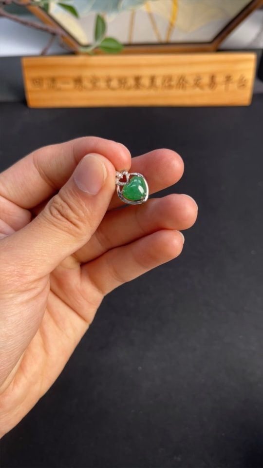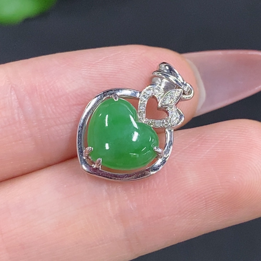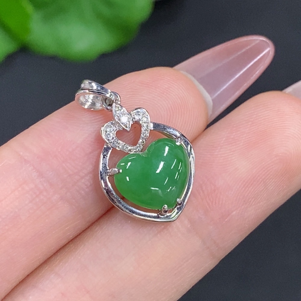 Jadeite Cabochon Pendant with 18K Gold and Diamond Accents, Total Weight Approximately 2g