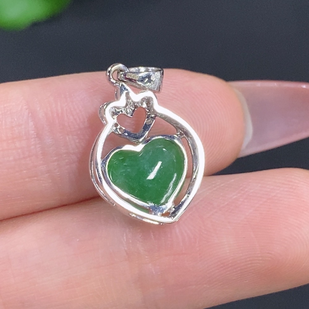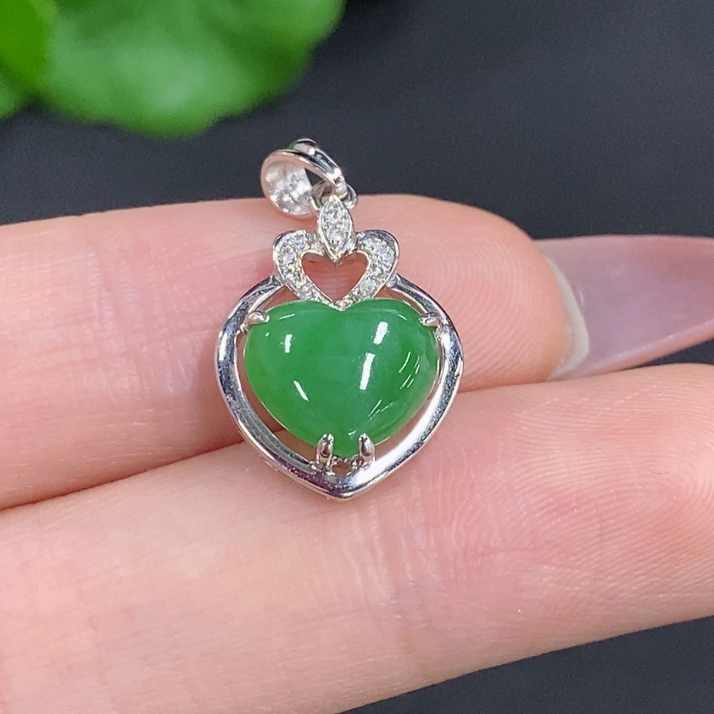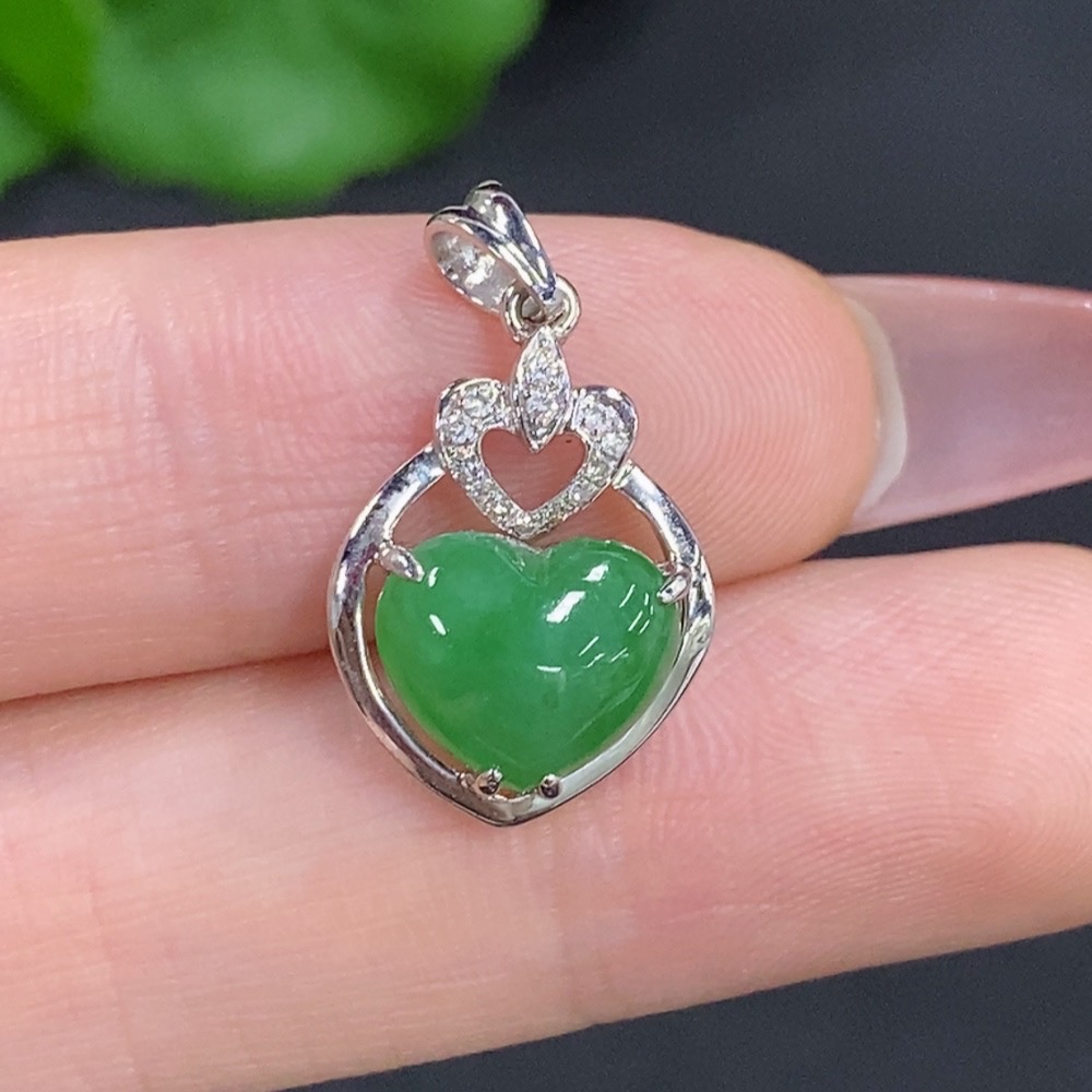 Jadeite Cabochon Pendant with 18K Gold and Diamond Accents, Total Weight Approximately 2g