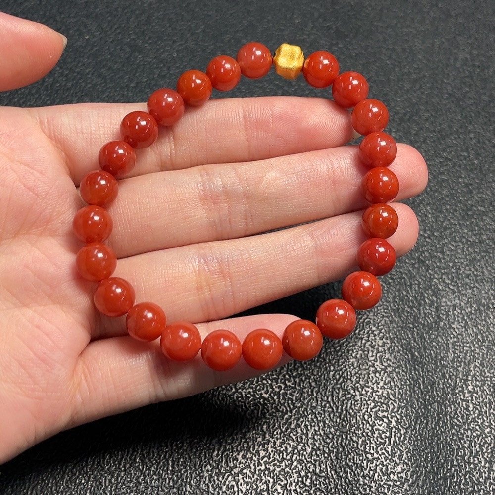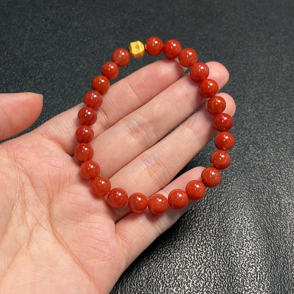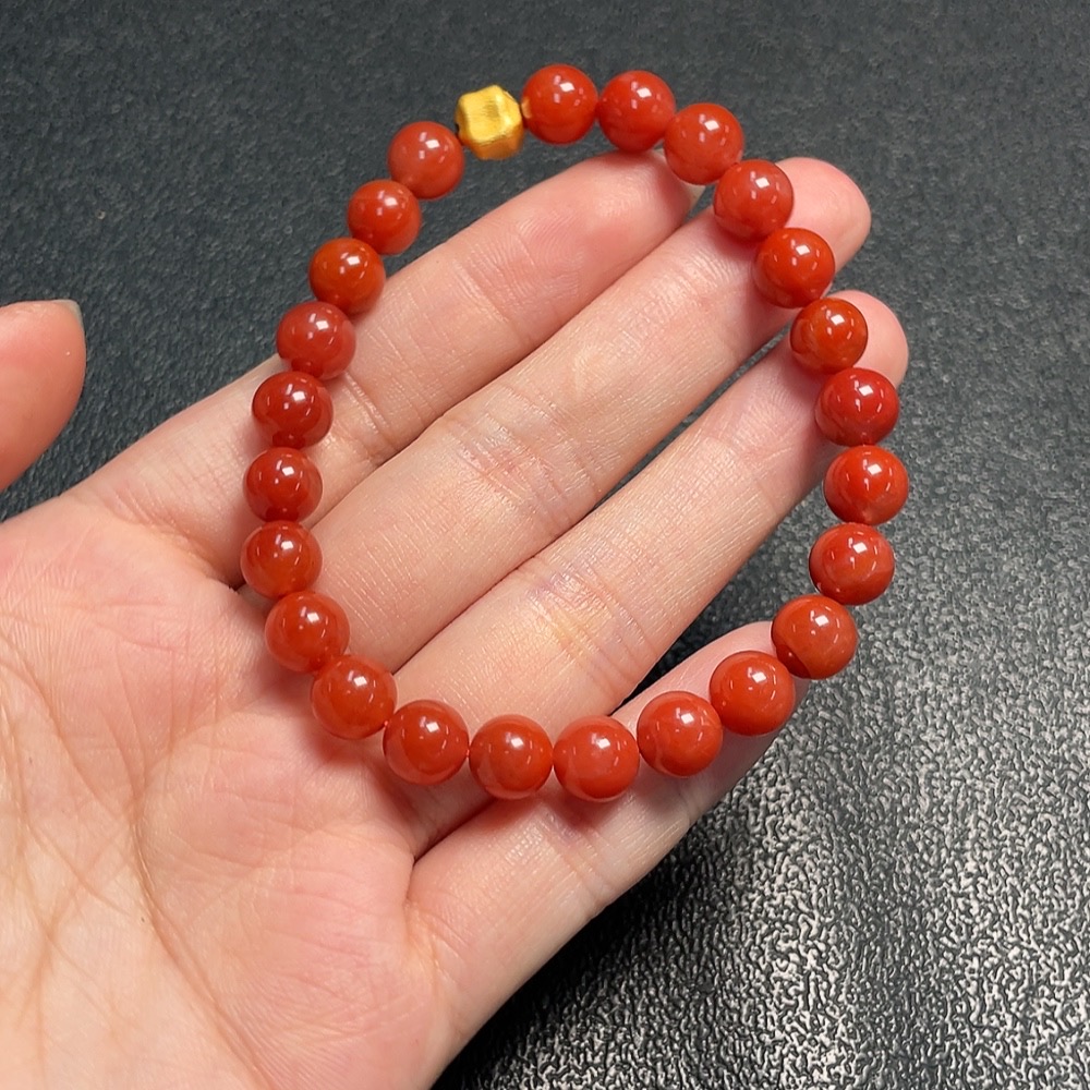 Red Agate Bracelet, Non-Gold, Visible Organic Matter, Total Weight Approx. 15.9g, Size About 7.5mm