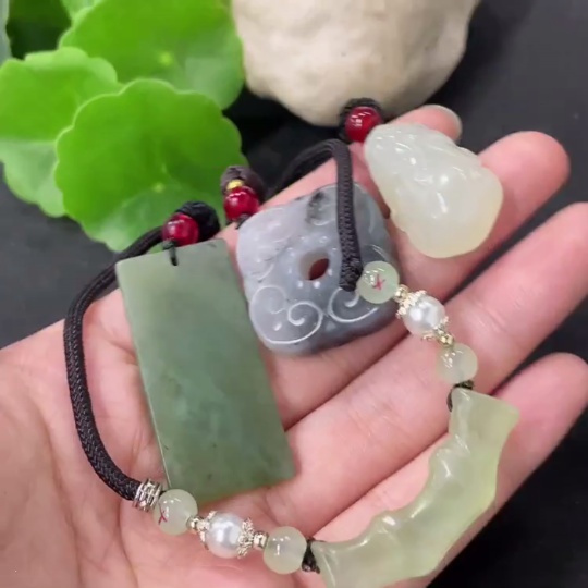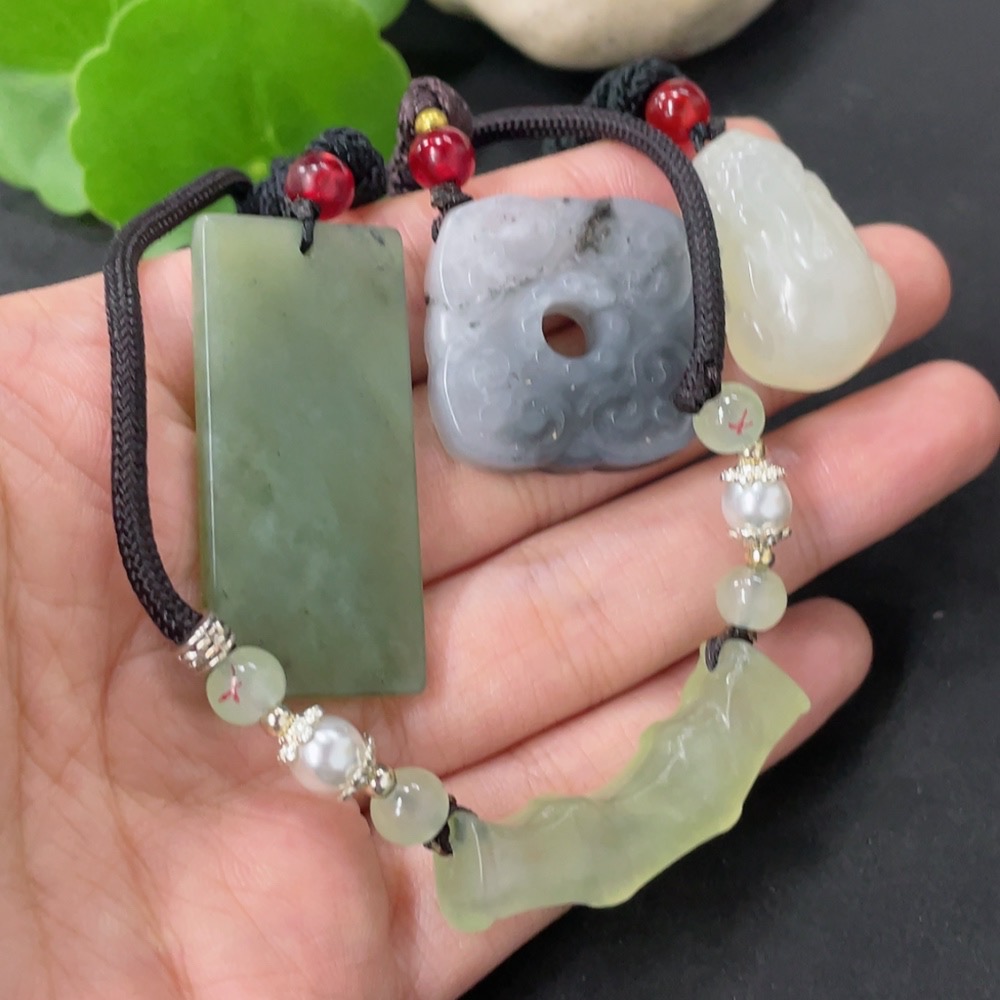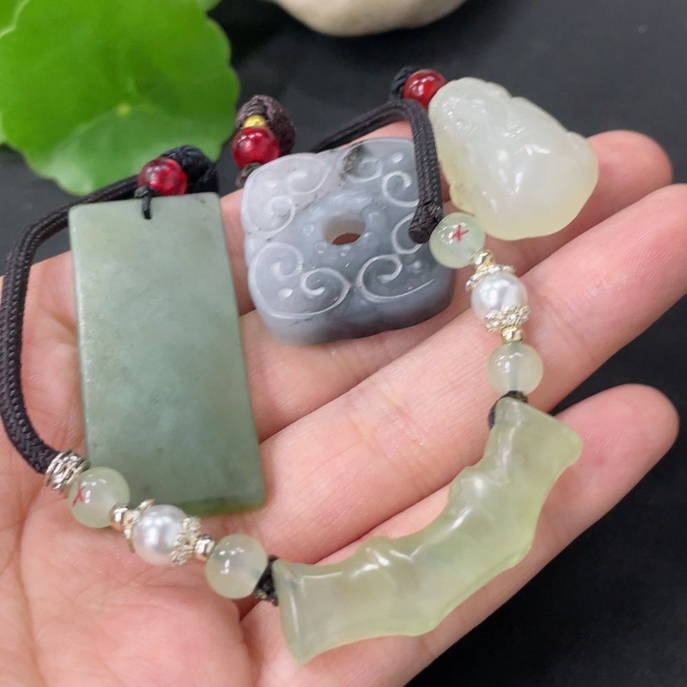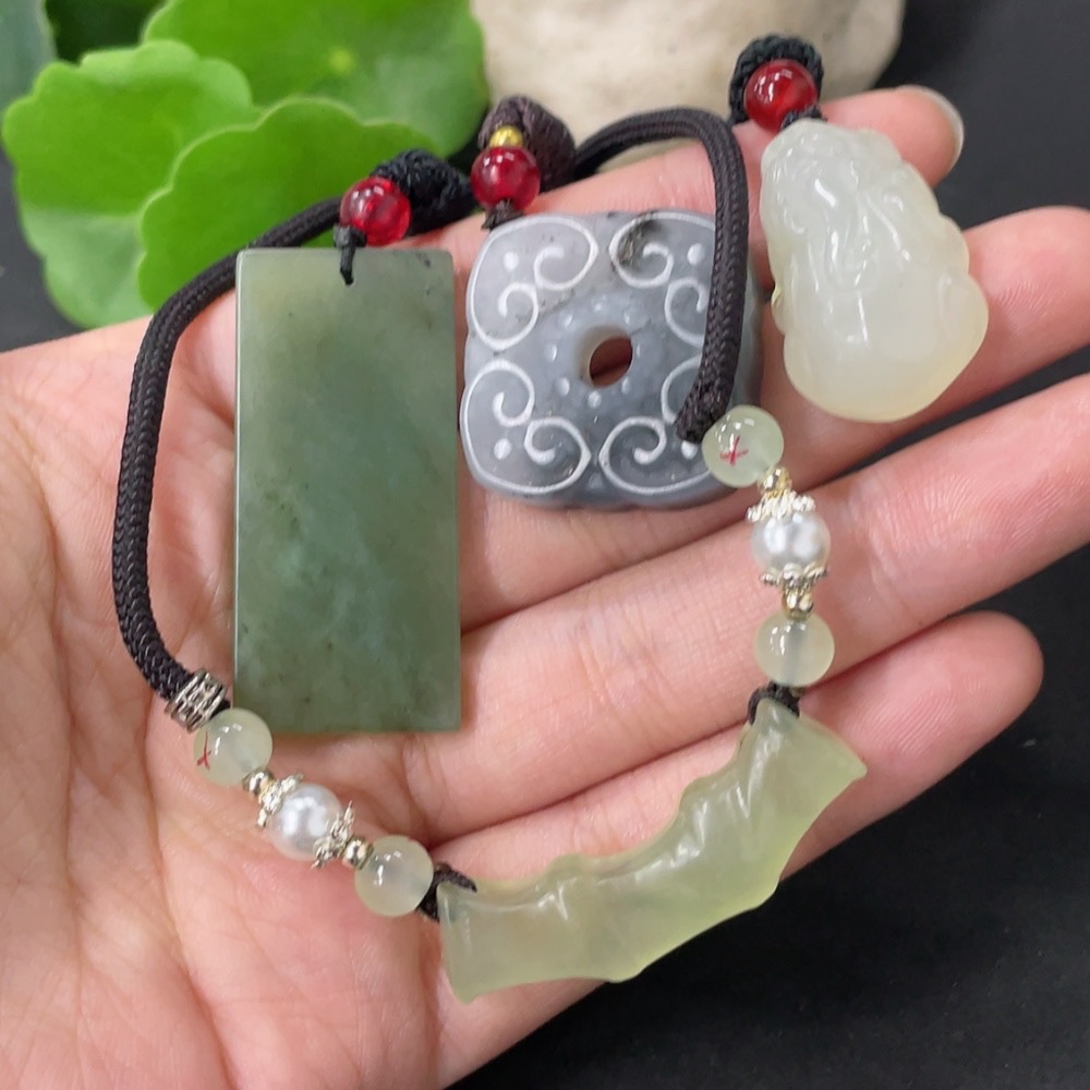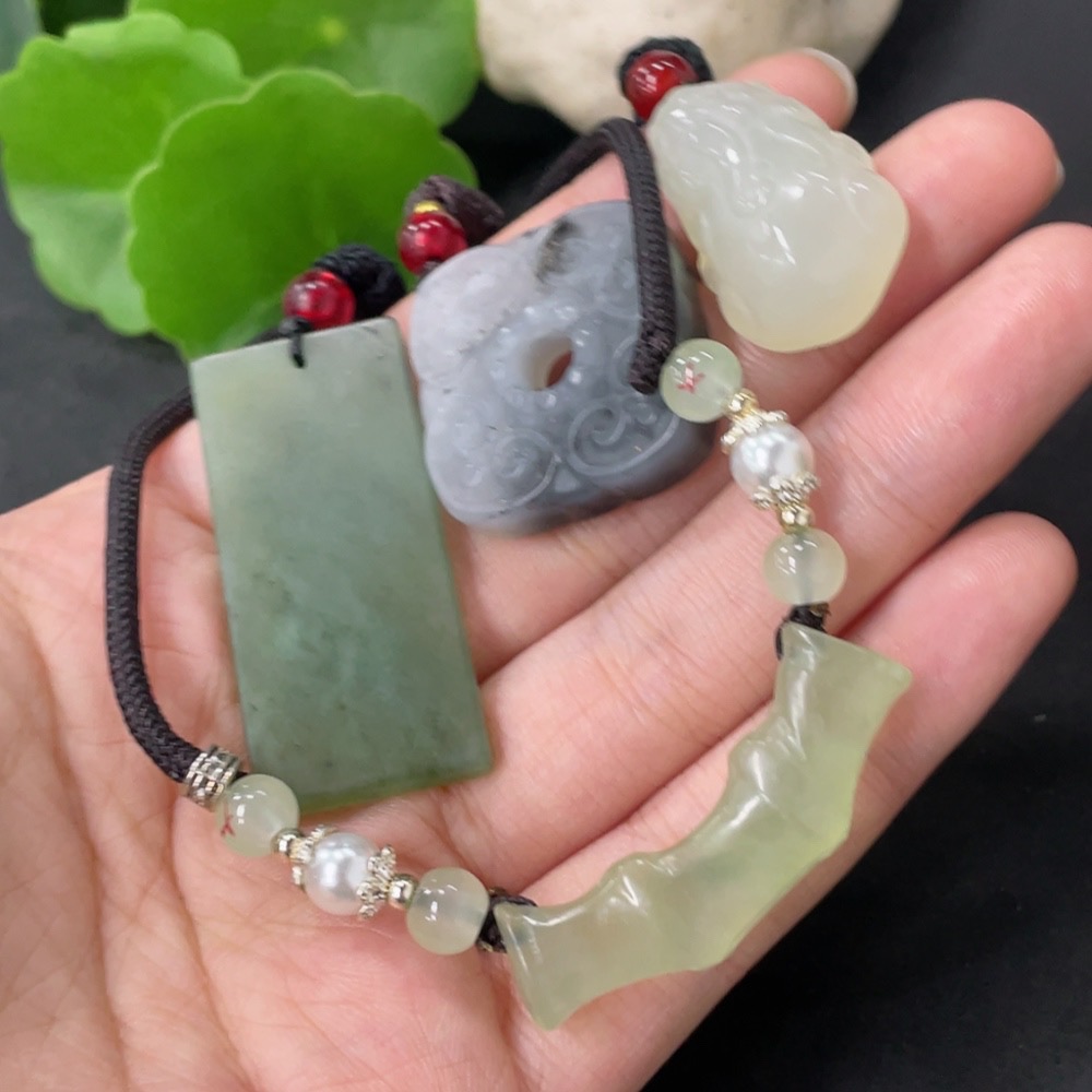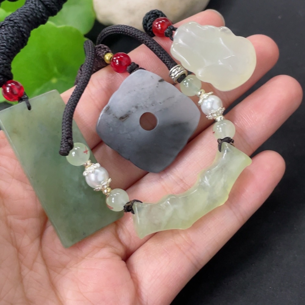 Xiuyan Jade (Serpentine Jade) Pendant with Non-Xiuyan Jade Beads, Total Weight Approx. 37.9g (Including Cord)