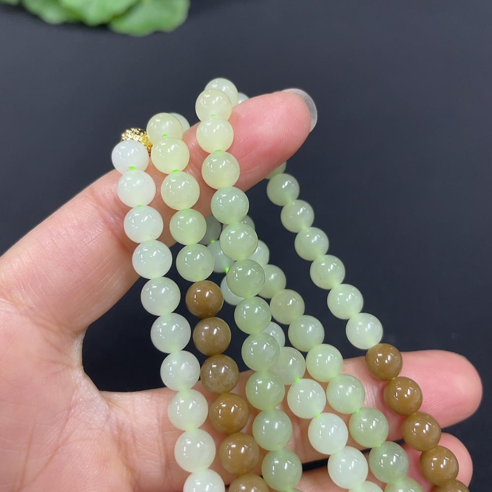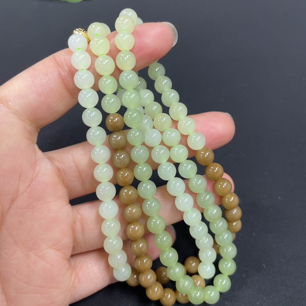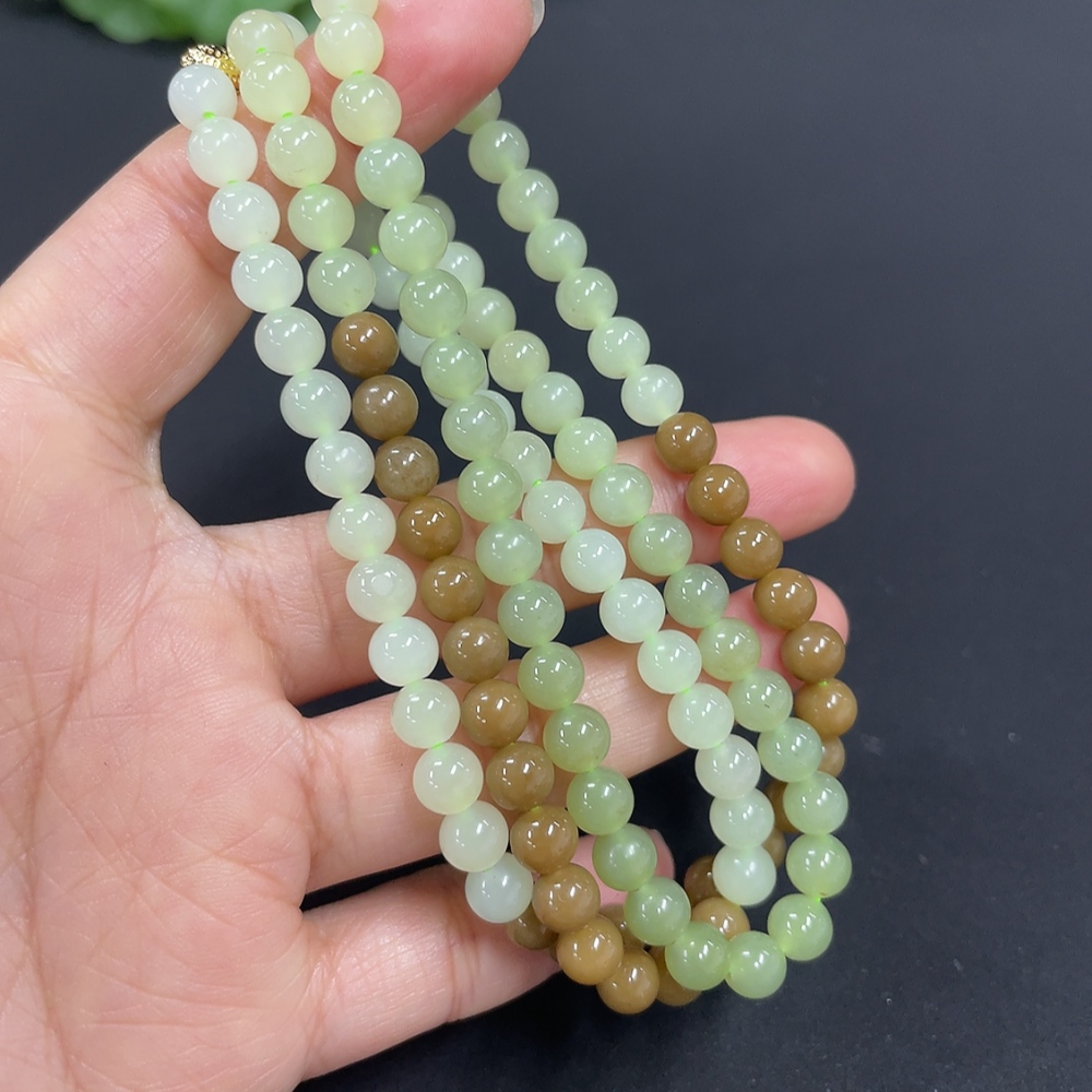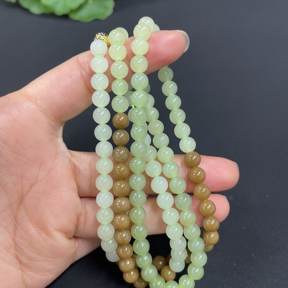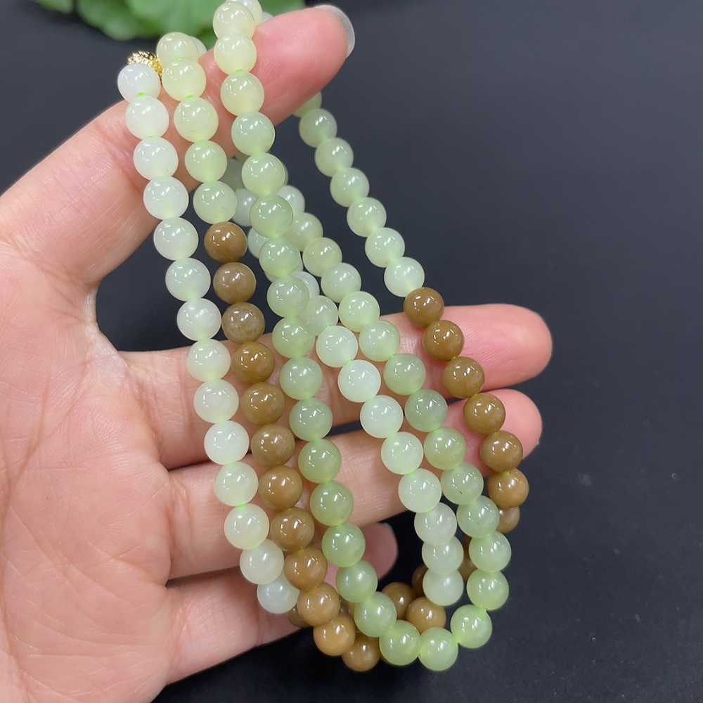 Hetian Jade Bead Necklace, Approx. 5.8mm, Non-Gold Inlaid, Total Weight Approx. 37.2g