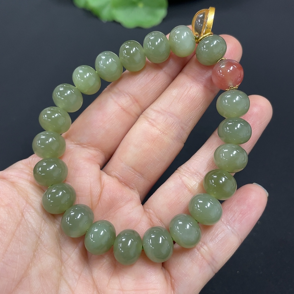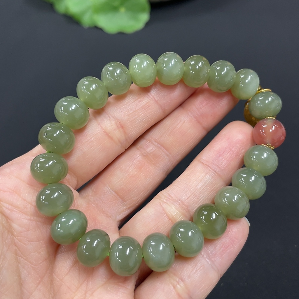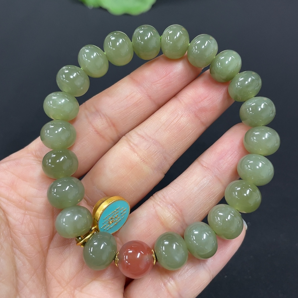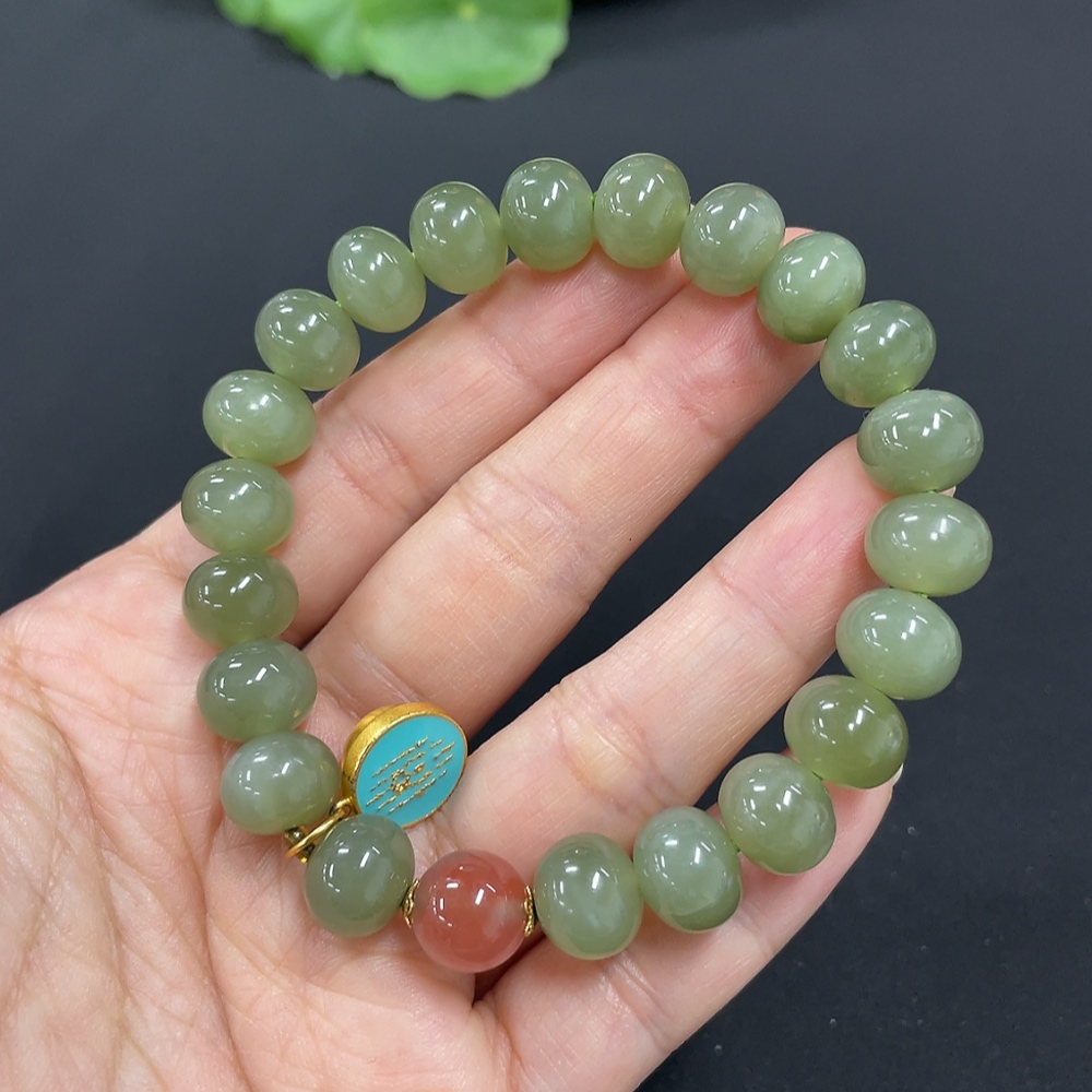 Hetian Jade Bracelet, approx. 9.9mm, non-gold inlaid, total weight approx. 31.5g, beads not Hetian Jade