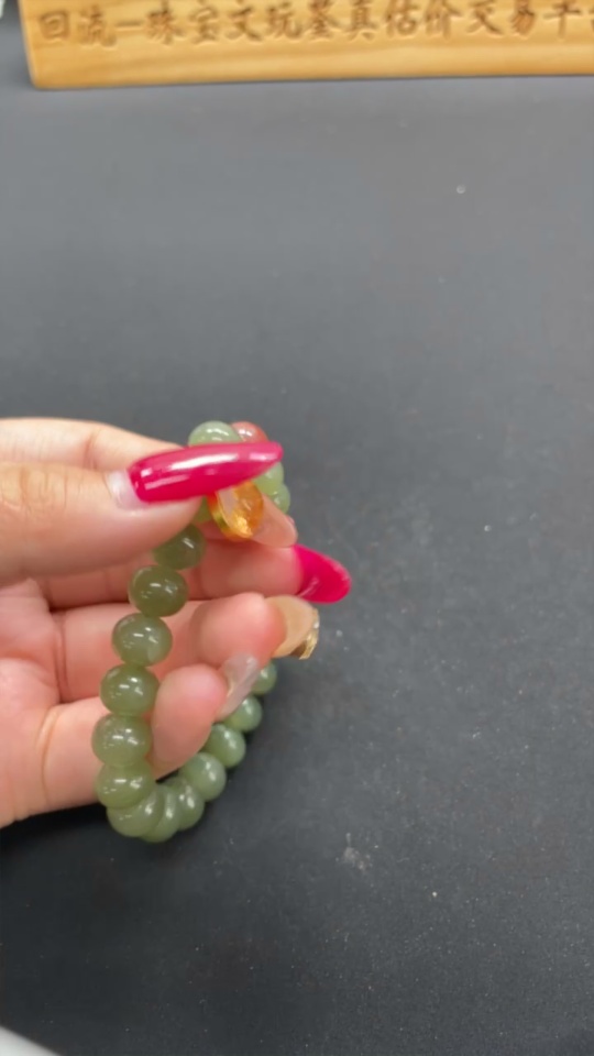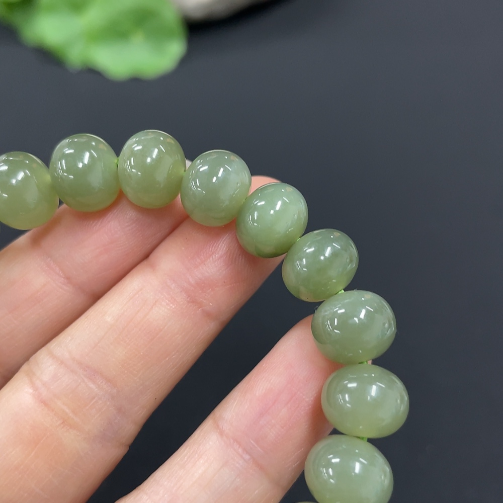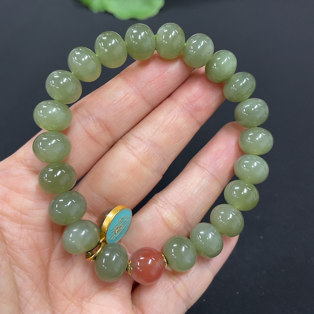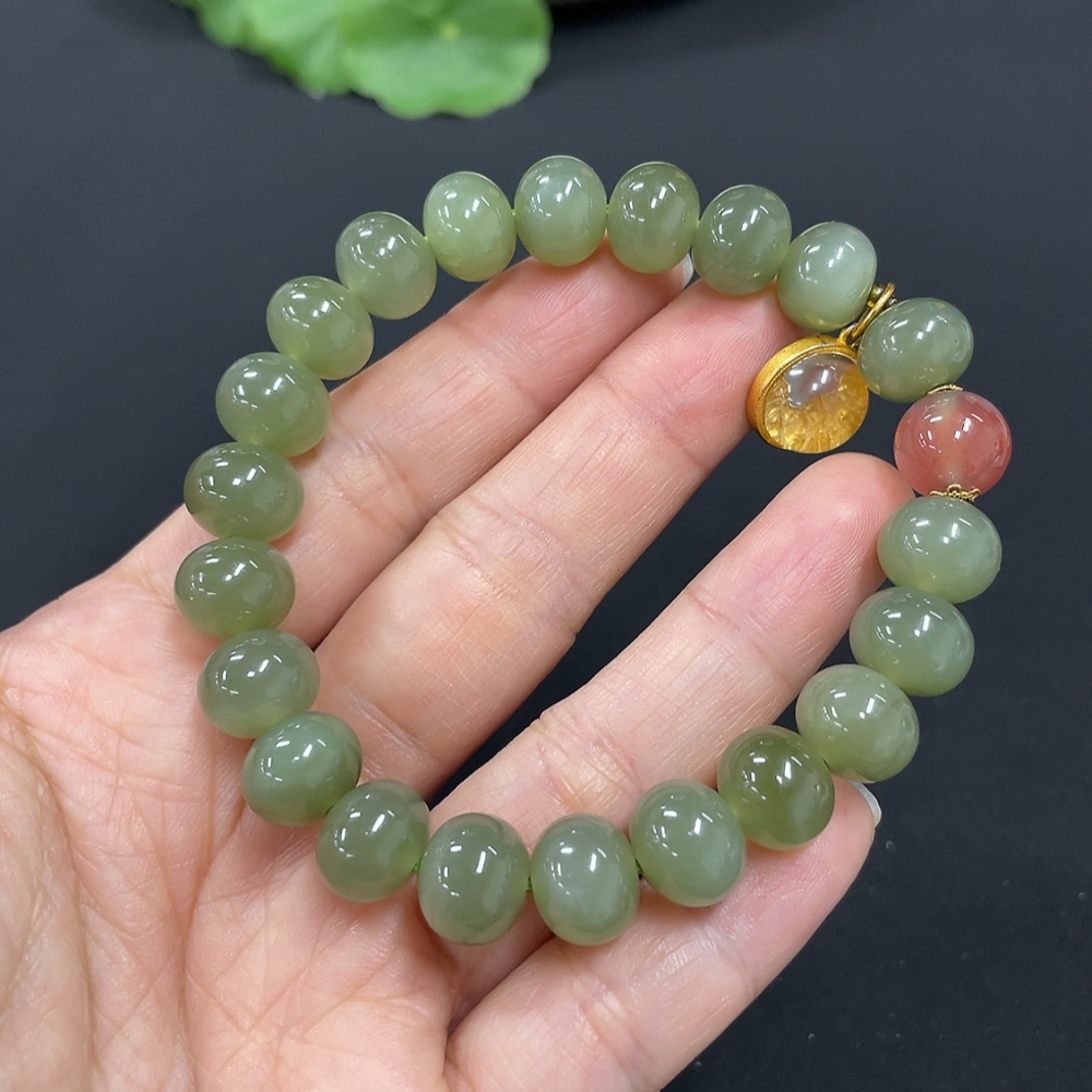 Hetian Jade Bracelet, approx. 9.9mm, non-gold inlaid, total weight approx. 31.5g, beads not Hetian Jade