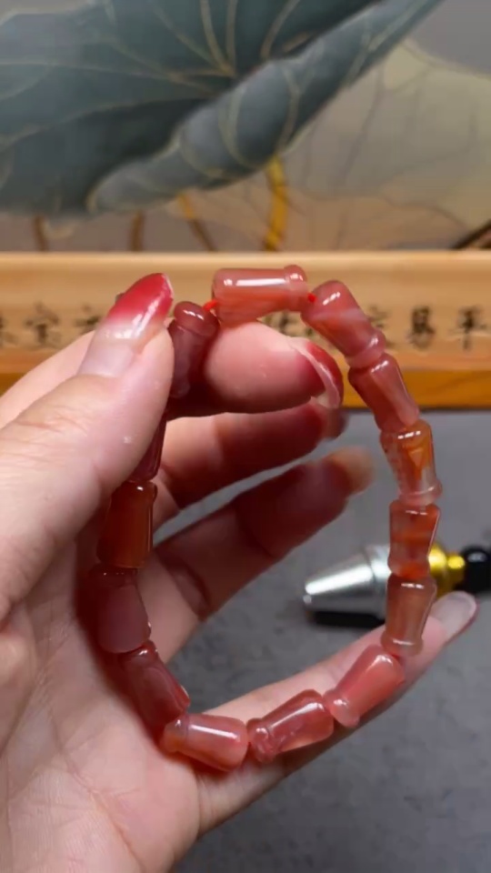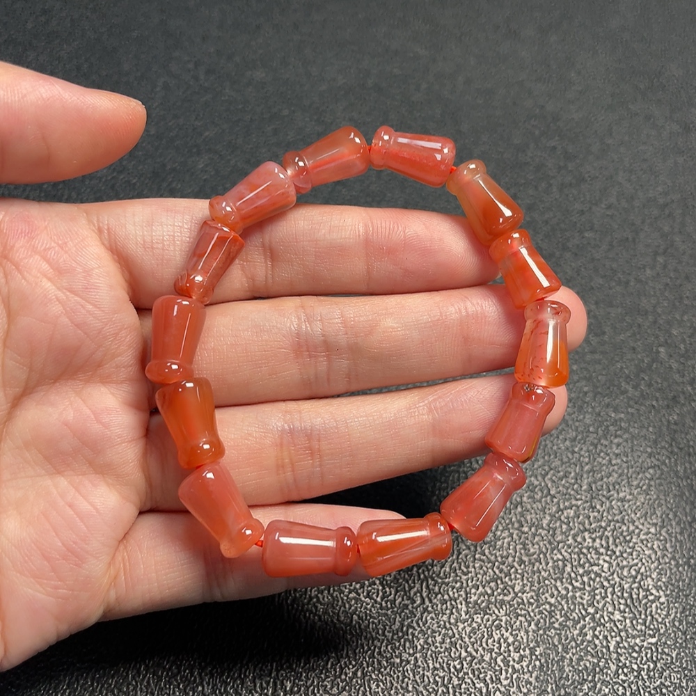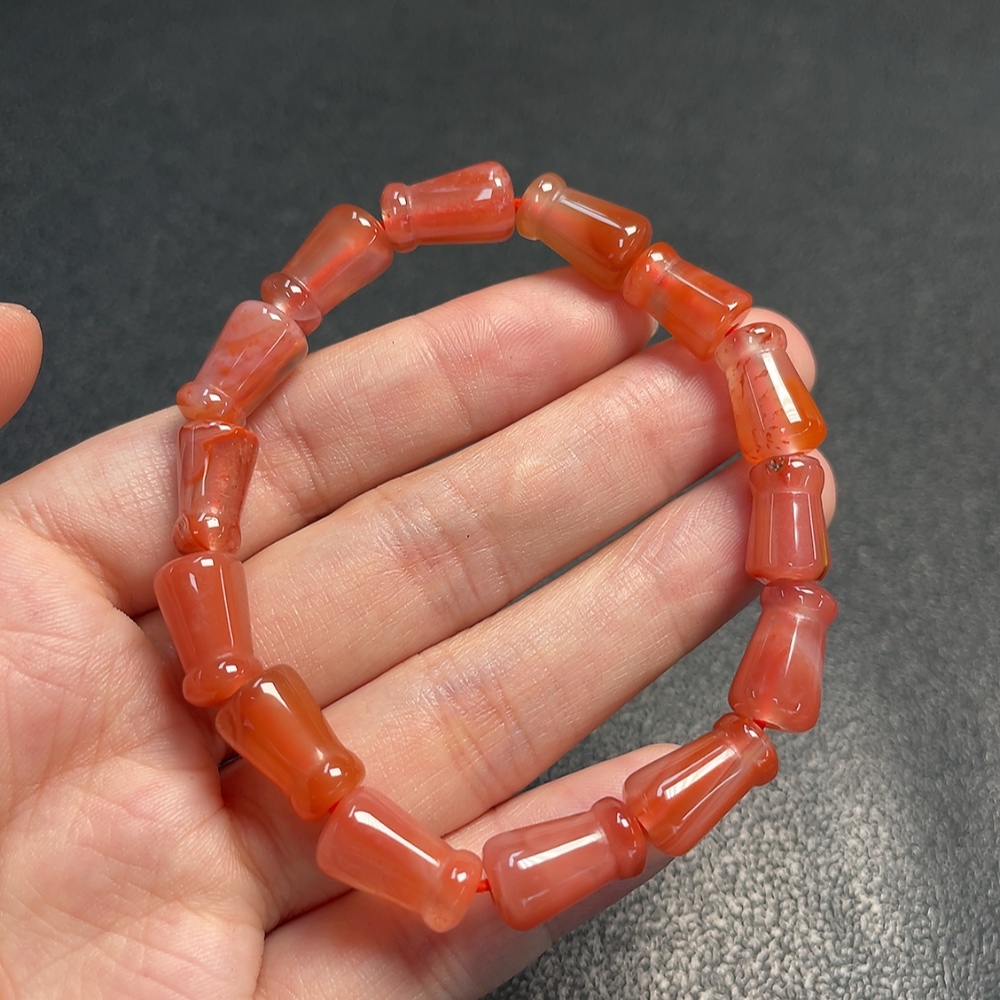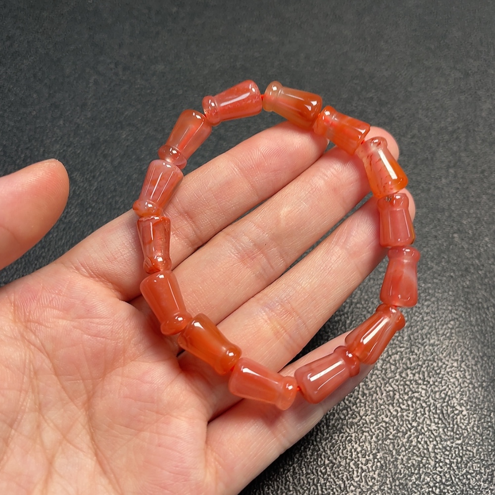 South Red Agate Bracelet with Visible Organic Matter, Total Weight Approx. 17.67g, Size About 8mm