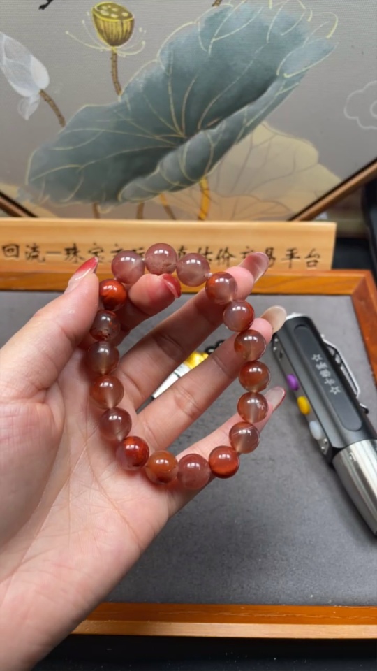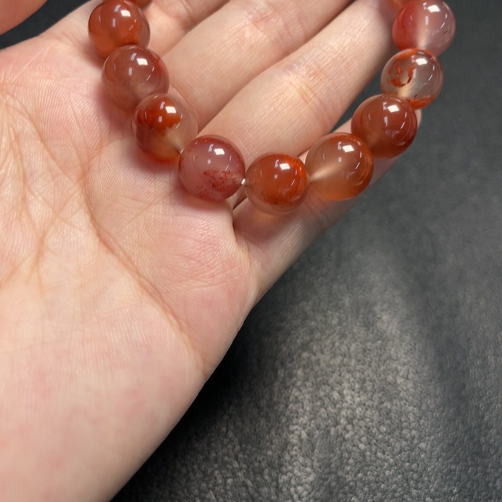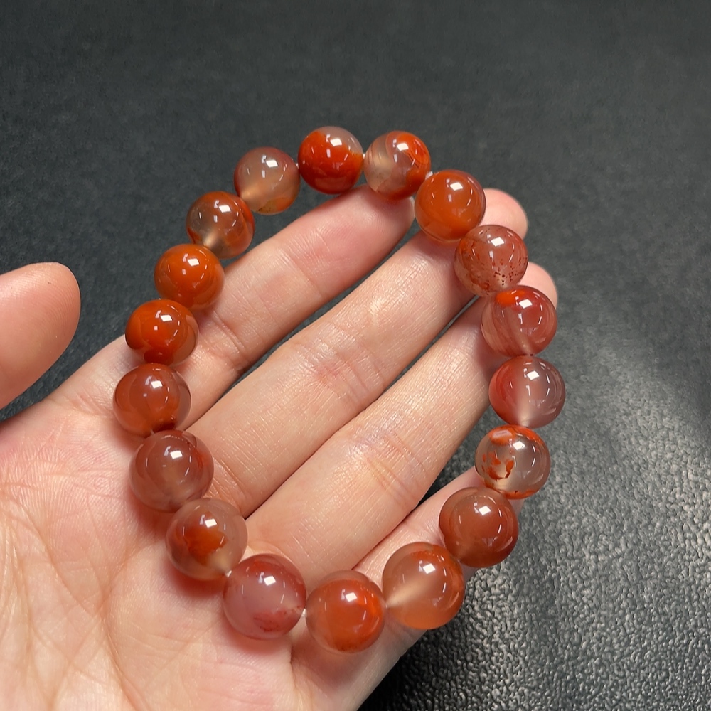Red Agate Bracelet with Visible Organic Matter, Total Weight Approx. 36.56g, Size About 11.6mm