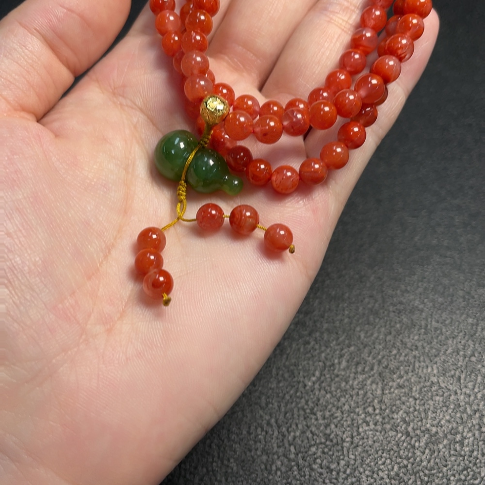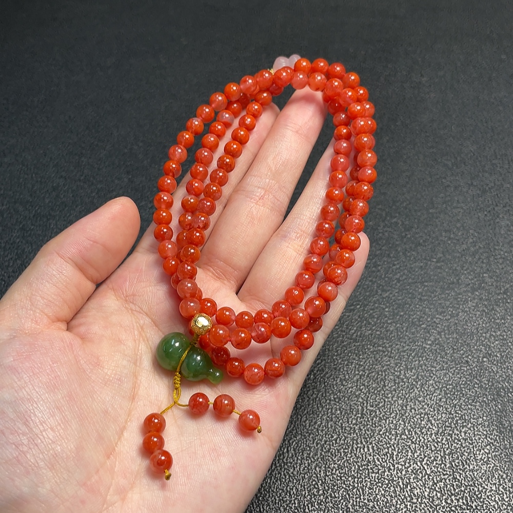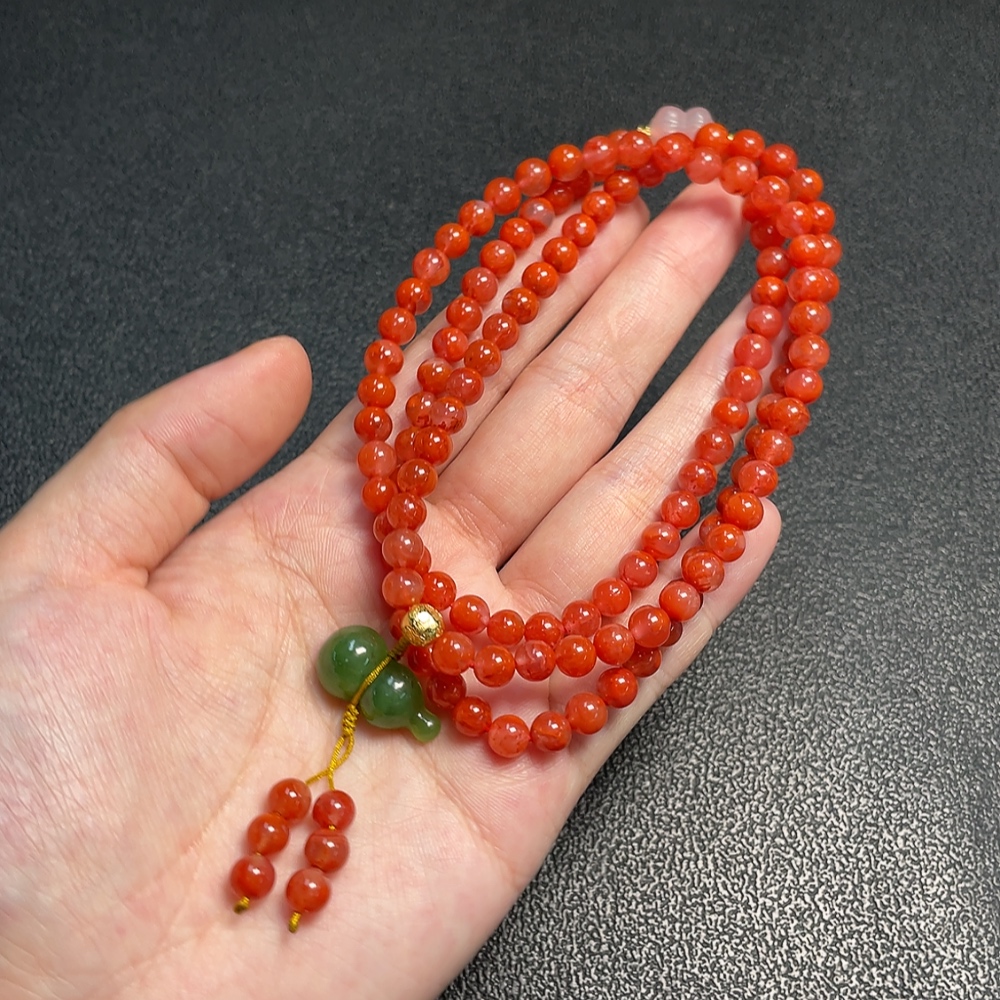 Red Agate Bead Bracelet with Hetian Jade, Non-Gold, Visible Organic Matter, Total Weight Approx. 36.67g, Size About 5.8mm