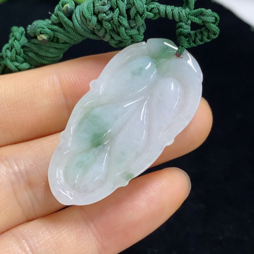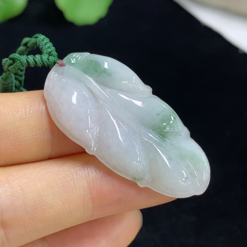 Jadeite Leaf Pendant Total Weight Approx. 7.48g (Including Cord Weight)
