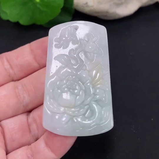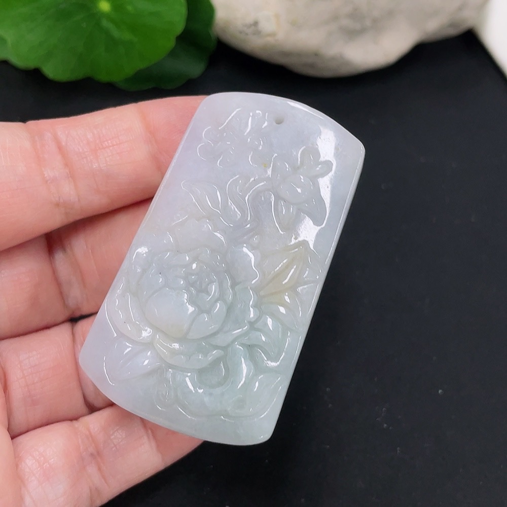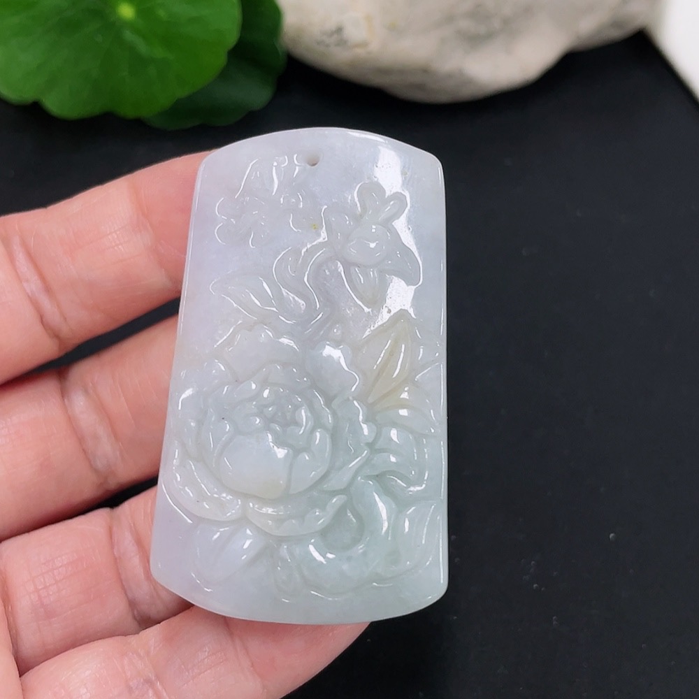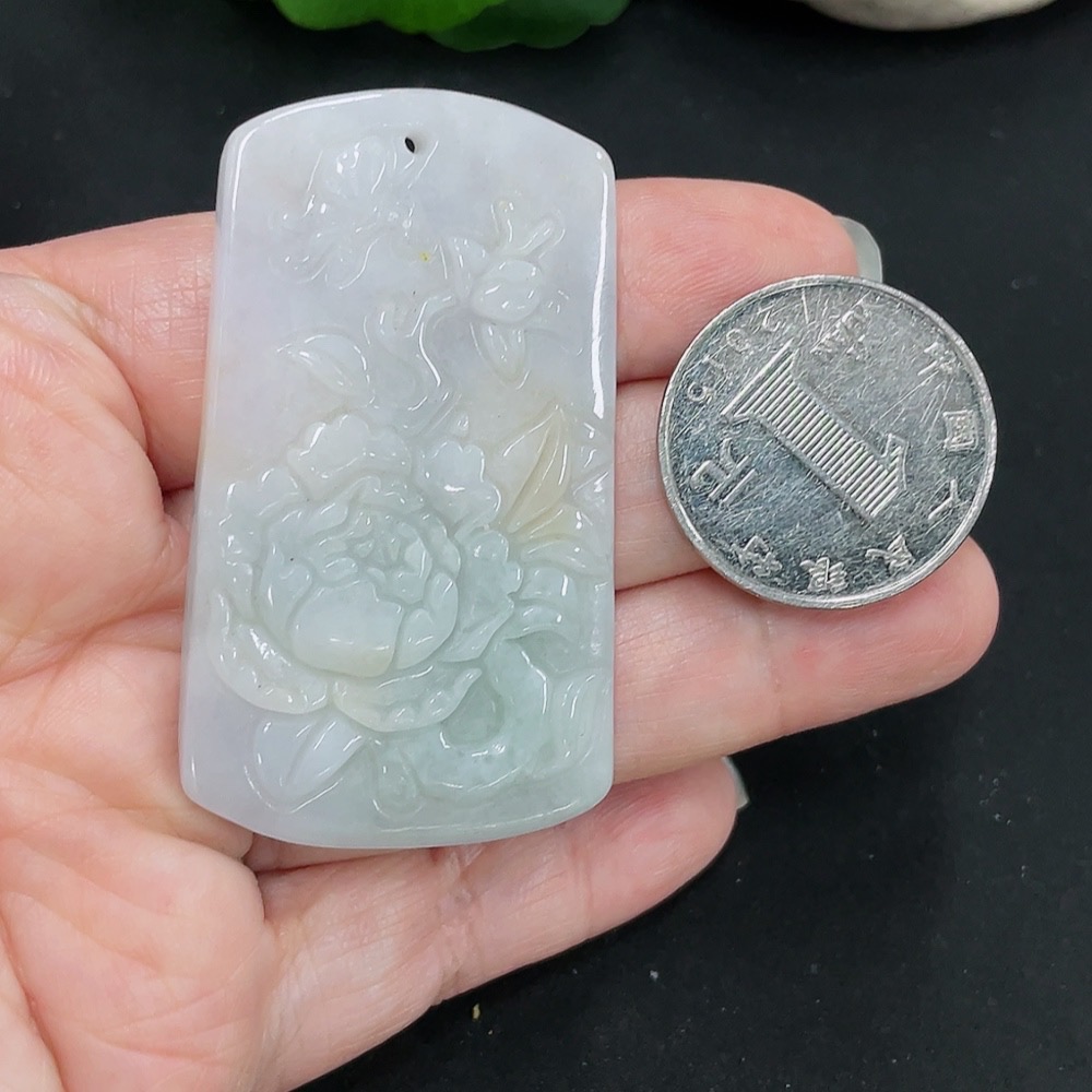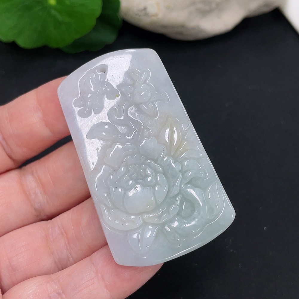 Jadeite Flower Plaque Pendant, Total Weight Approx. 23.6g