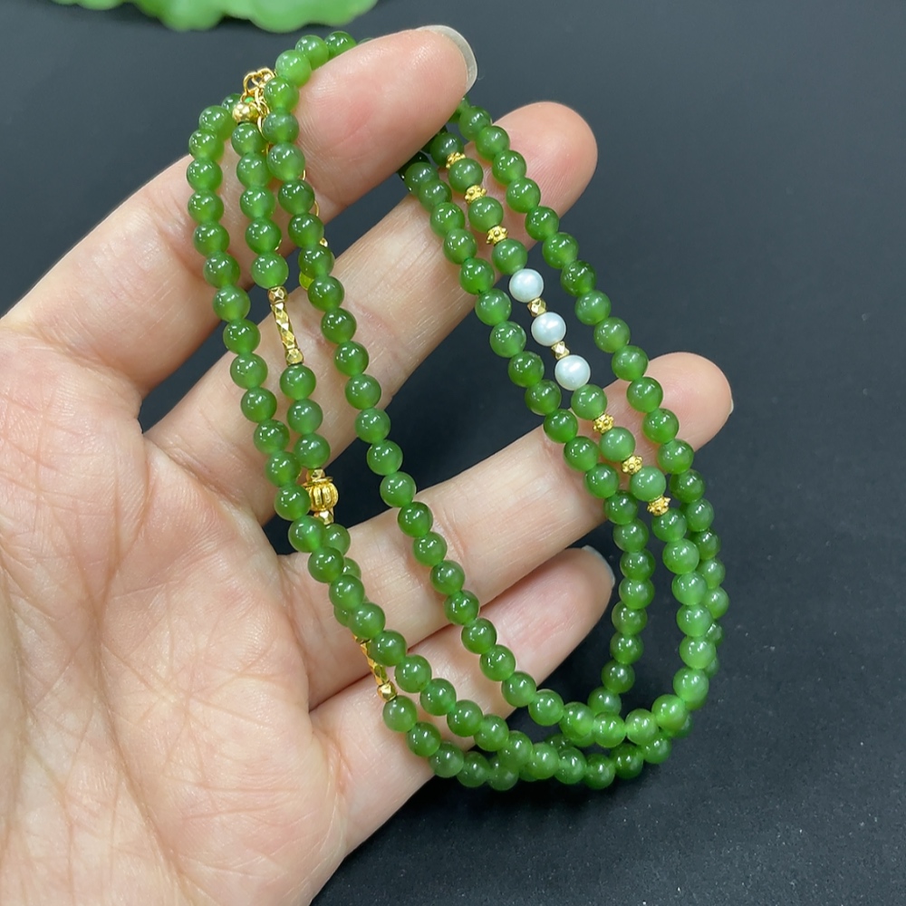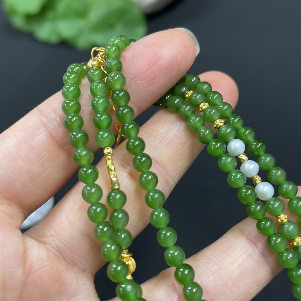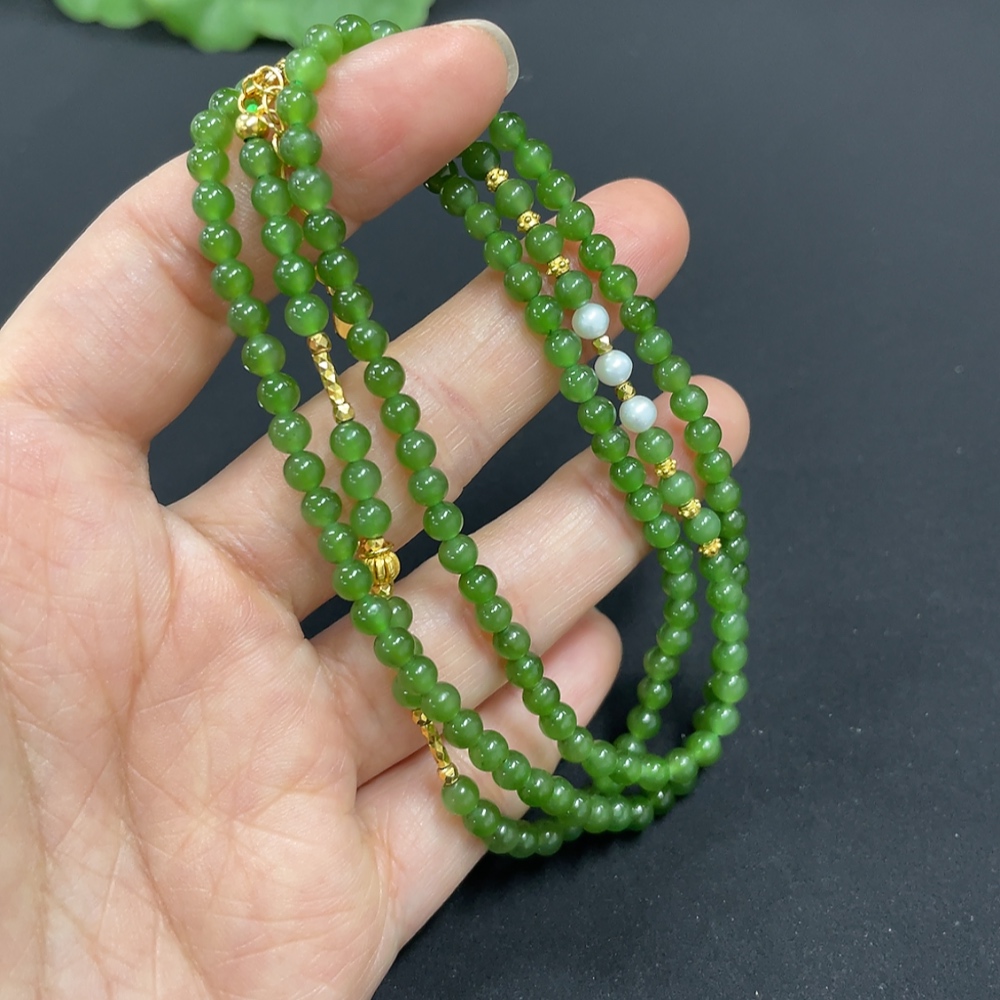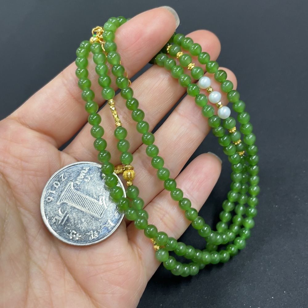 Hetian Jade Jasper Bead Necklace Approx. 3.8mm Non-Gold-Inlaid Total Weight Approx. 15.2g