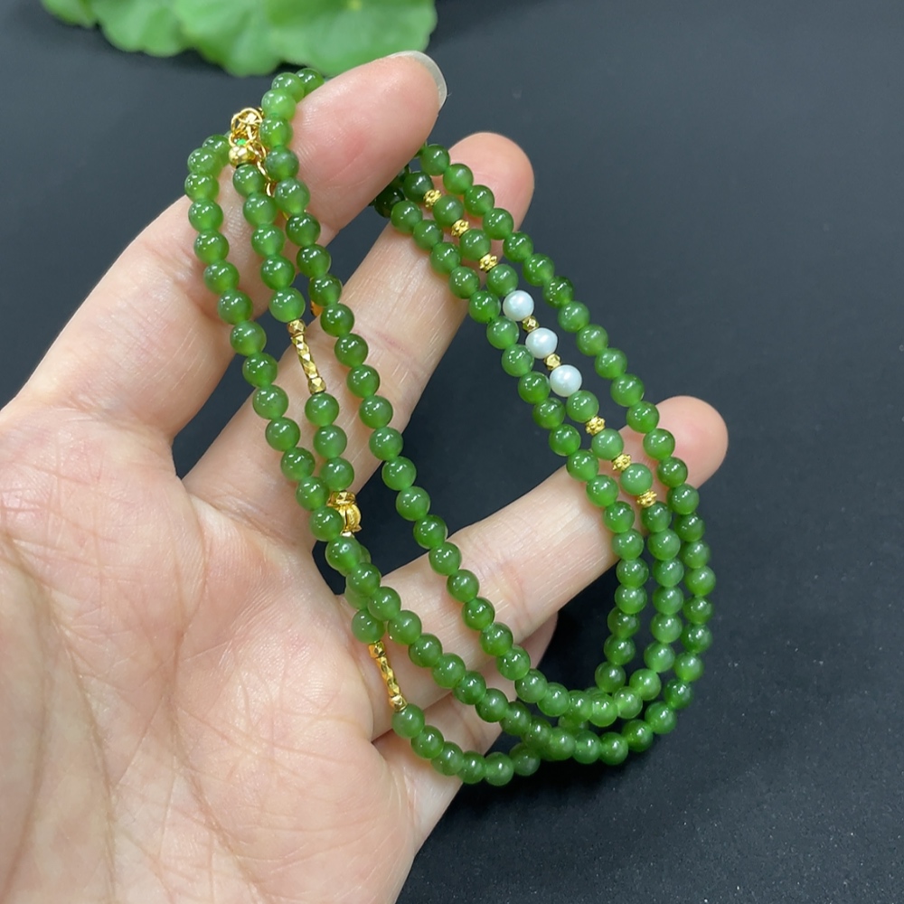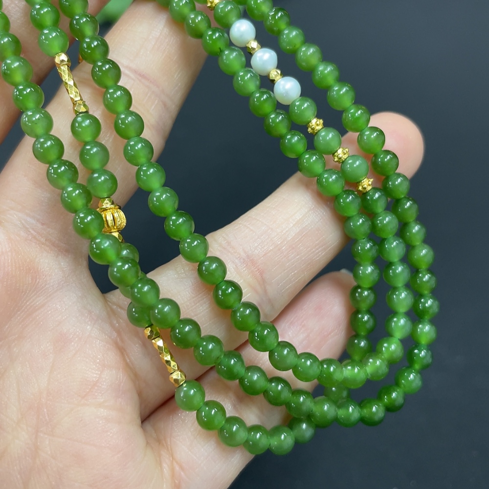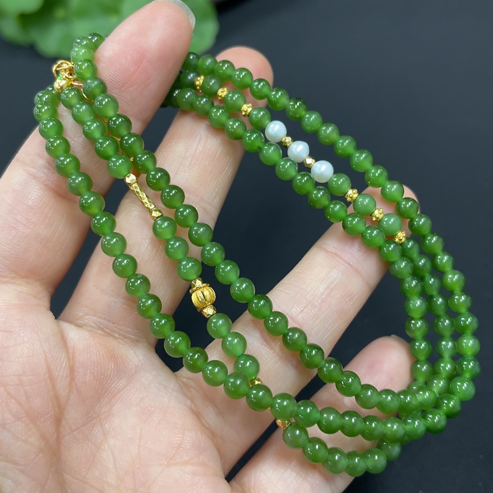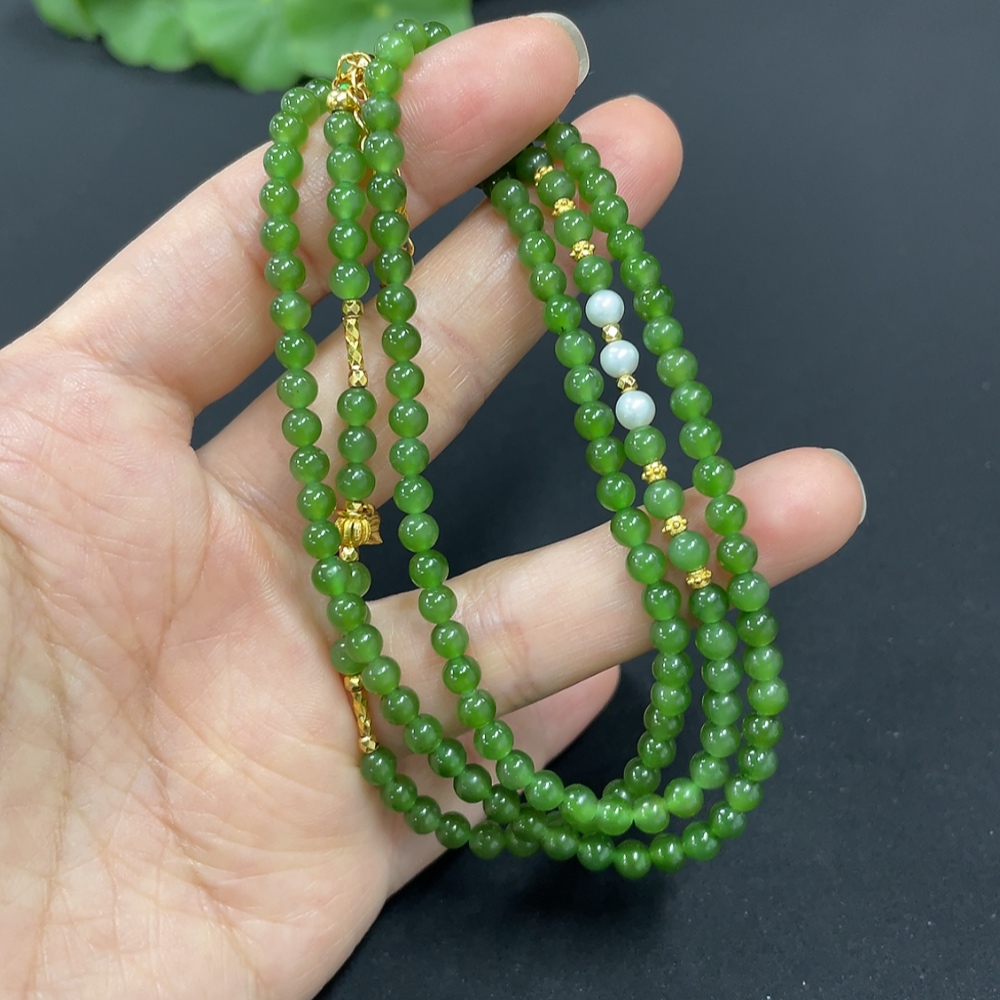 Hetian Jade Jasper Bead Necklace Approx. 3.8mm Non-Gold-Inlaid Total Weight Approx. 15.2g