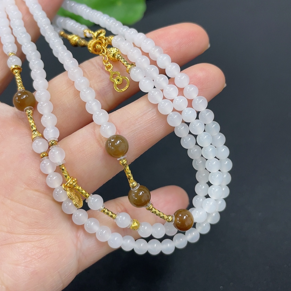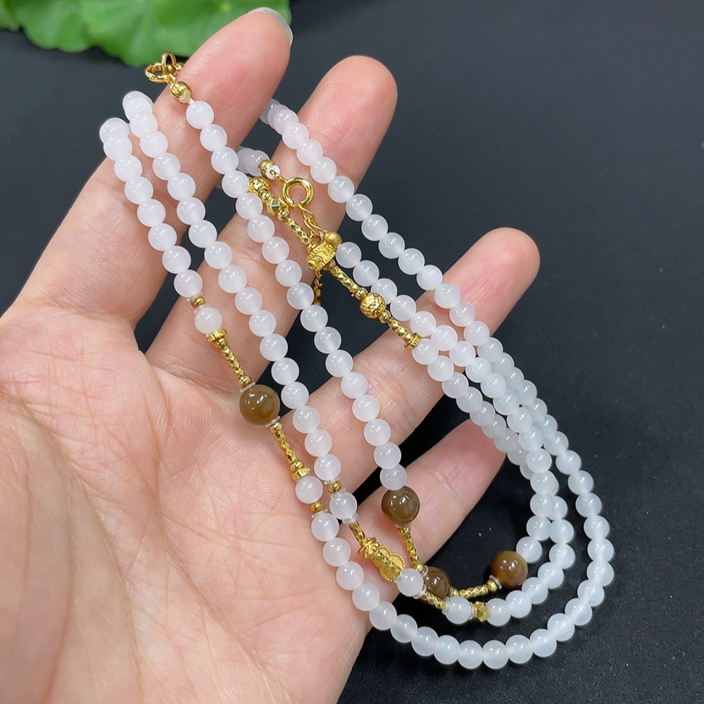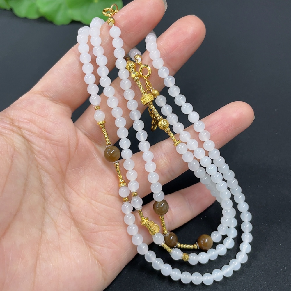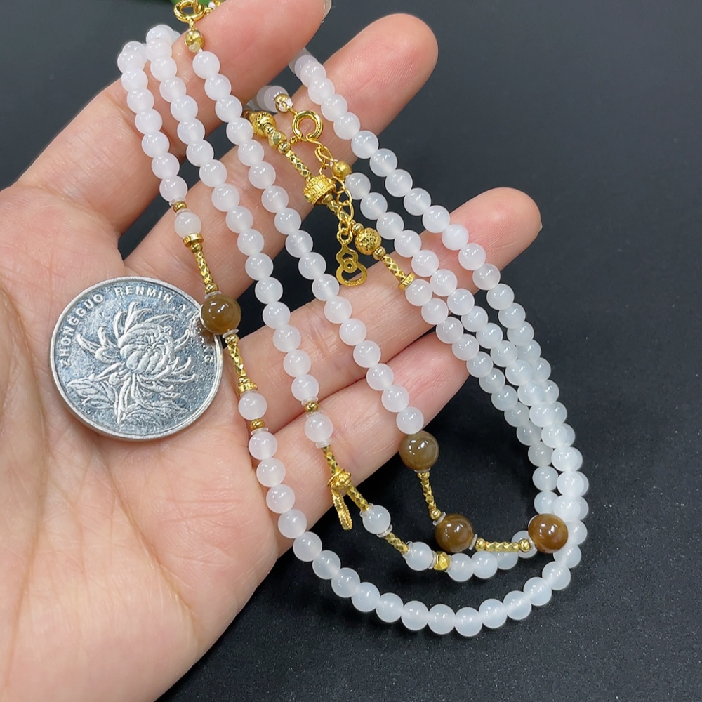 Hetian Jade Bead Necklace, Approx. 3.8mm, Non-Gold Inlaid, Total Weight Approx. 19.1g