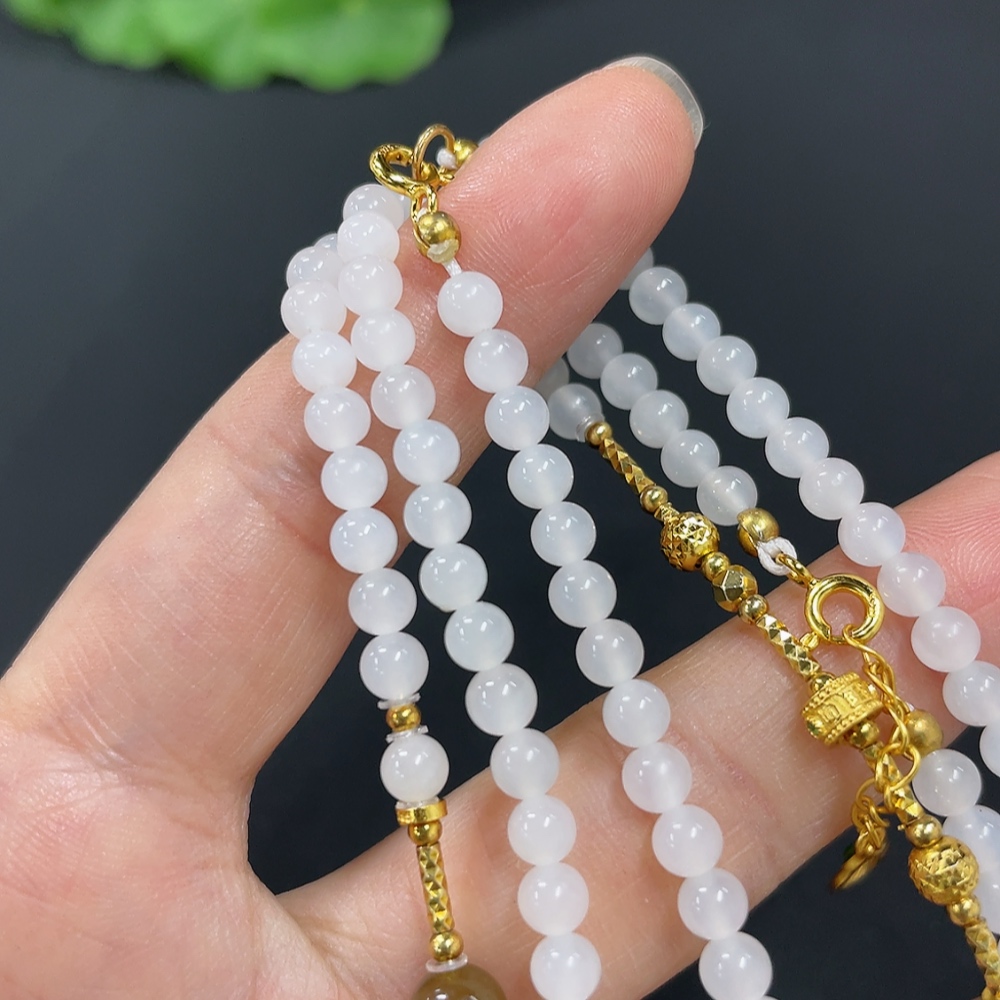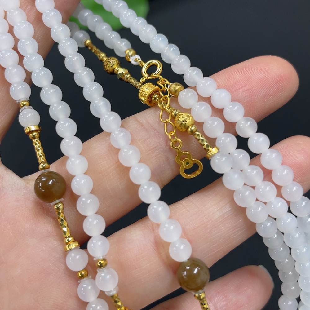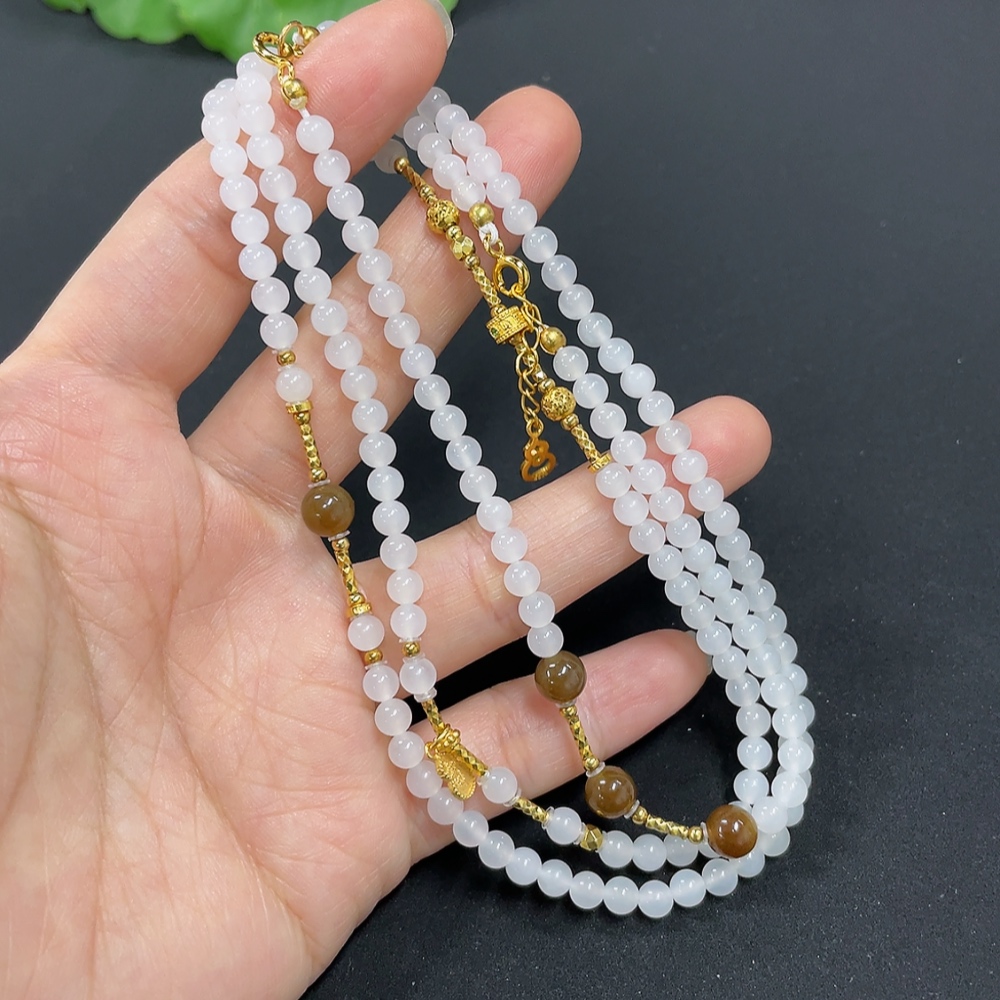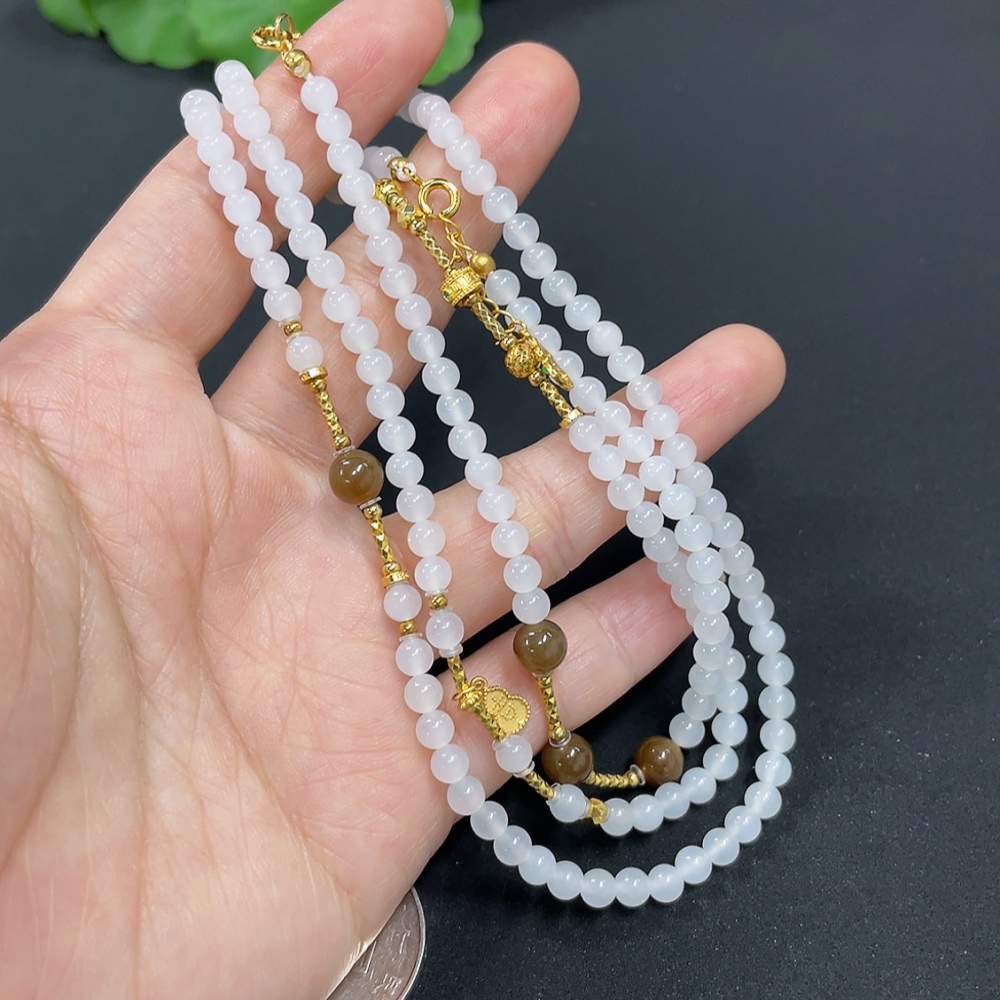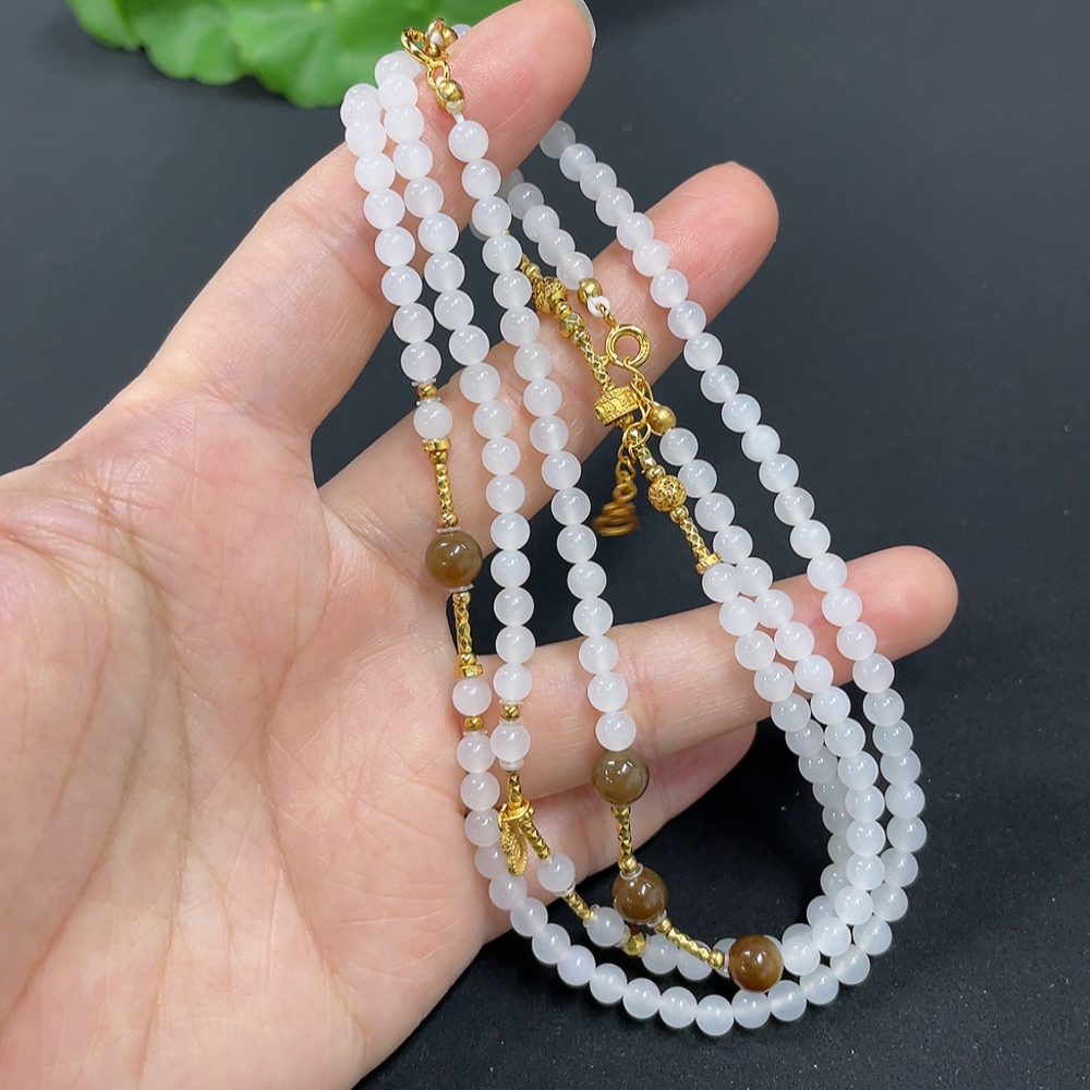 Hetian Jade Bead Necklace, Approx. 3.8mm, Non-Gold Inlaid, Total Weight Approx. 19.1g