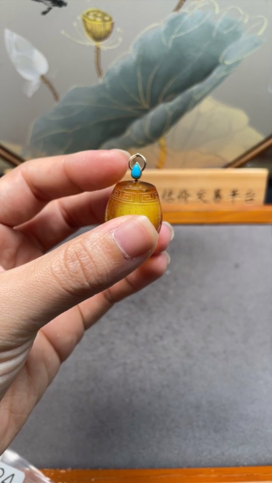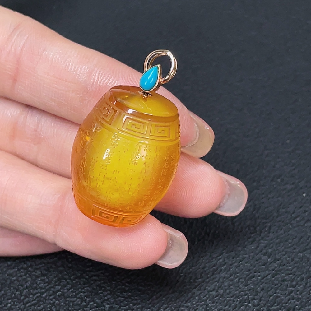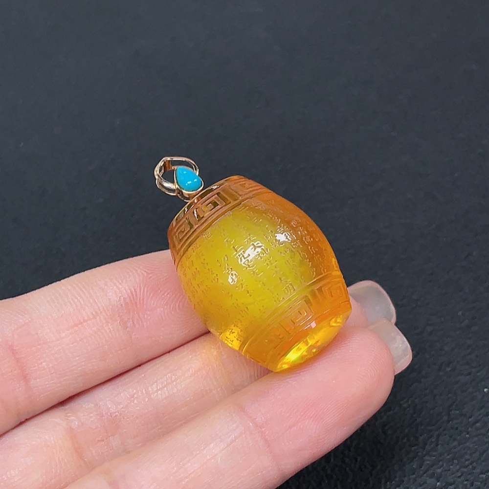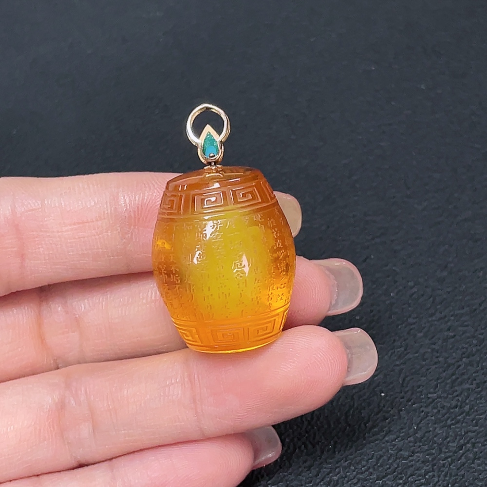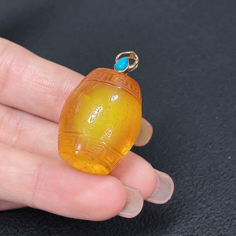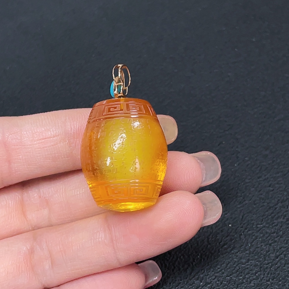 18k Amber Pendant with Non-Natural Accent Stones, Total Weight Approx. 7.32g