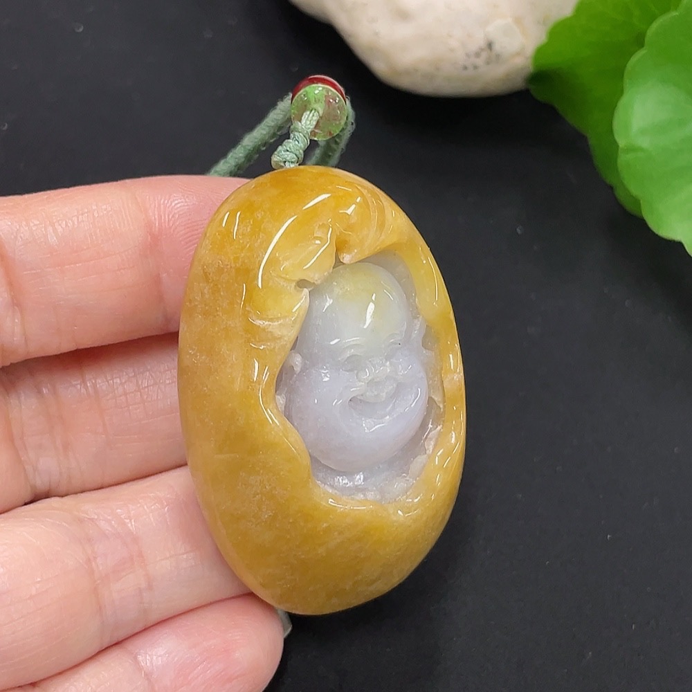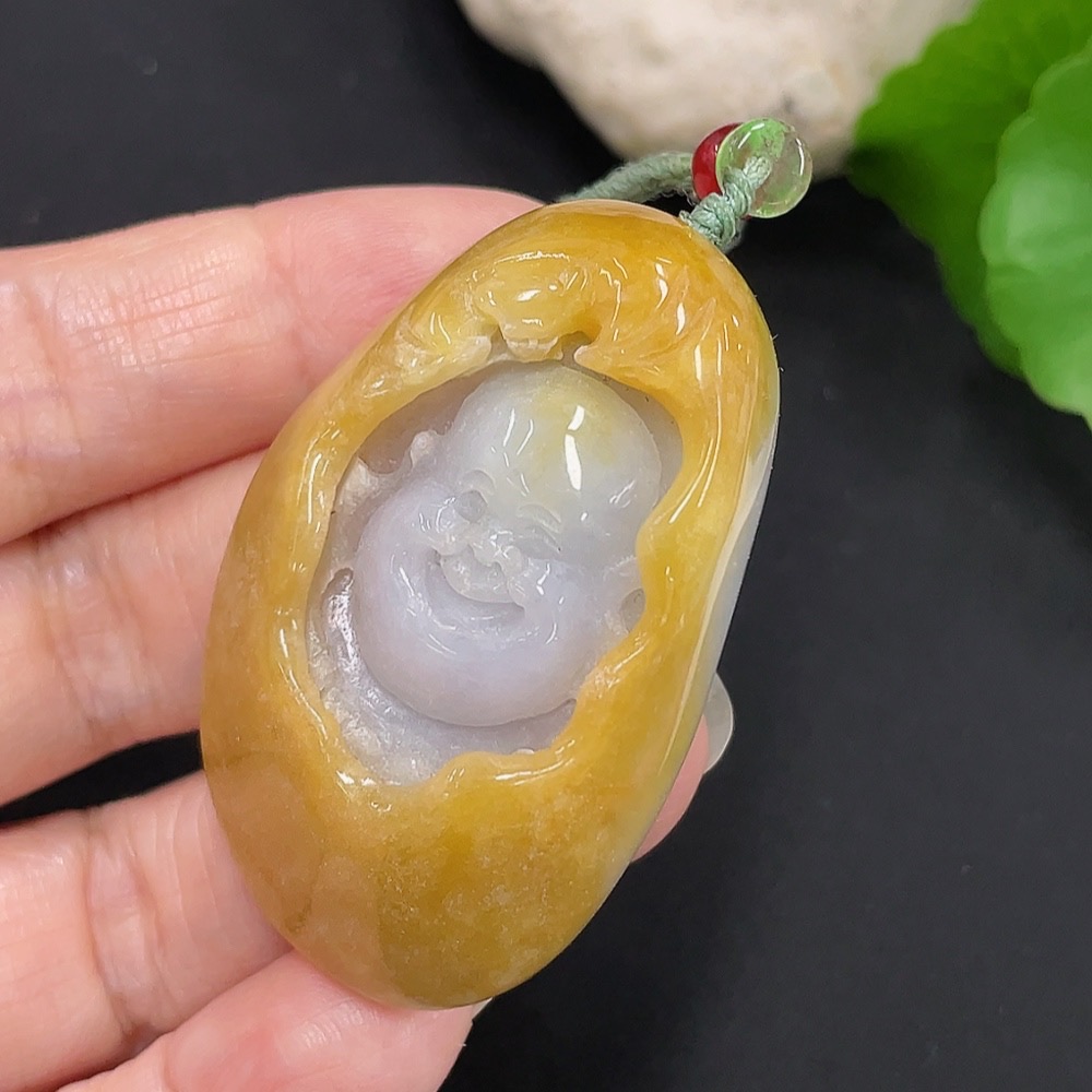 Jadeite Buddha Pendant with Non-A Grade Beads, Total Weight Approximately 42.22g