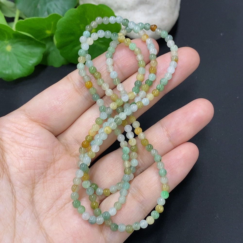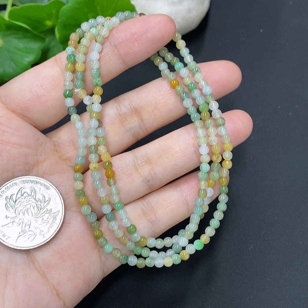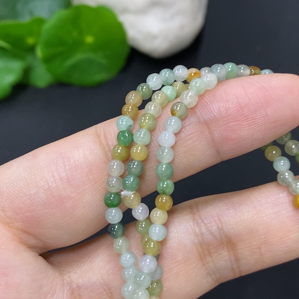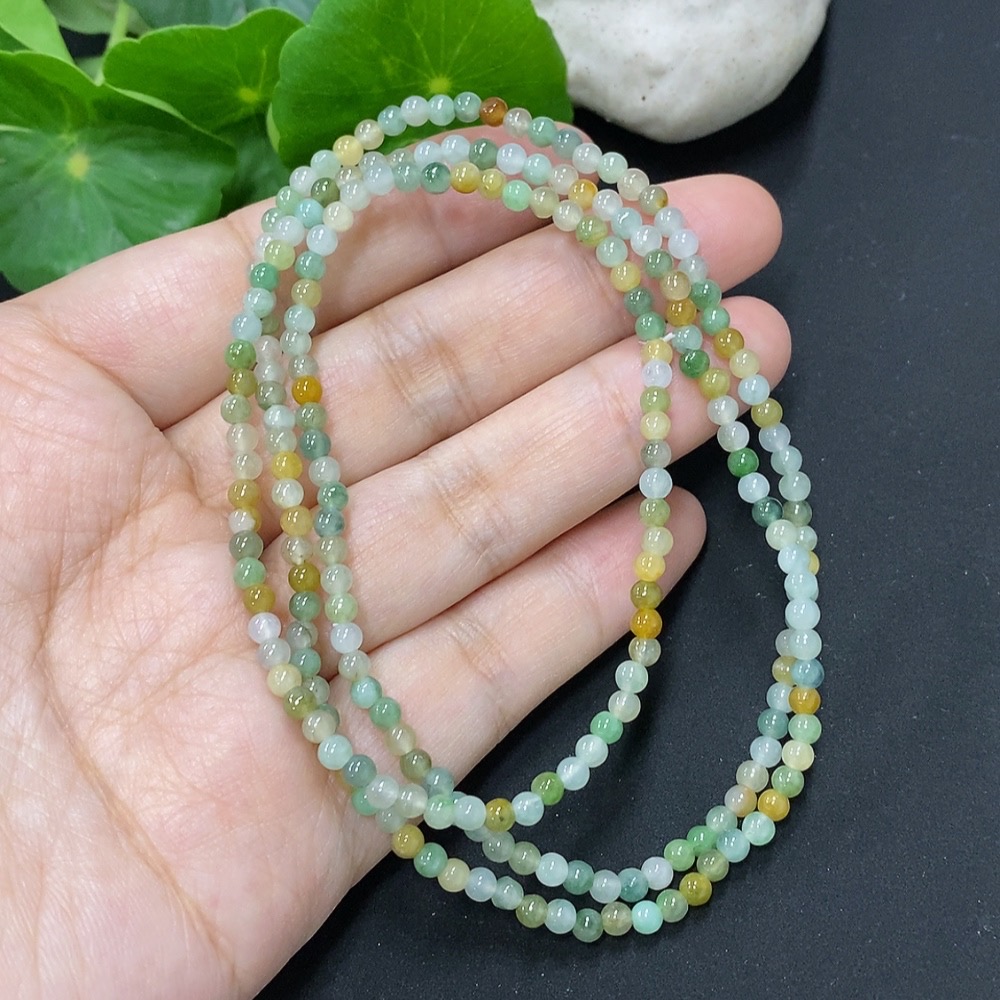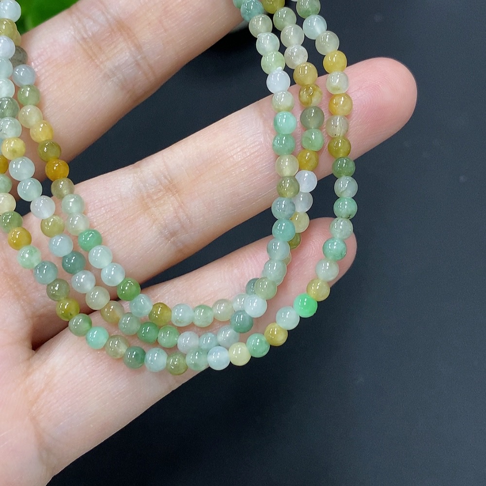 Jadeite Bead Necklace Approximately 3.2mm Bead Size Total Weight About 13g