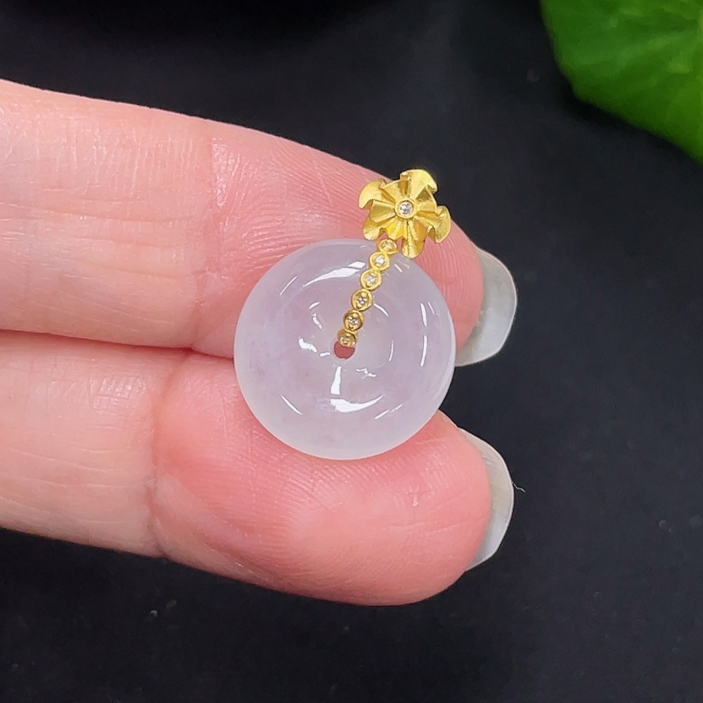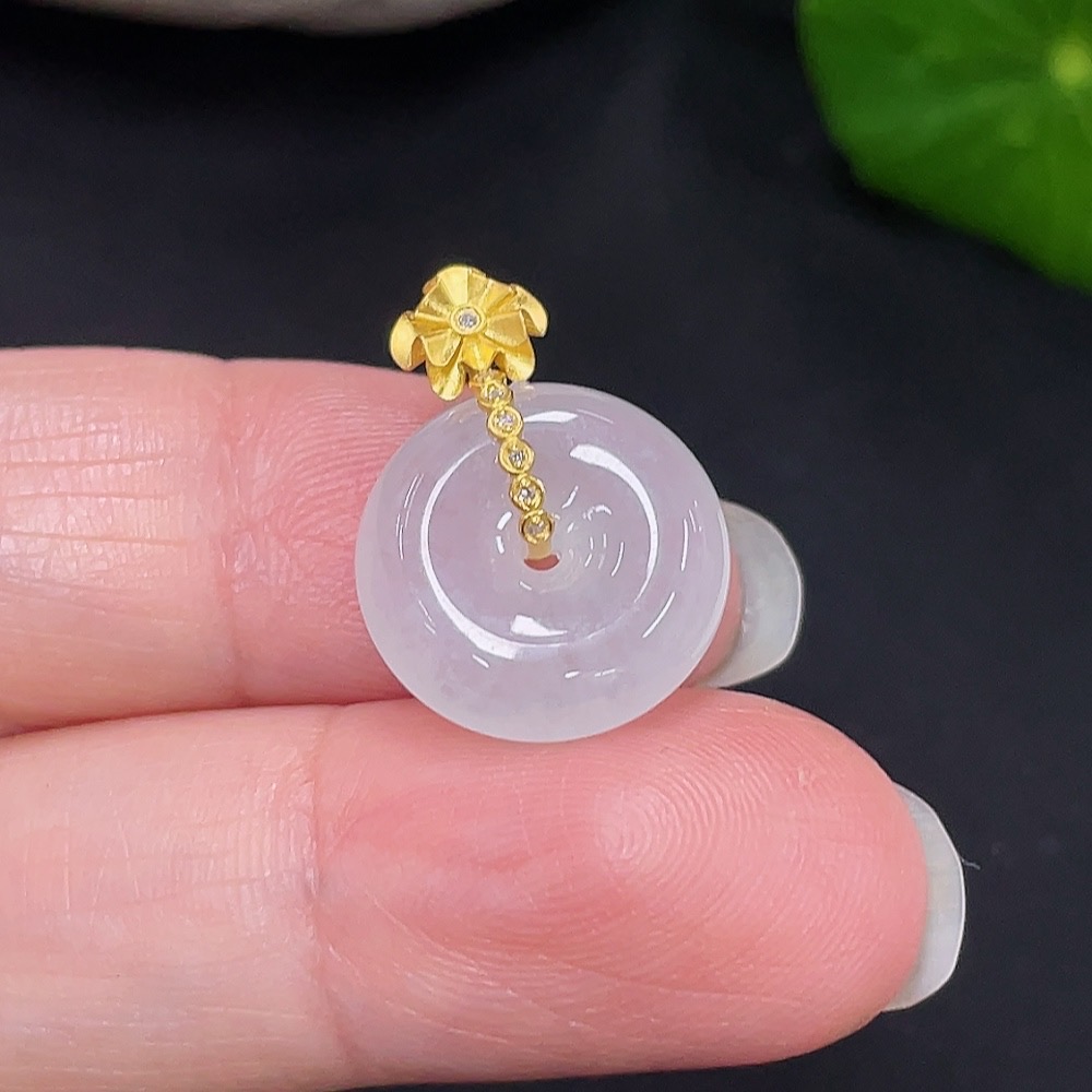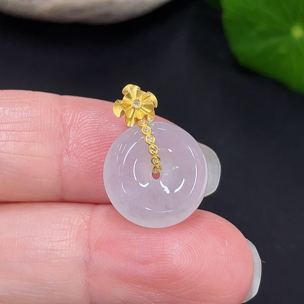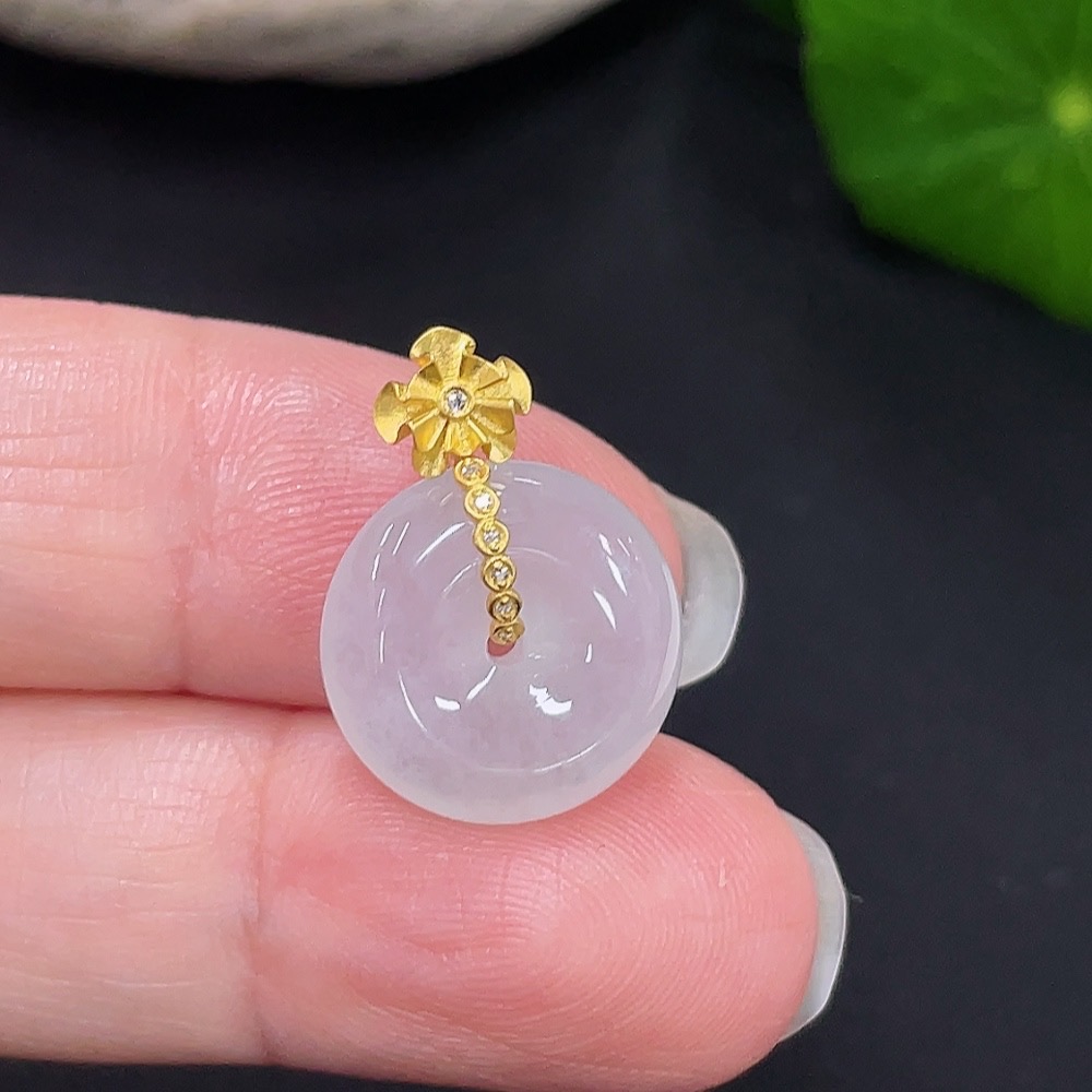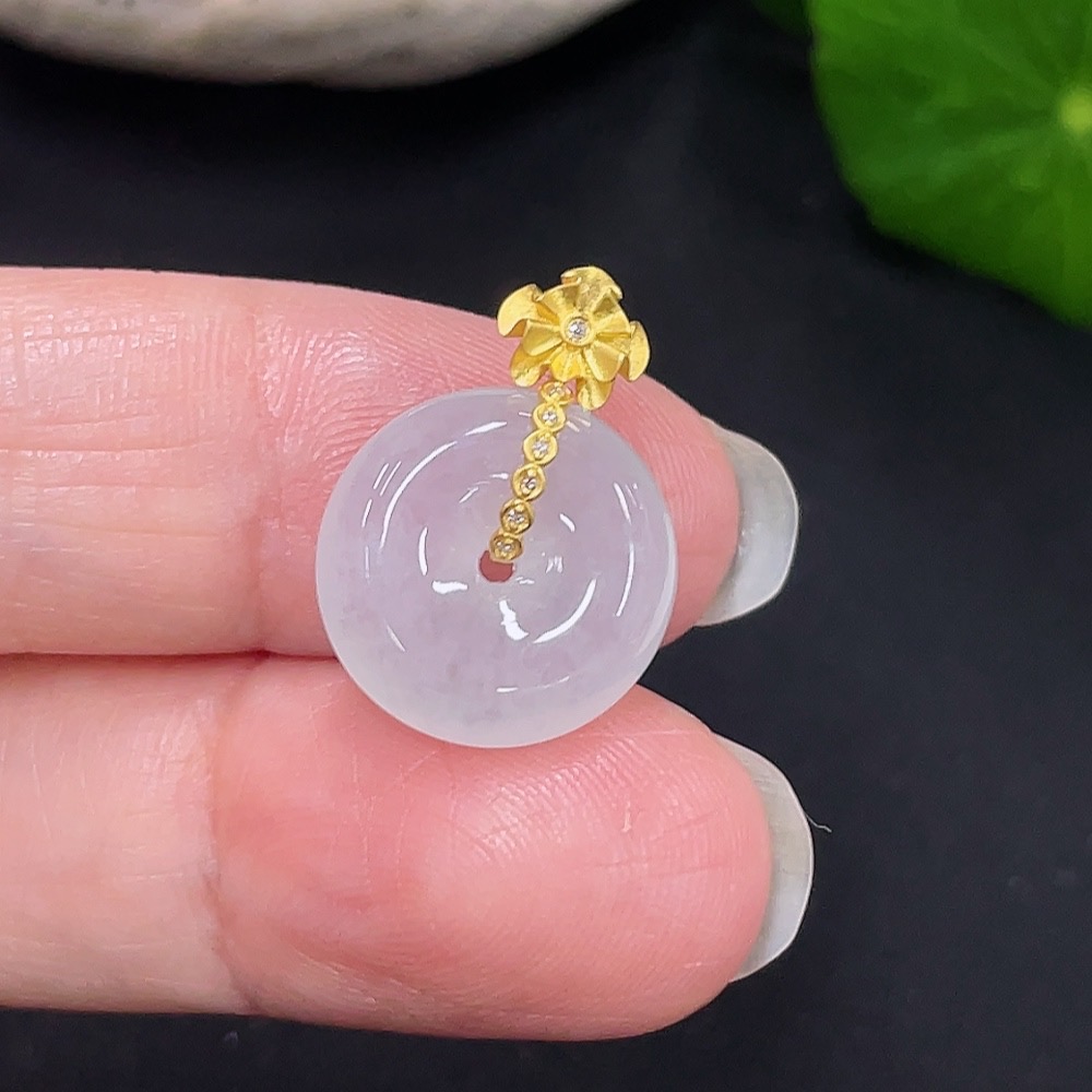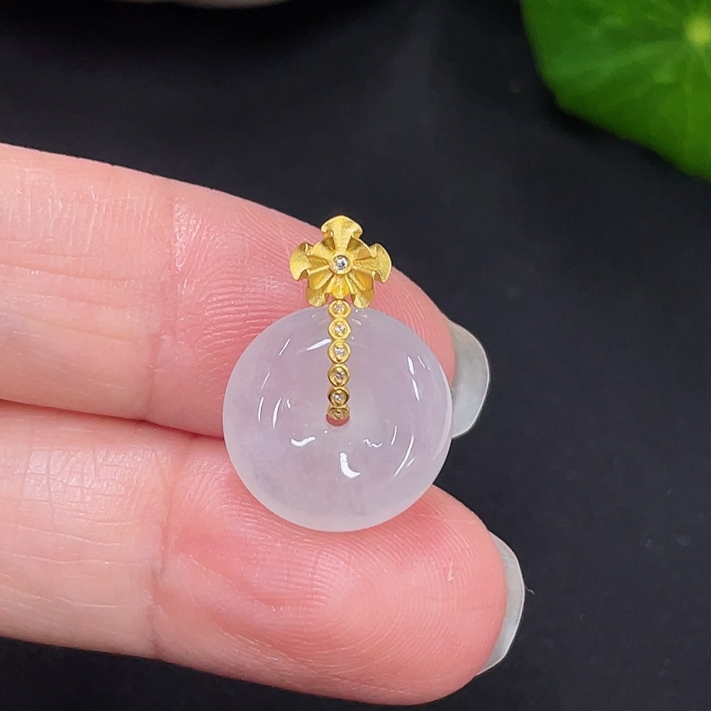 Jadeite Peace Knot Pendant with 18K Gold and Diamond Accents, Total Weight Approx. 2.32g