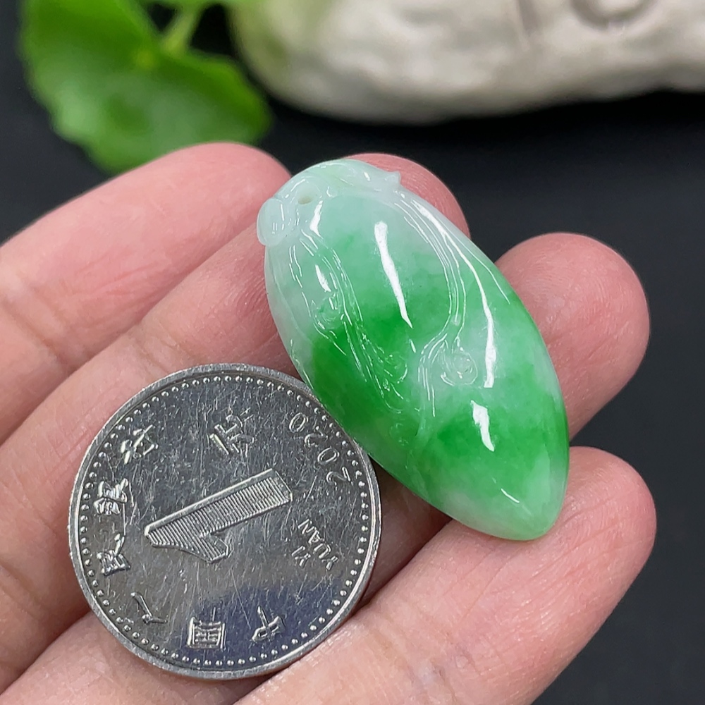 Jadeite Fu Gua Pendant, Total Weight Approx. 5.17g, Waxed