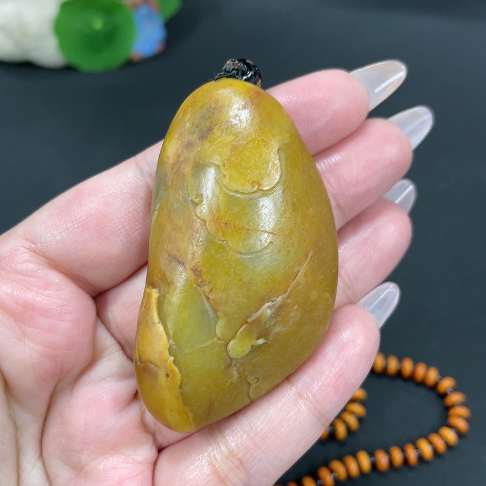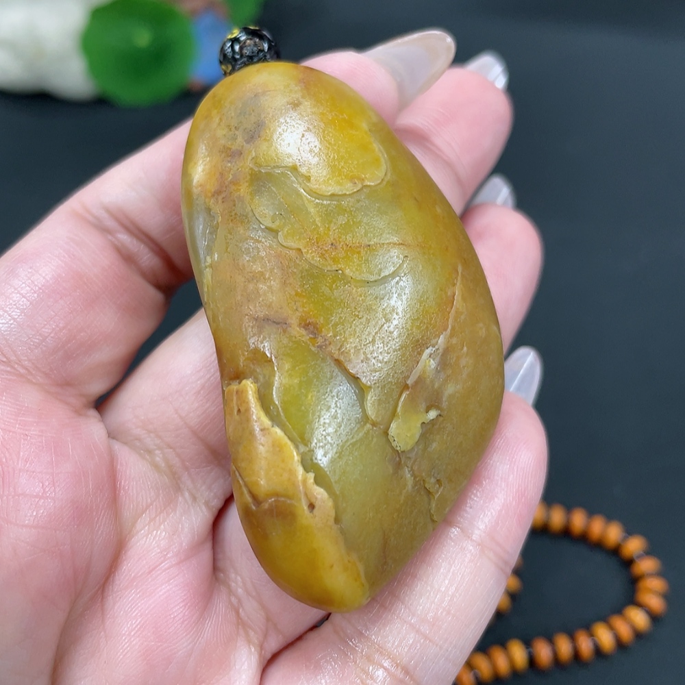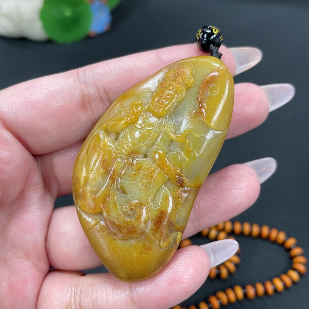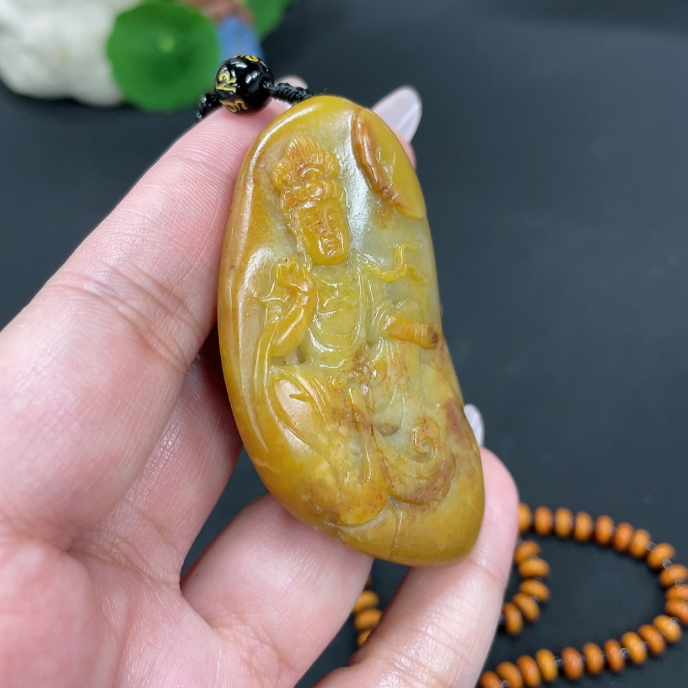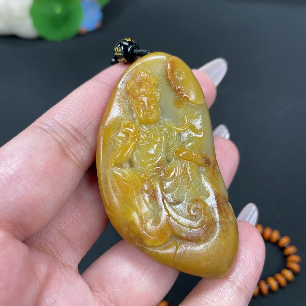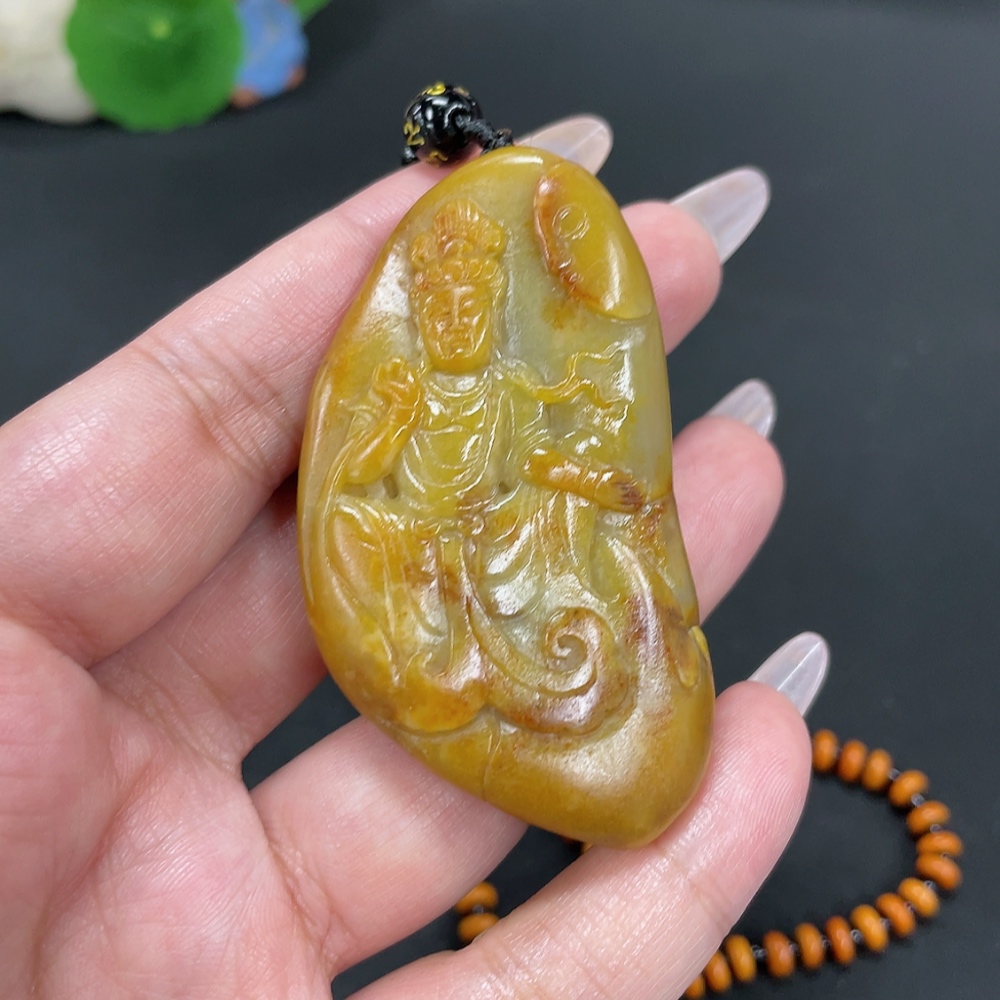Hetian Jade Pendant Avalokitesvara Gross Weight Approx. 65.7g (Including Chain, Non-Hetian Jade) Undetermined Skin Color Origin Containing Other Mineral Components