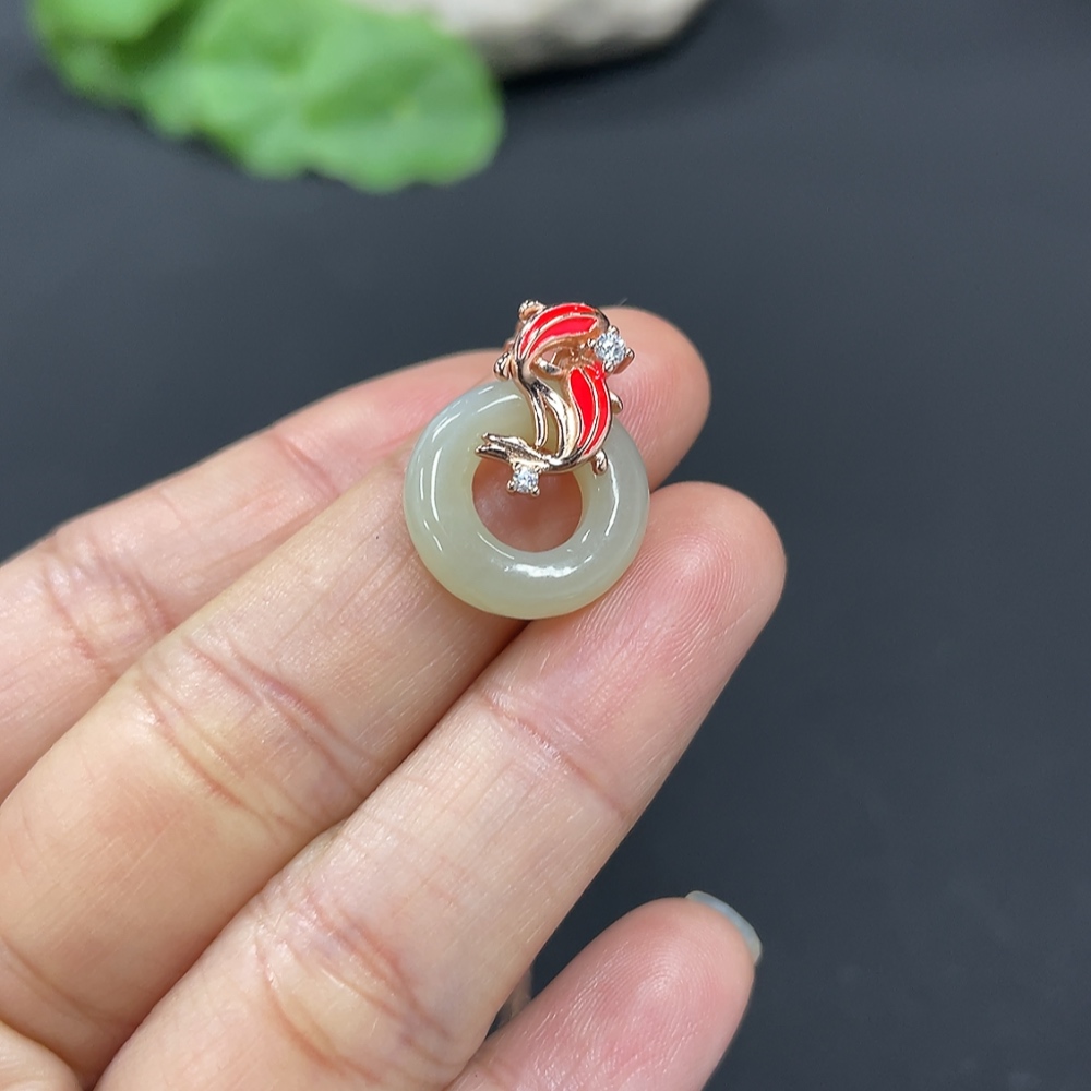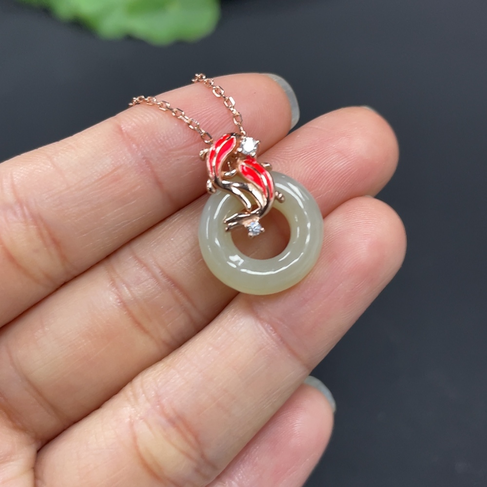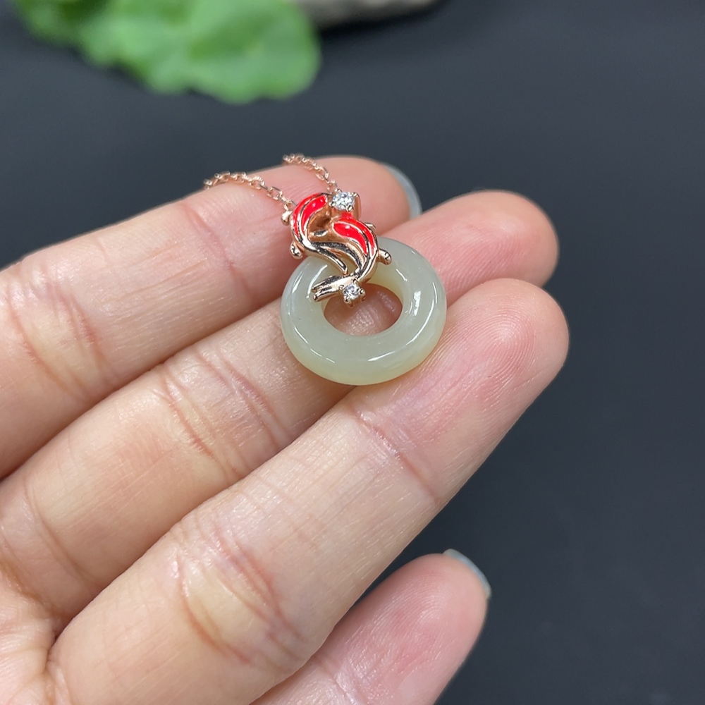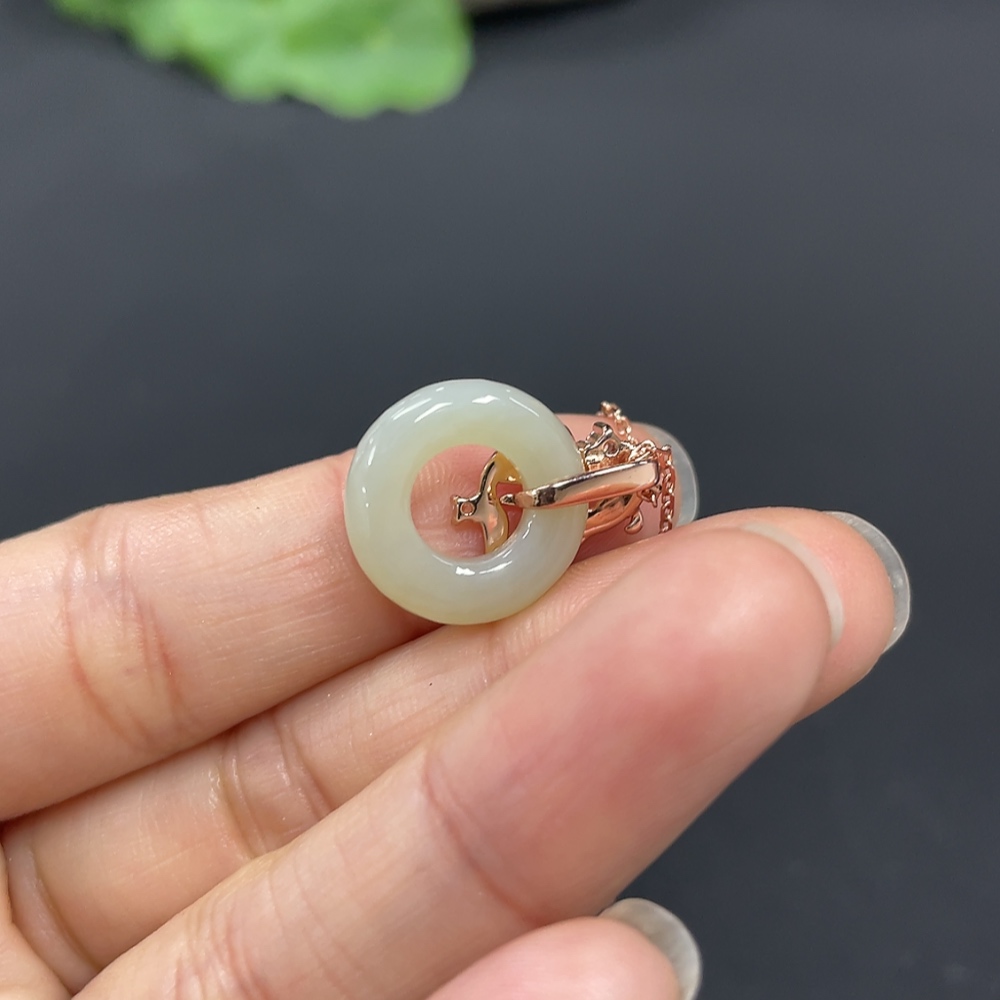 Hetian Jade Pendant Donut Non-Gold-Inlaid Total Weight Approx. (Including Chain) 3.6g