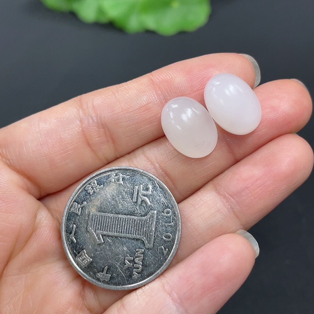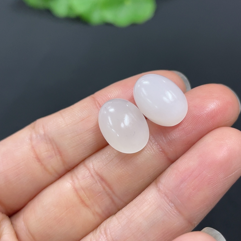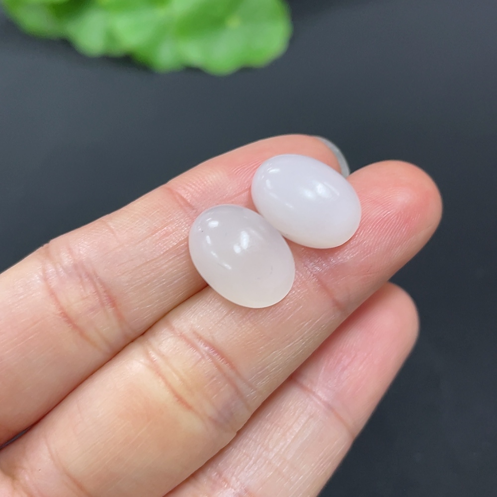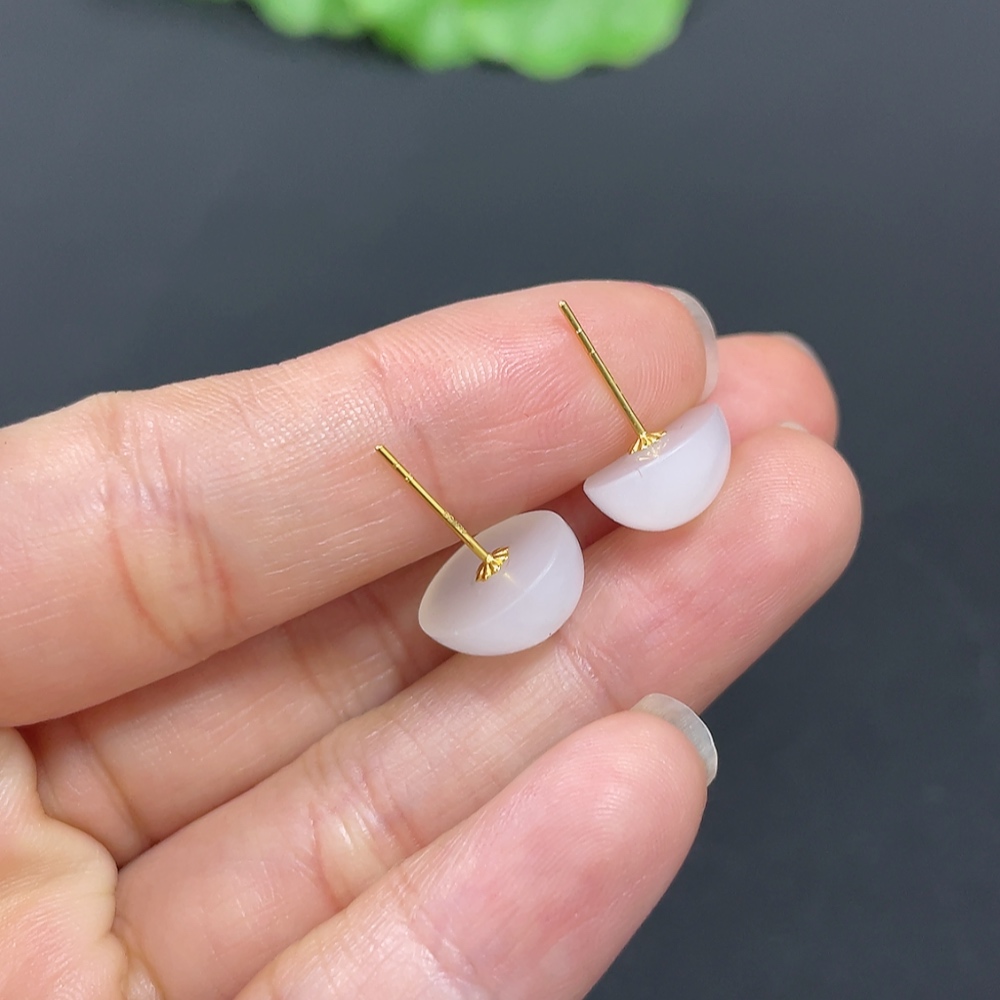 Hetian Jade Cabochon Earrings with 18K Gold, Total Weight Approx. 2.3g