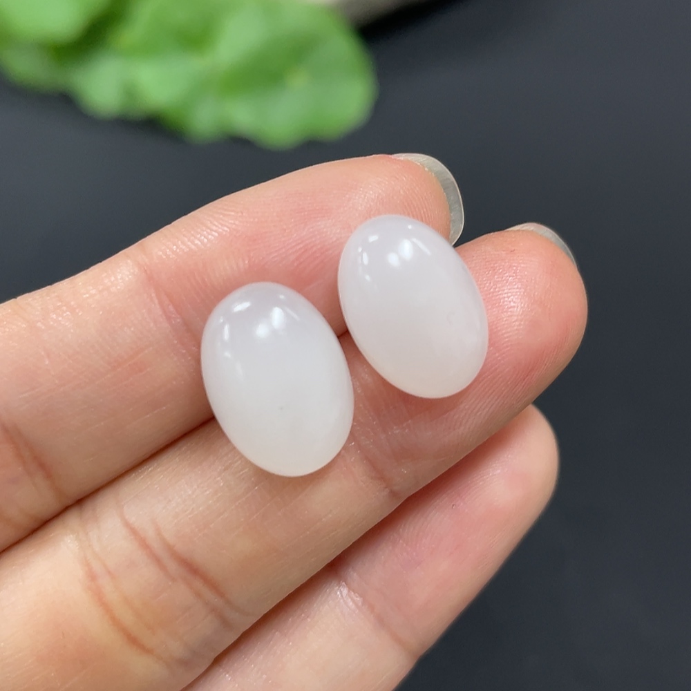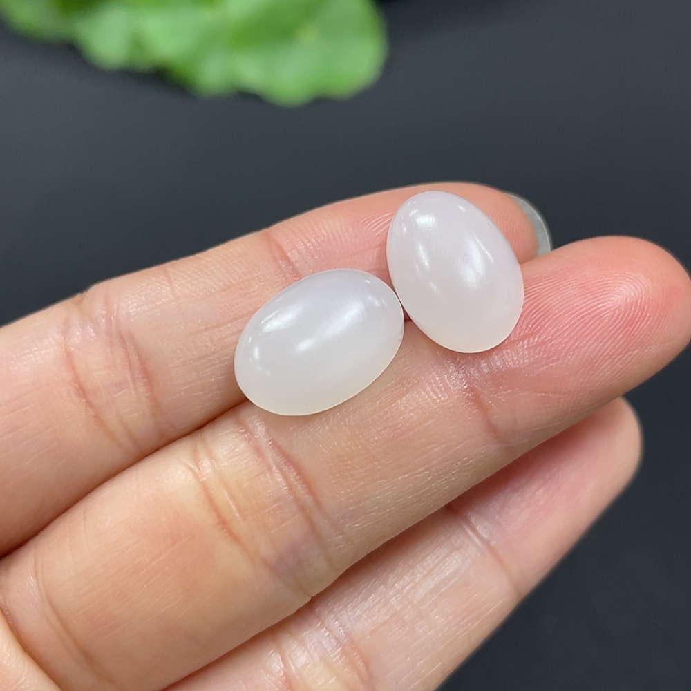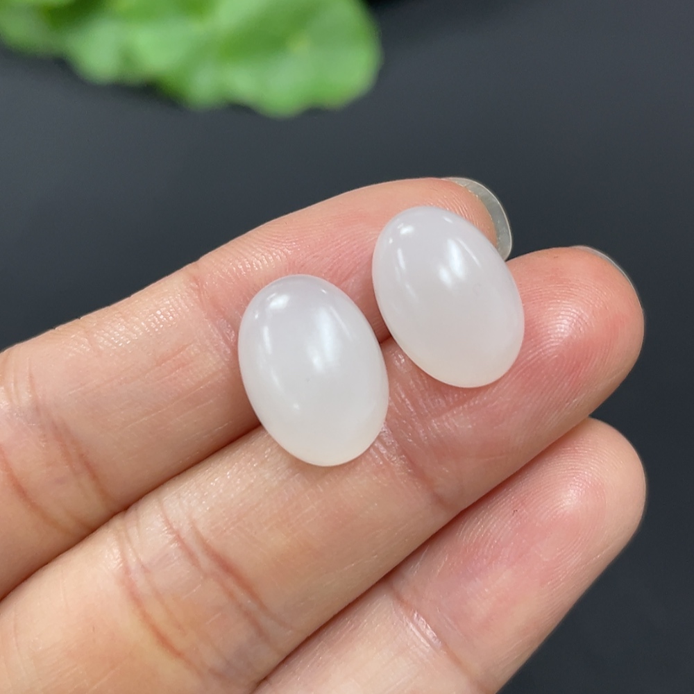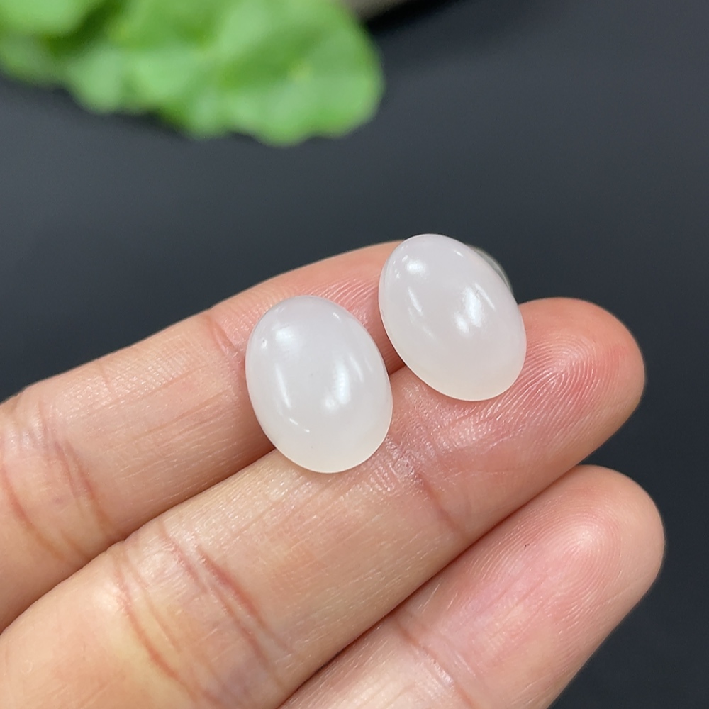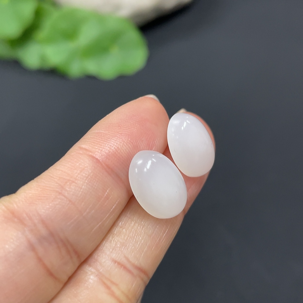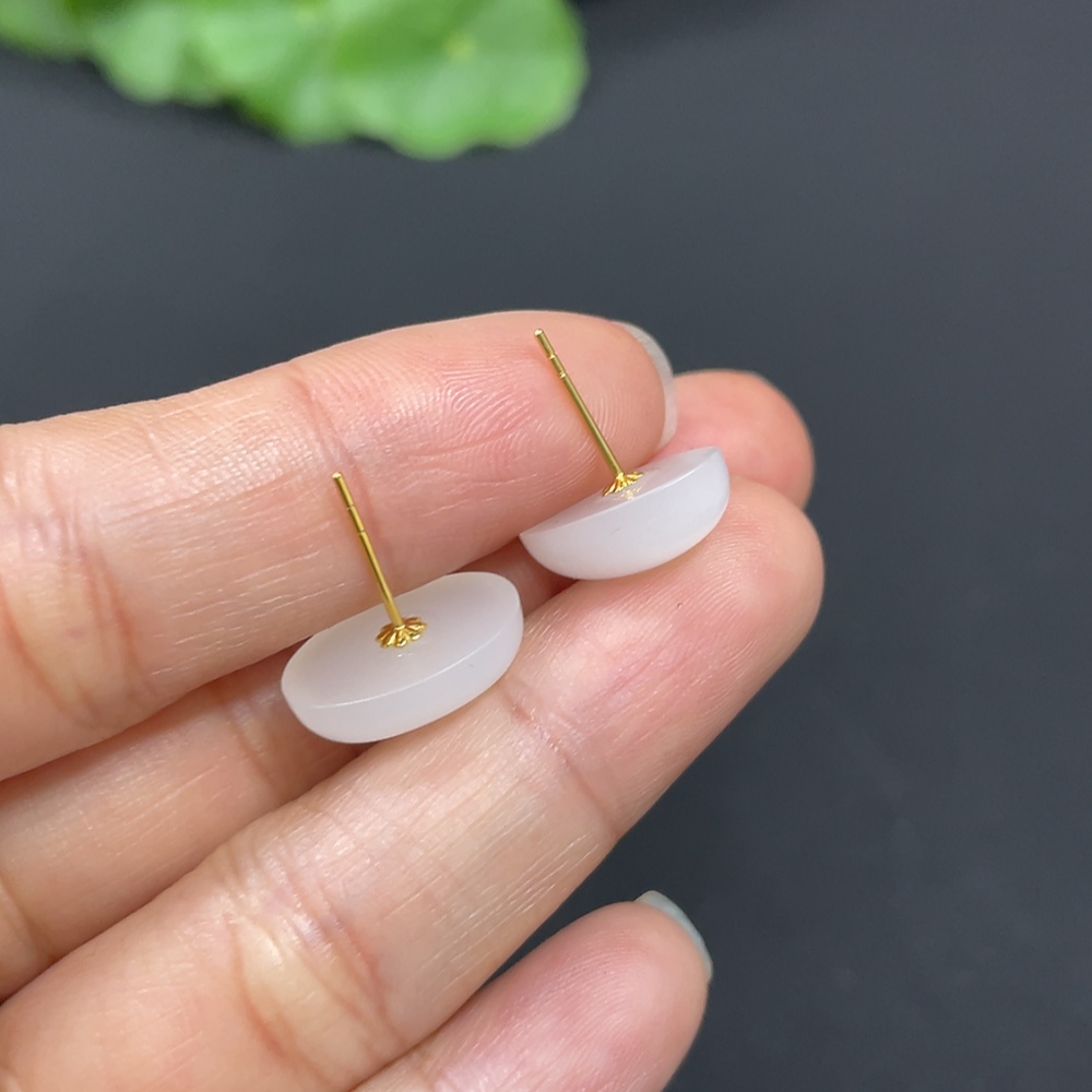 Hetian Jade Cabochon Earrings with 18K Gold, Total Weight Approx. 2.3g