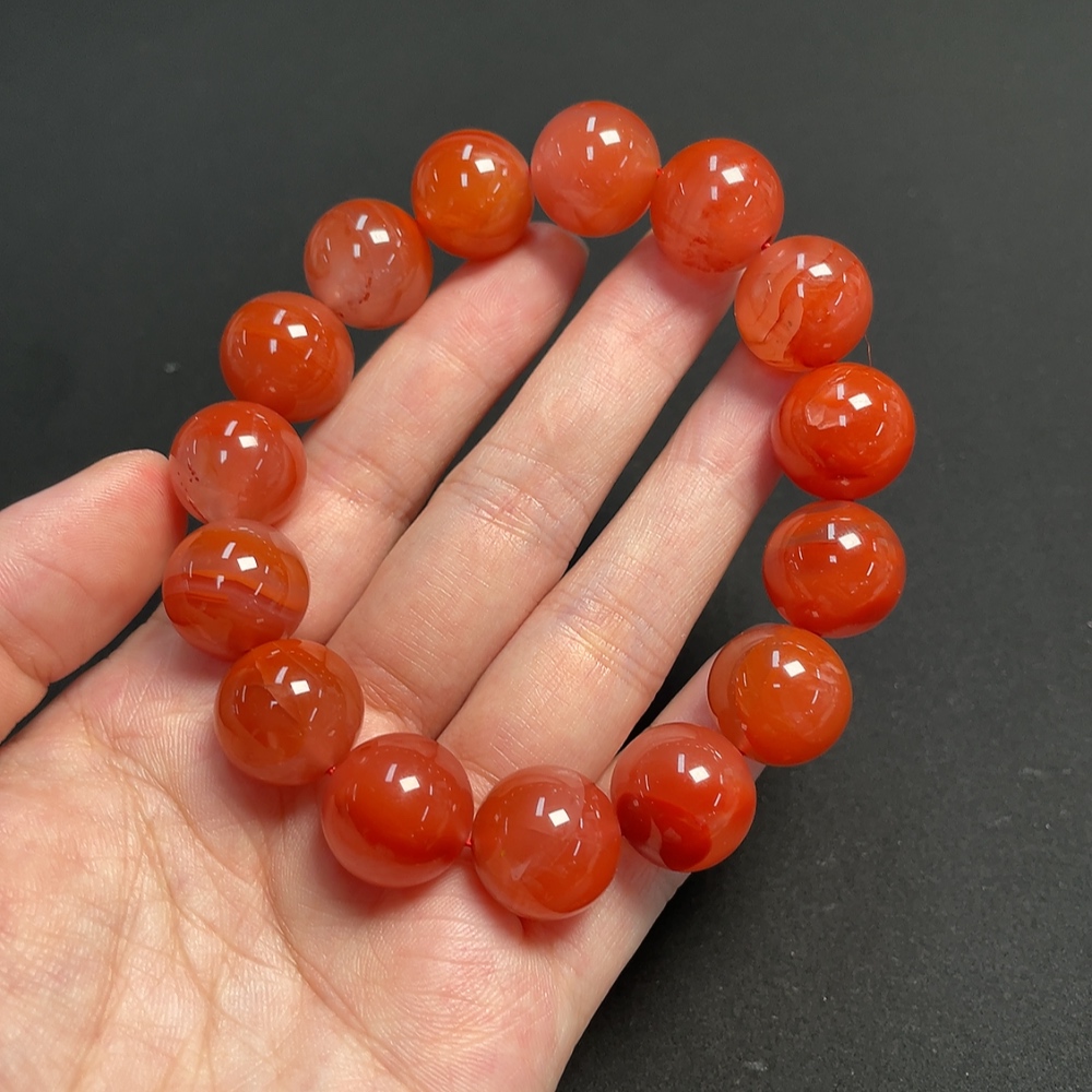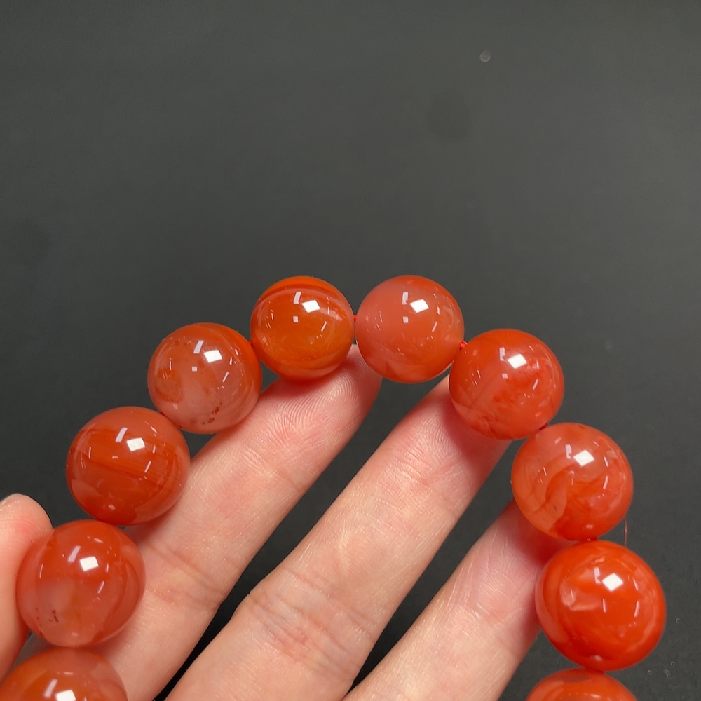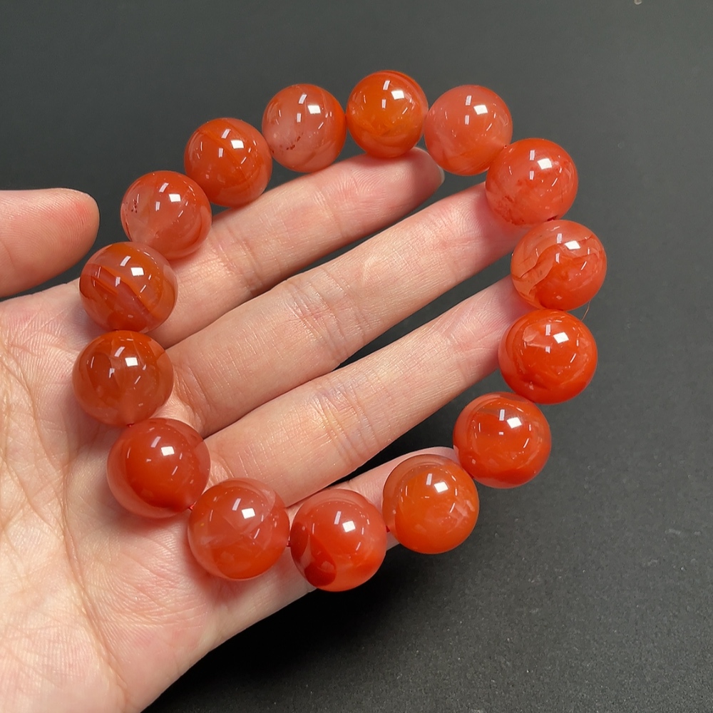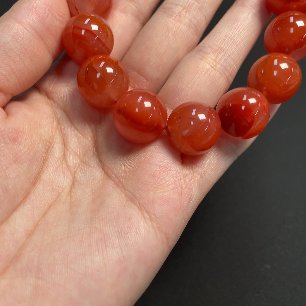 Red Agate Bracelet with Visible Organic Matter, Total Weight Approximately 74.6g, Bead Size About 15.2mm