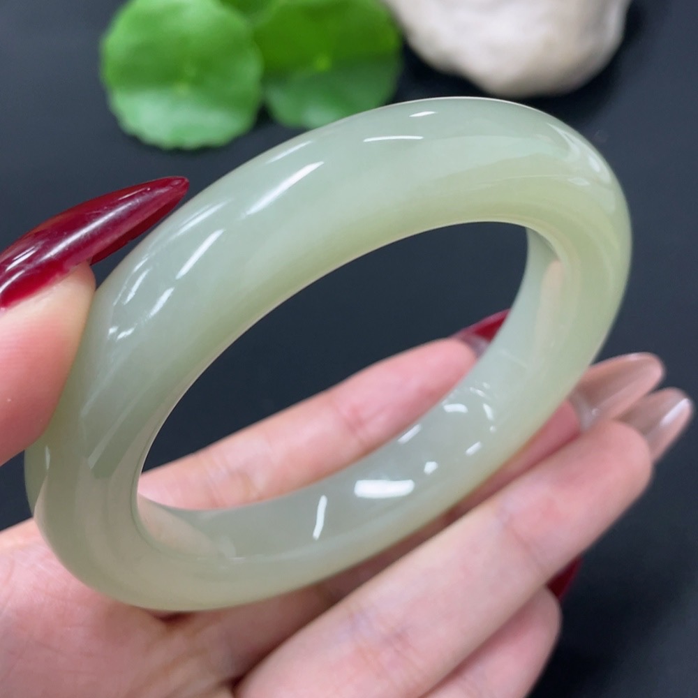Hetian Jade Round Bracelet Size 58 Total Weight About 76.9g