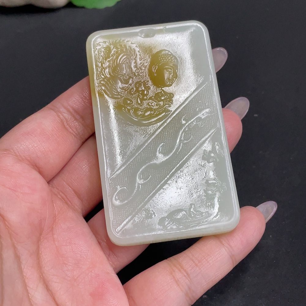 Hetian Jade Pendant Buddha Amulet Total Weight Approx. 67.3g