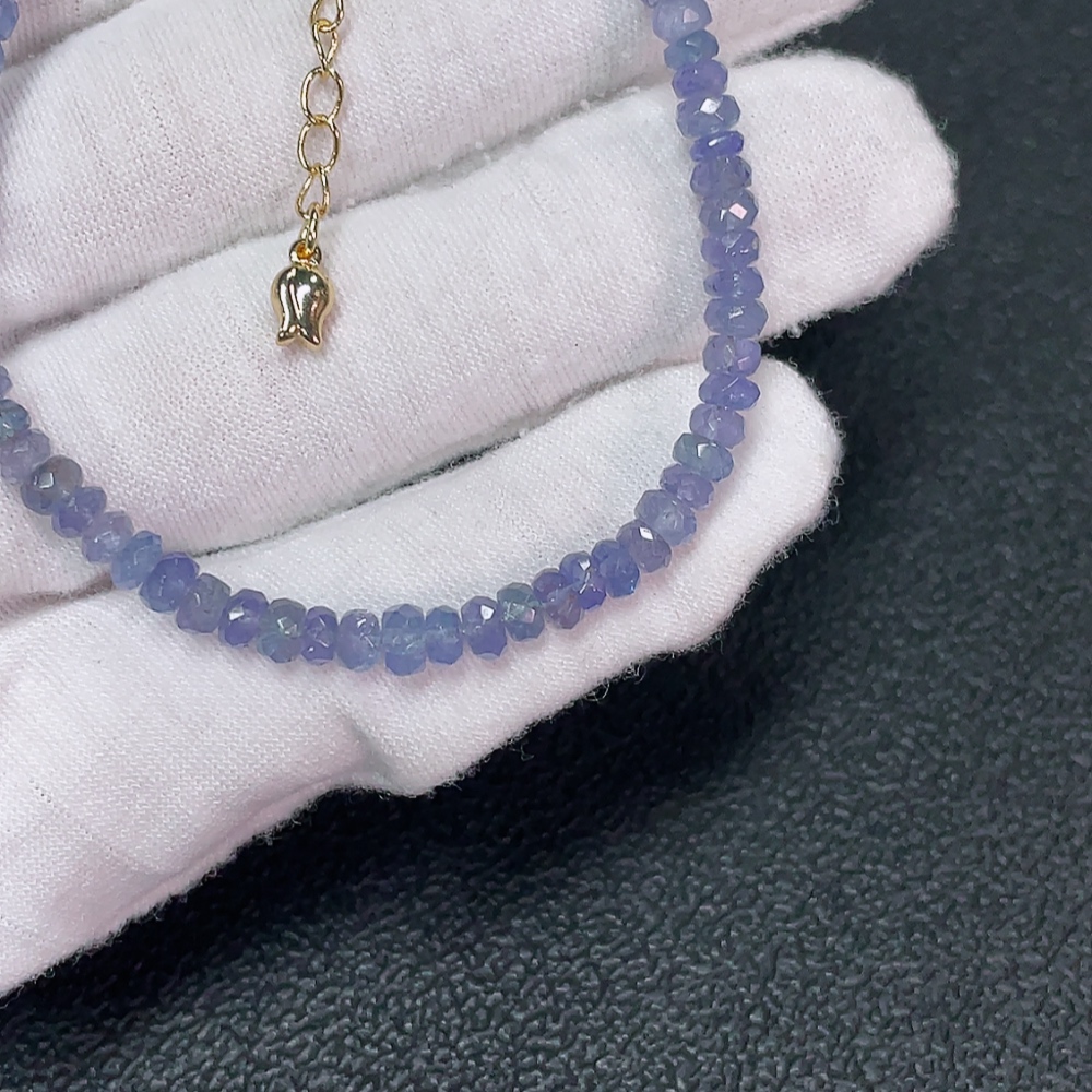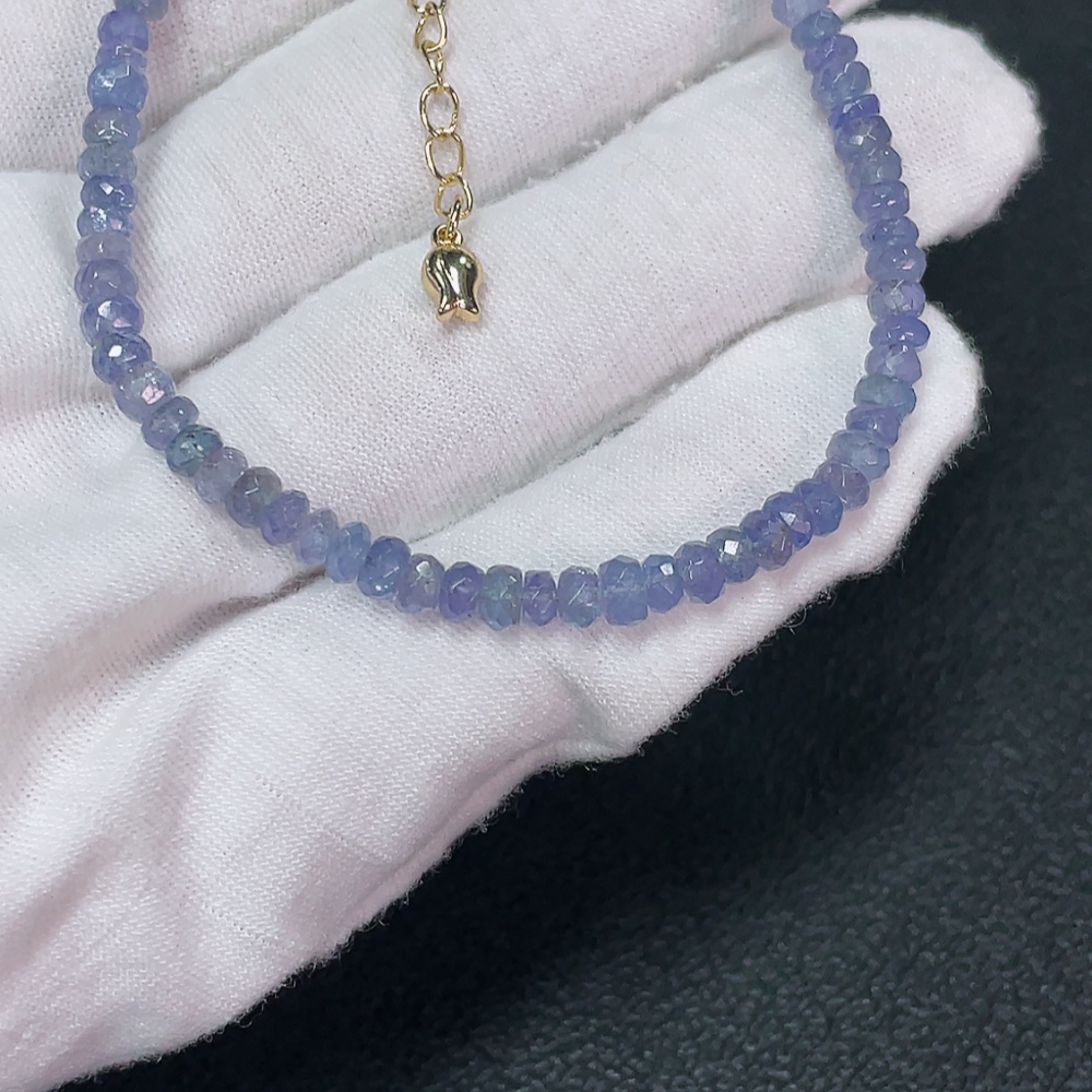 Tanzanite Bracelet with Visible Organic Matter, Non-Gold, Total Weight Approx. 6.79g, Size About 4mm