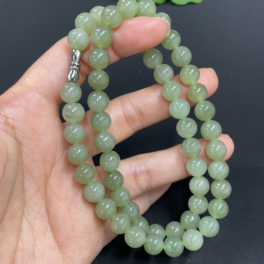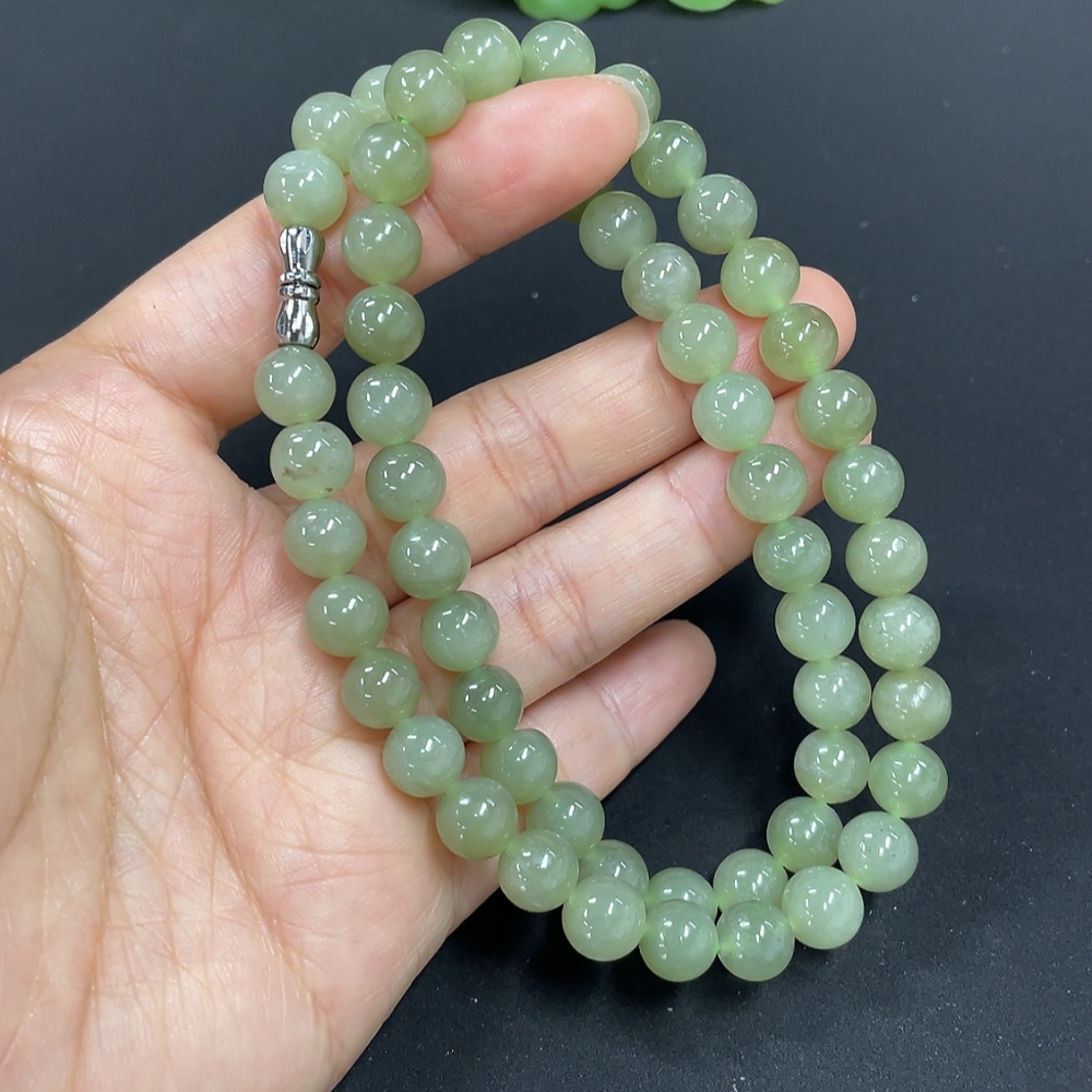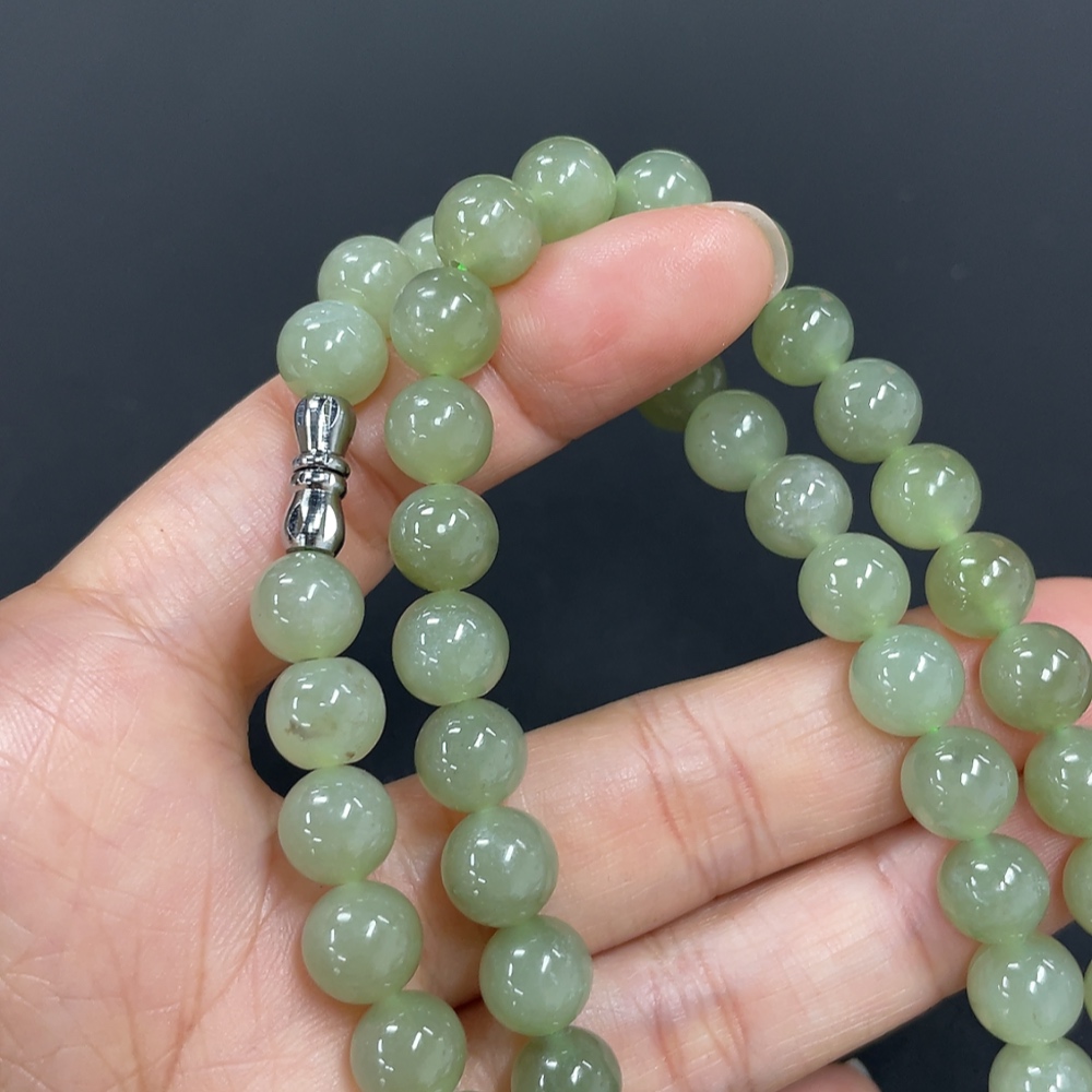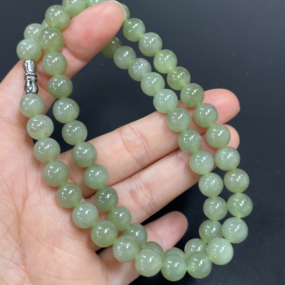 Hetian Jade Bead Necklace, Approx. 7.5mm, Total Weight Approx. 43.6g